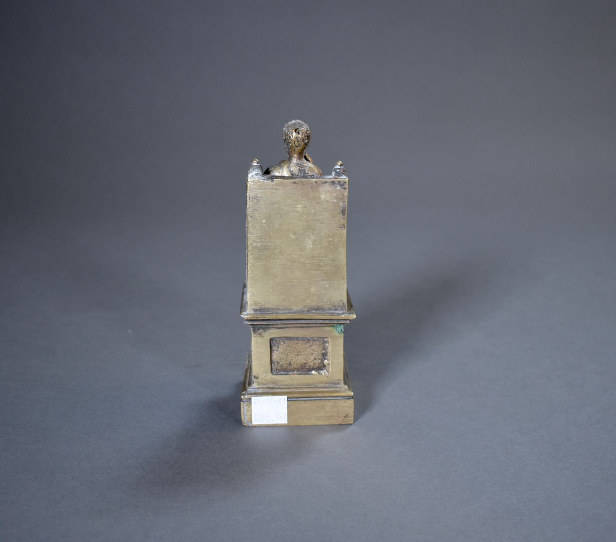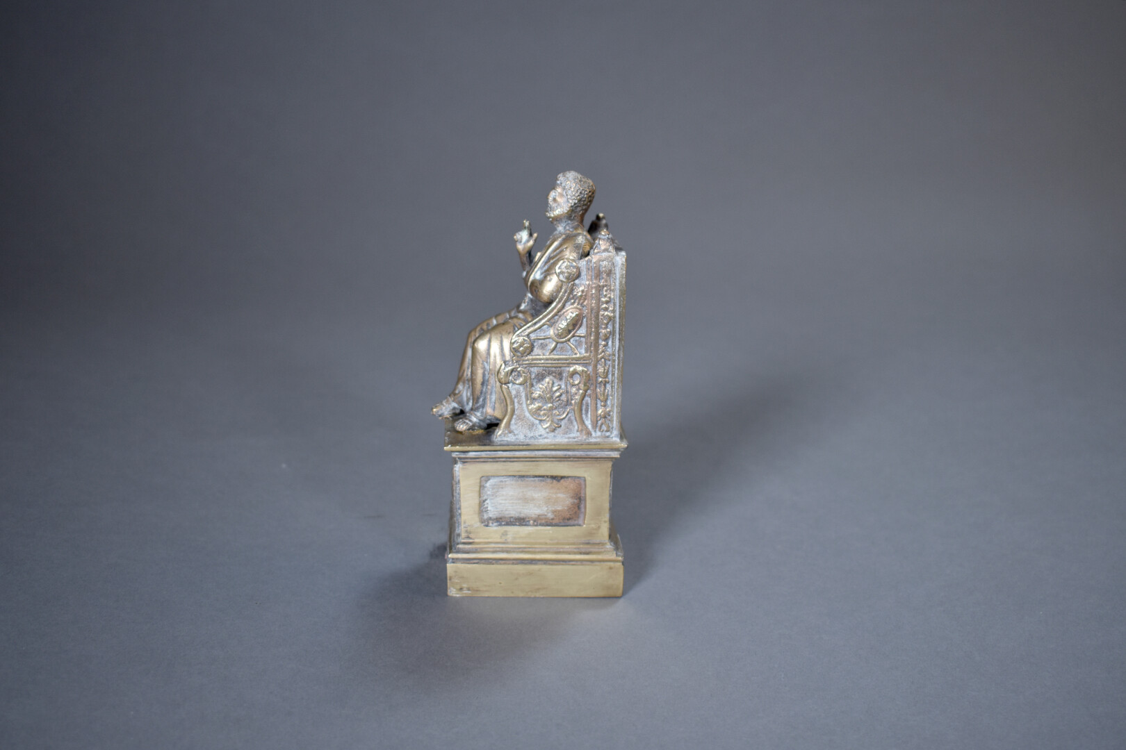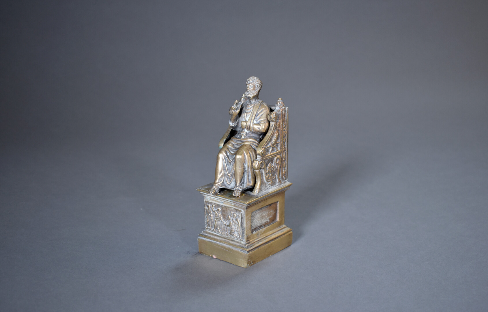 Sujet en bronze représentant Saint Pierre assis sur un trône, une clé dans une main. Haut. : 17,5 cm.