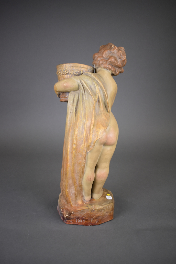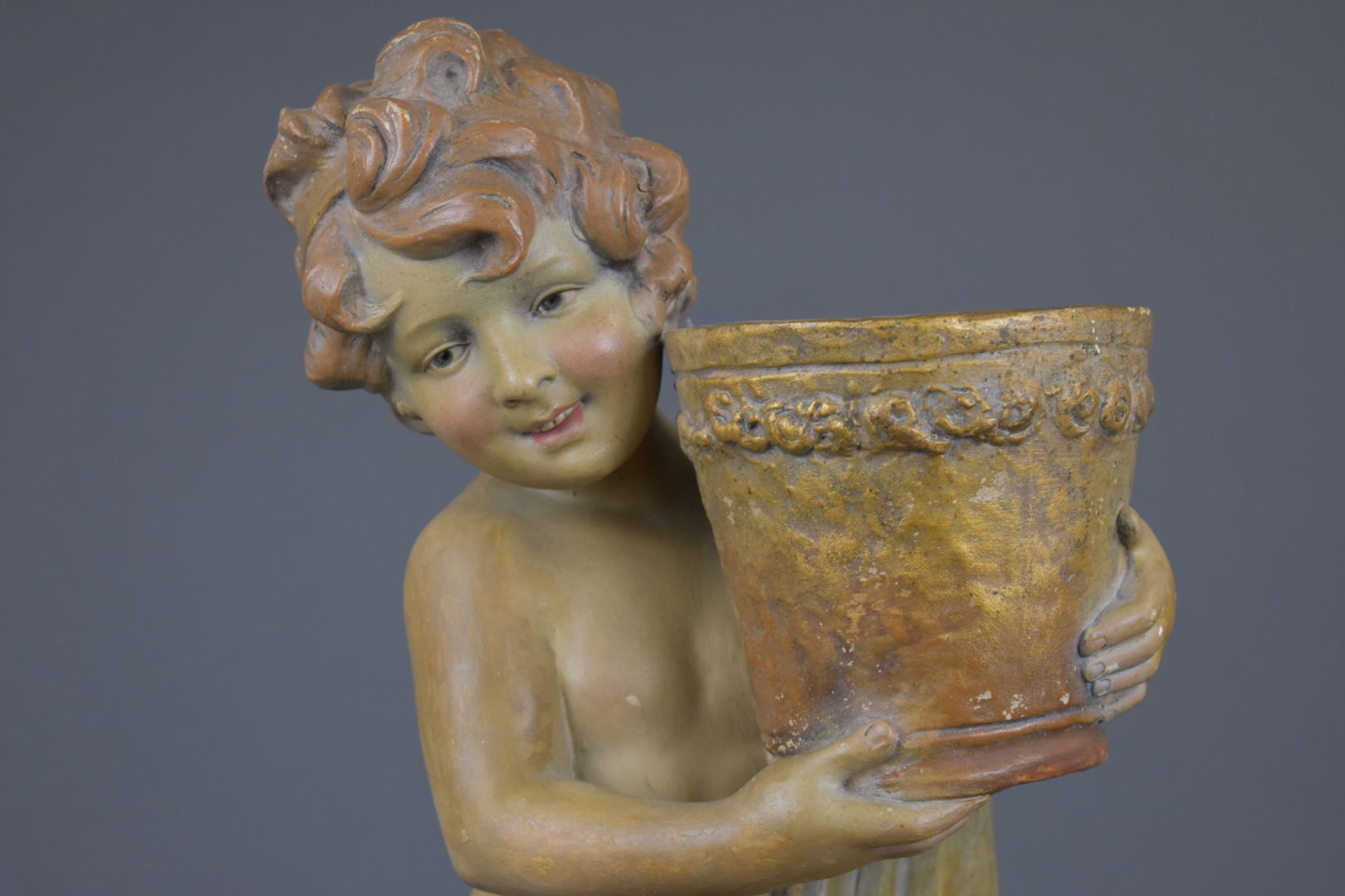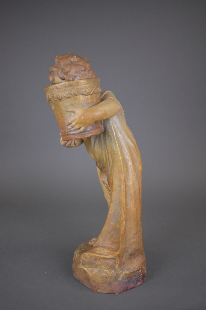 Sujet en plâtre peint représentant un puto porteur d’eau (frottements). Début du XXe siècle. Haut. : 48.5cm.
