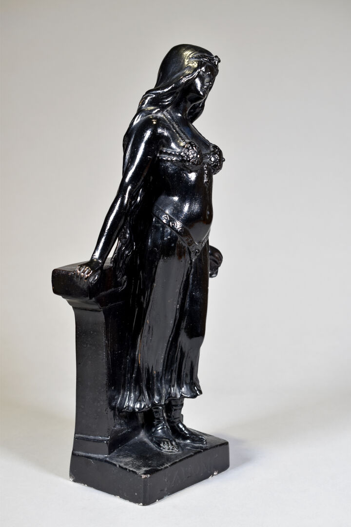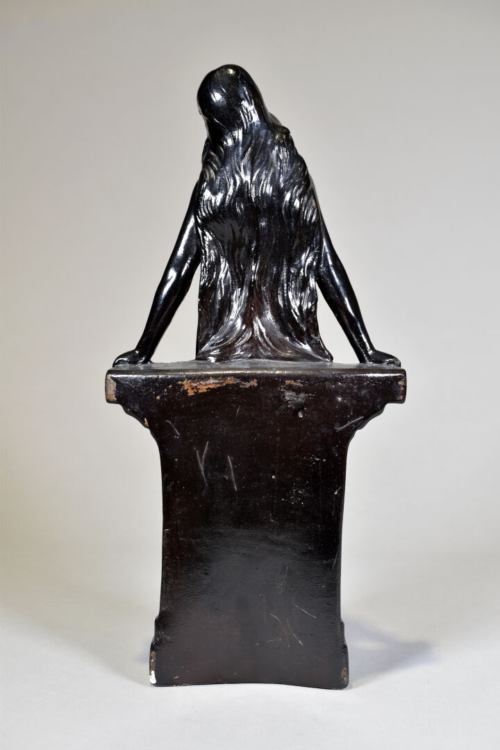 Sujet en plâtre repeint noir représentant une femme vêtue à l’orientale. Titrée « Salomé ». Frottements et usures. Relaqué. Vers 1900. Haut. : 52 cm.