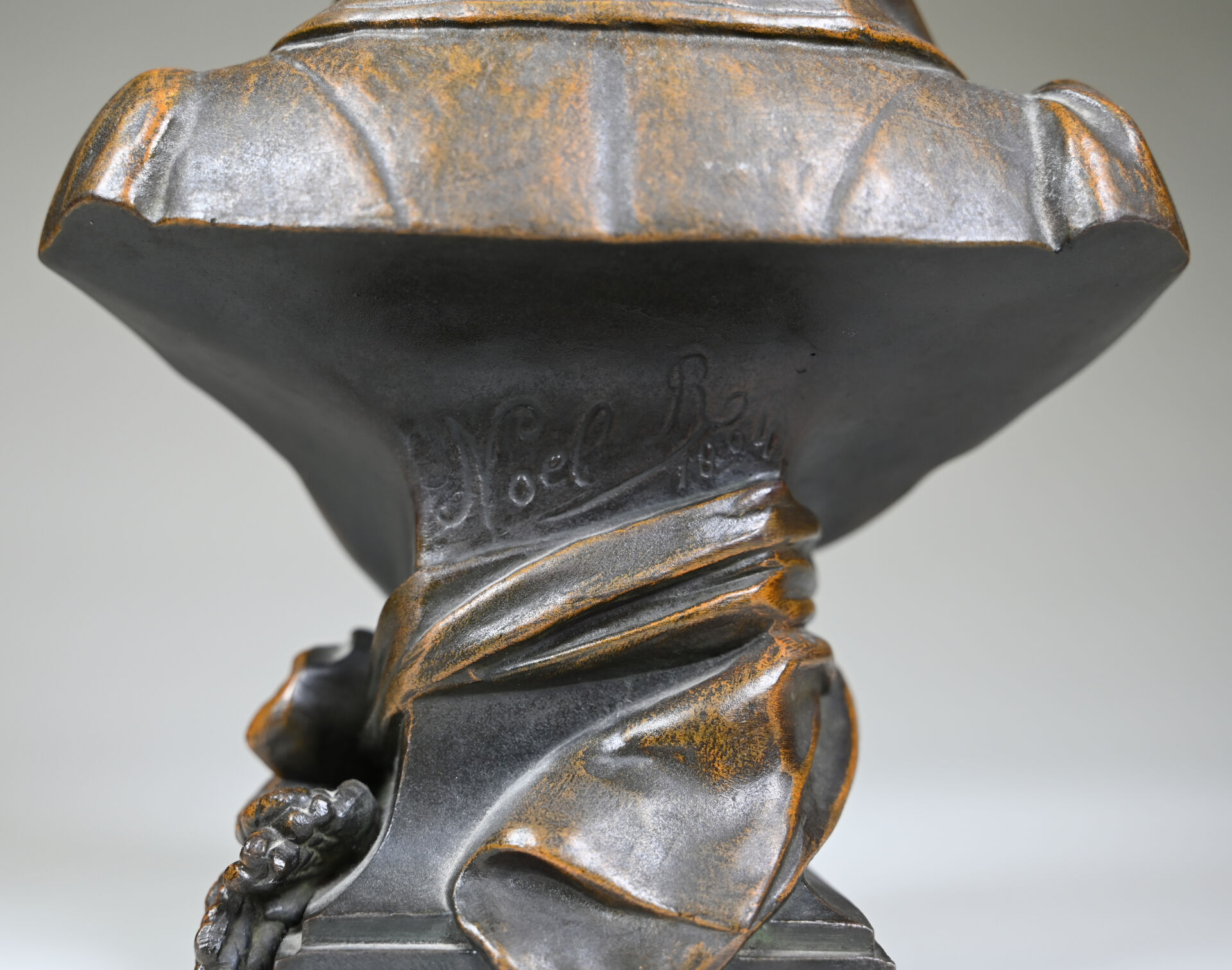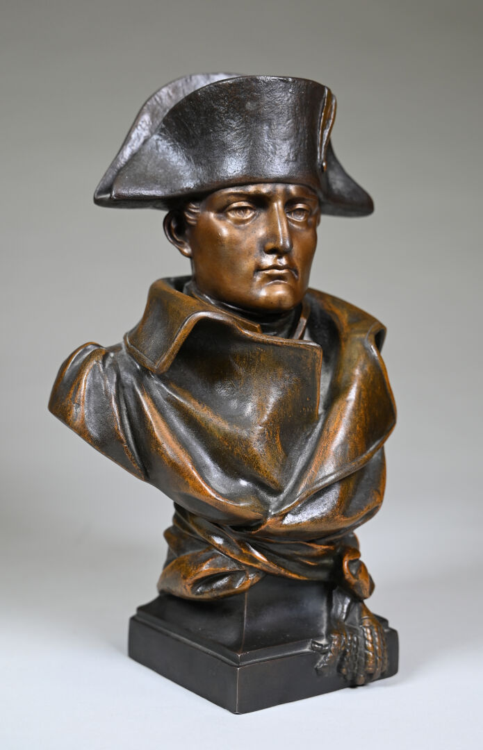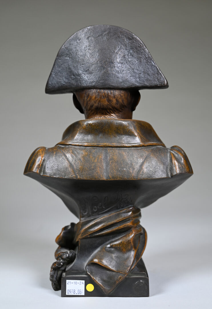 Sujet en régule à patine médaille représentant Napoléon 1er en buste au bicorne. Signé NOEL R,Daté 1894. Haut. : 30 cm.