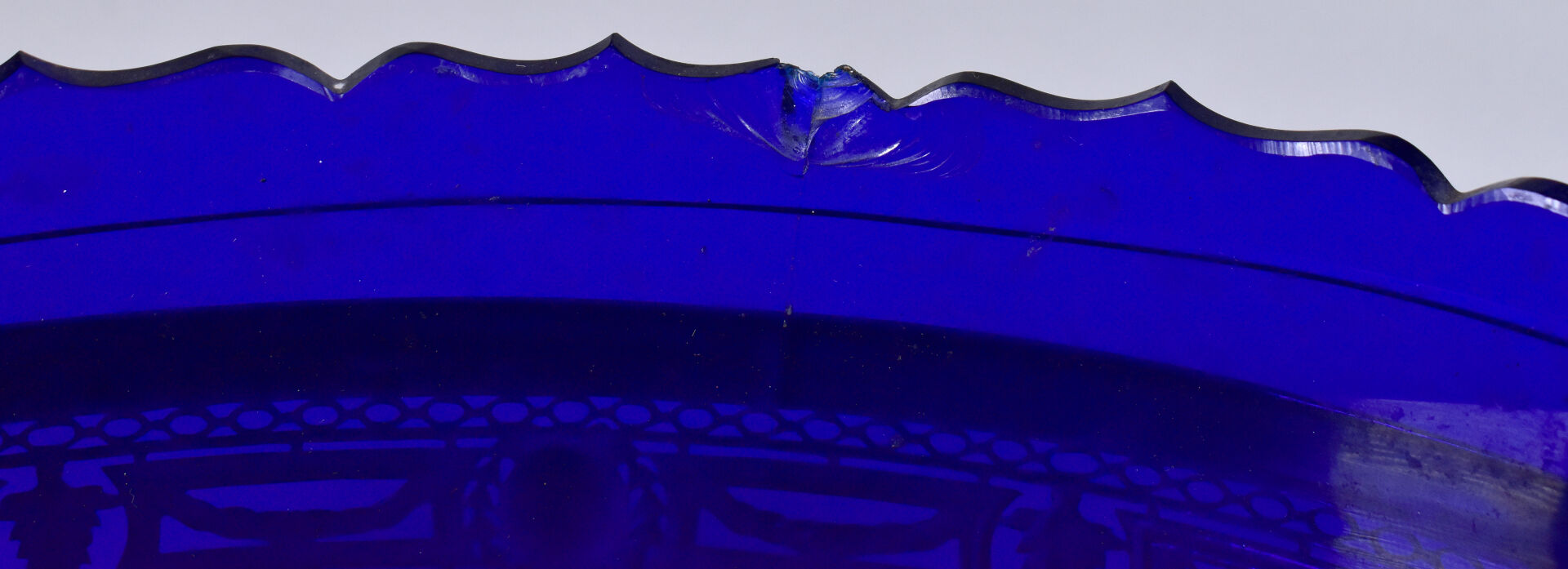 Surtout de table en argent 800/1000e à fond de verre bleu. Poids net : 309g. On joint des pots de service en métal argenté (usures).