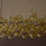 Suspension à bulles de verre légèrement ambré. Travail contemporain. Long. : 135 cm – Haut. : 45 cm (hors câbles).