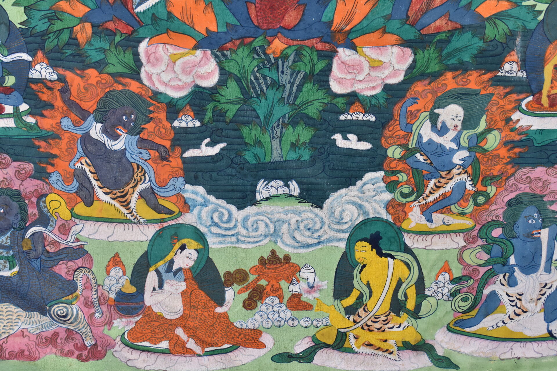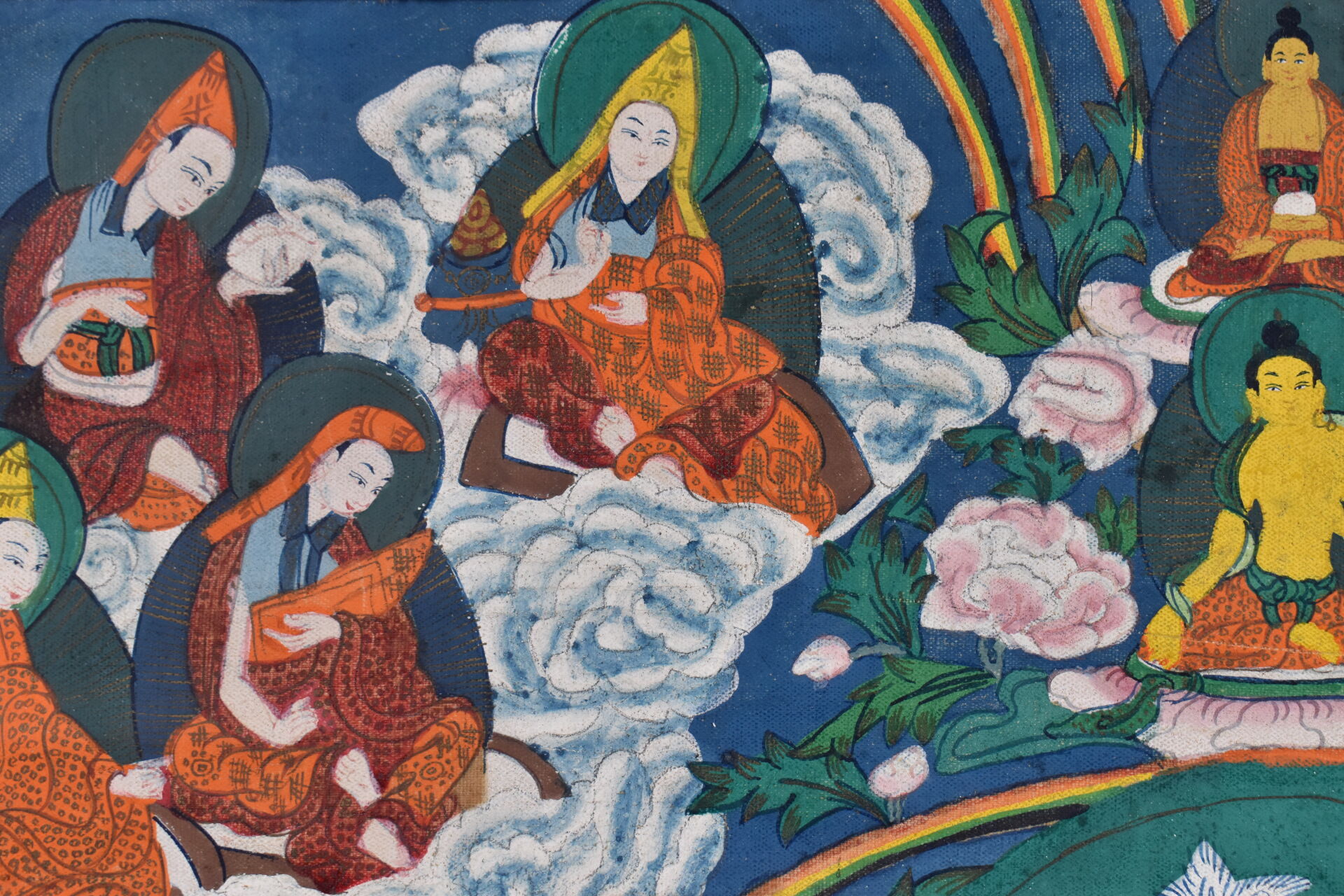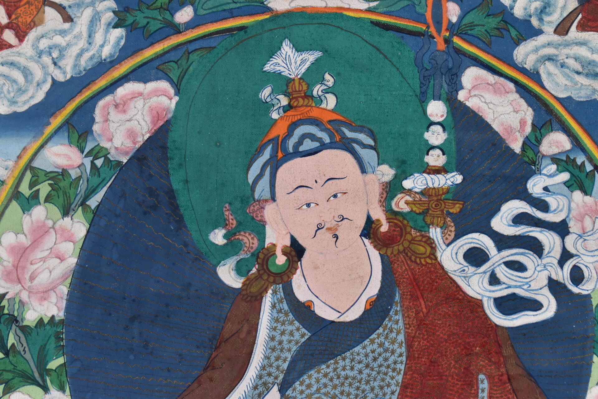 Tangka sur toile représentant Padma Sambava et Lamas. Népal XXe siècle. 58 x 37 cm.