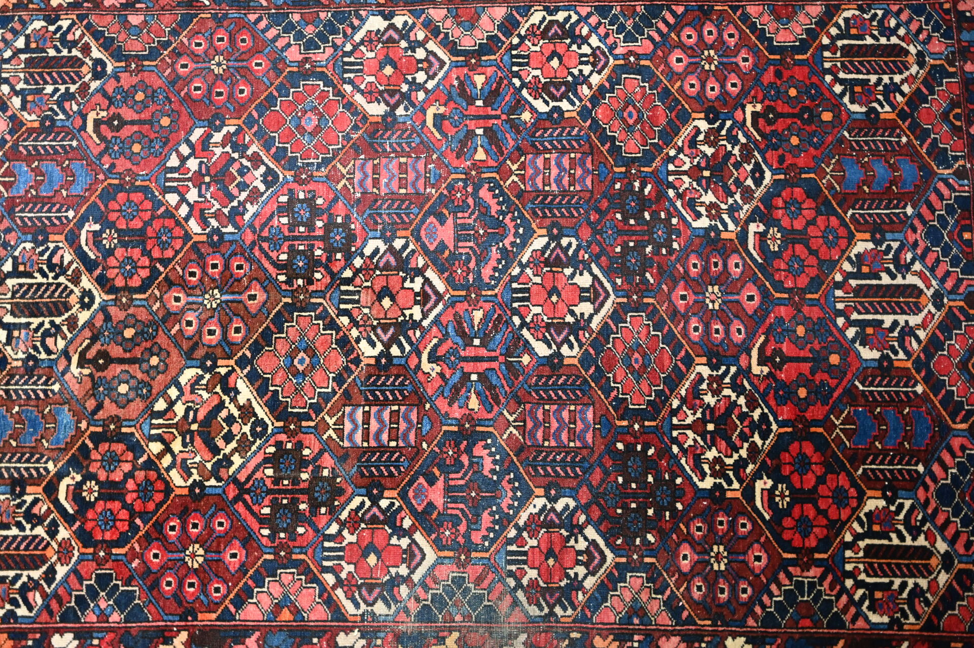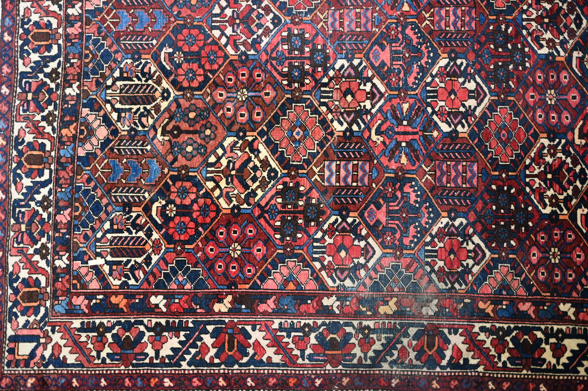 Tapis Bakthiar (chaîne et trame en coton, velours en laine), Sud-Ouest de la Perse, vers 1950-1980. 299 x 227 cm. Usures, effrangé et lisières abimées.