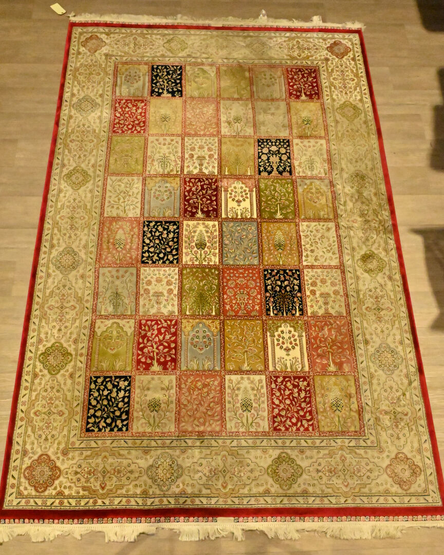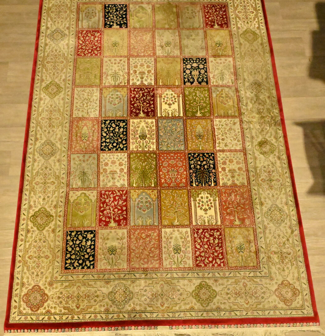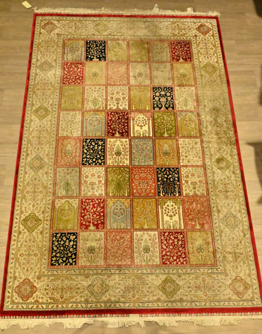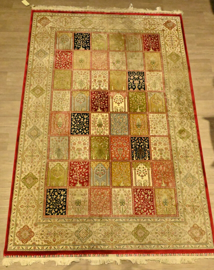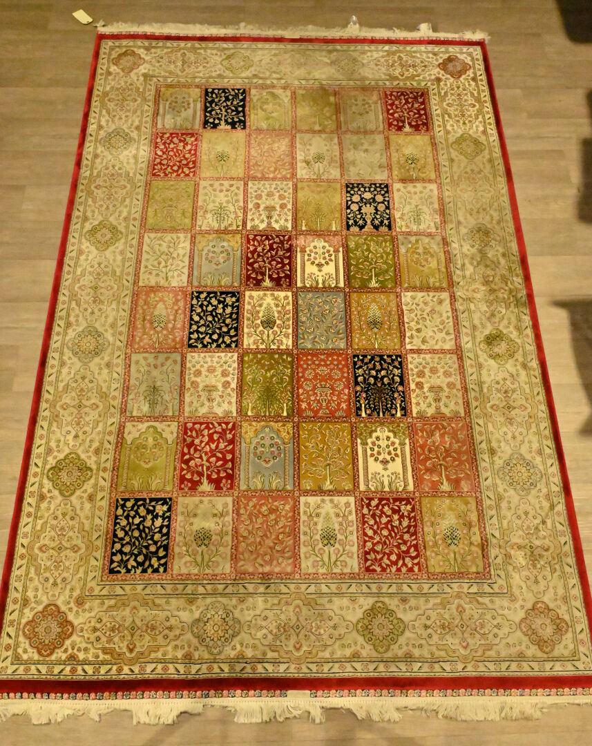 Tapis en laine et soie à décor de jardin. 200 x 300 cm.