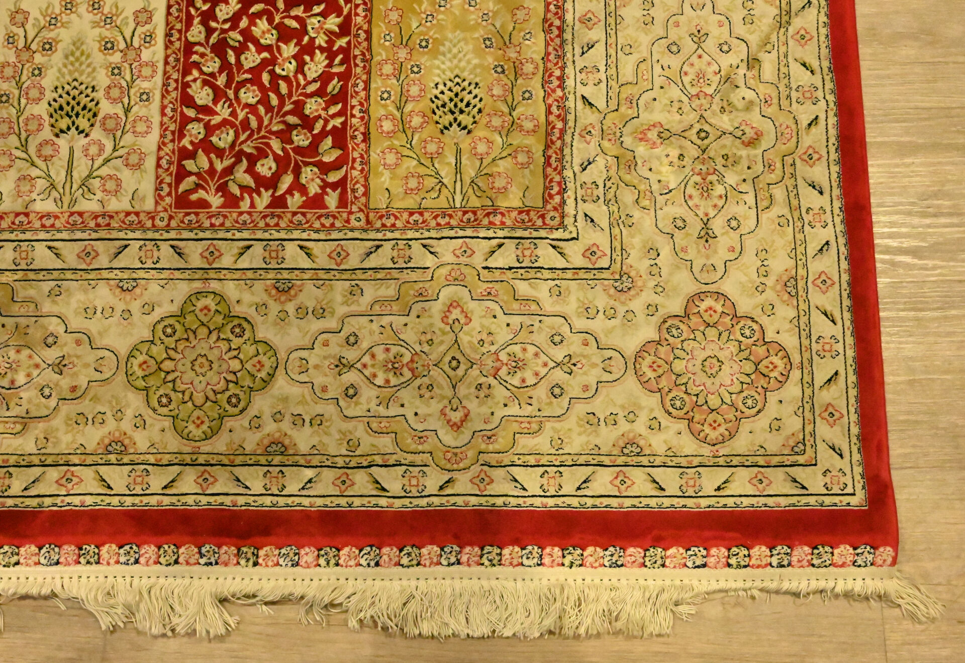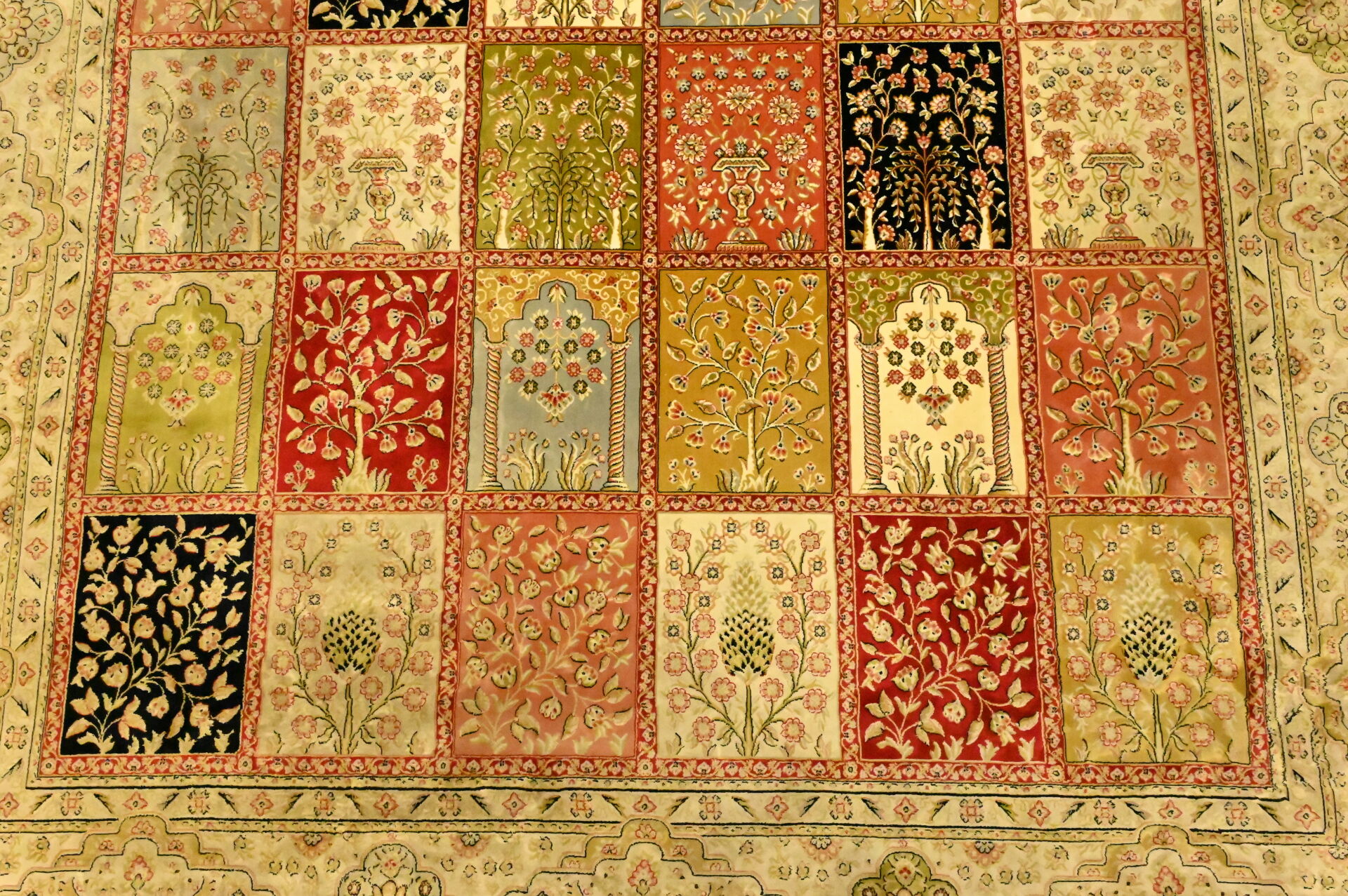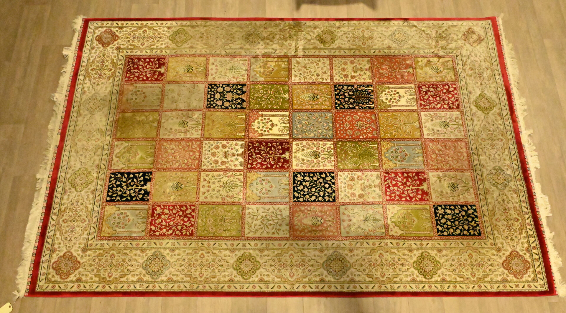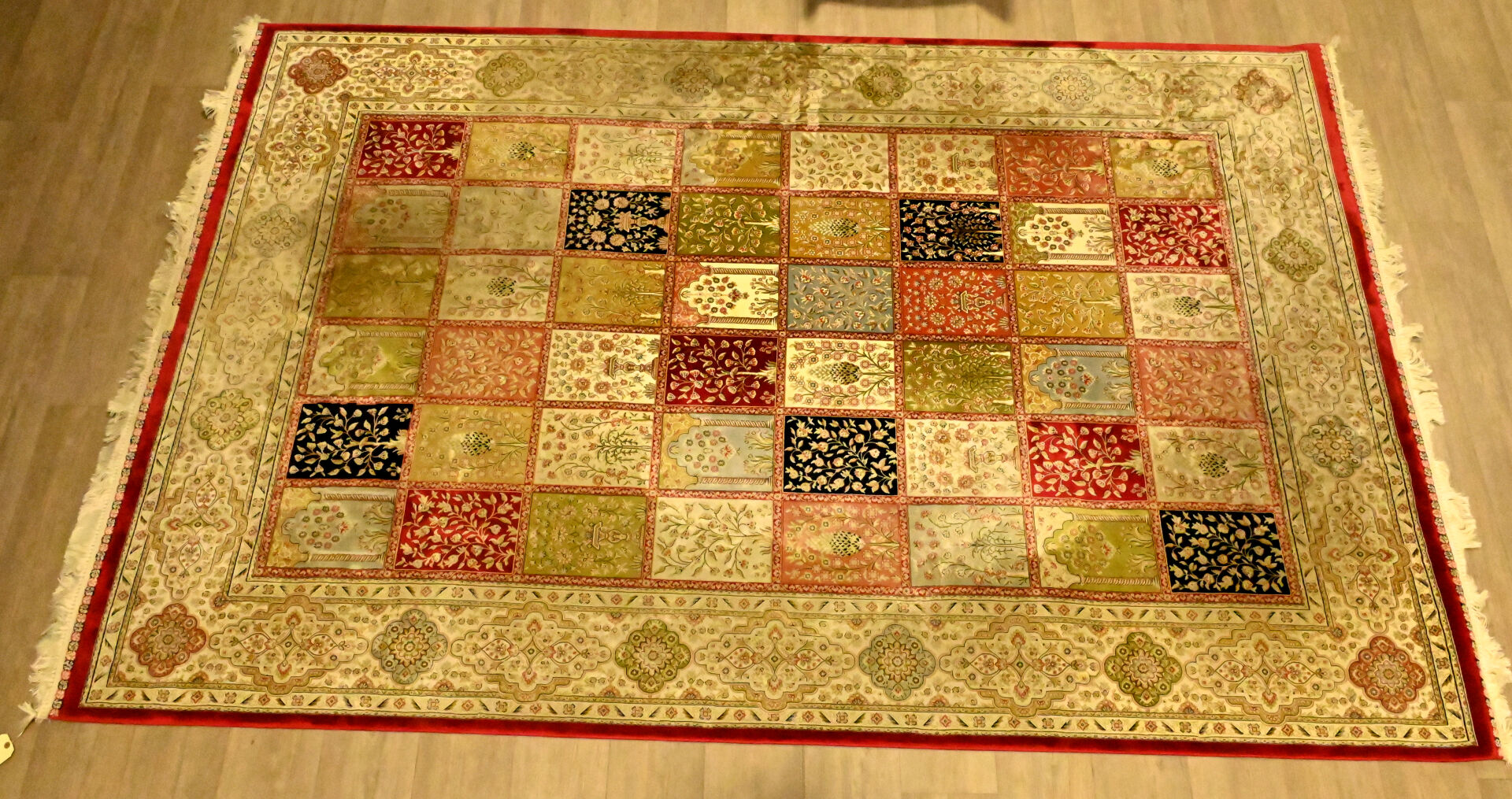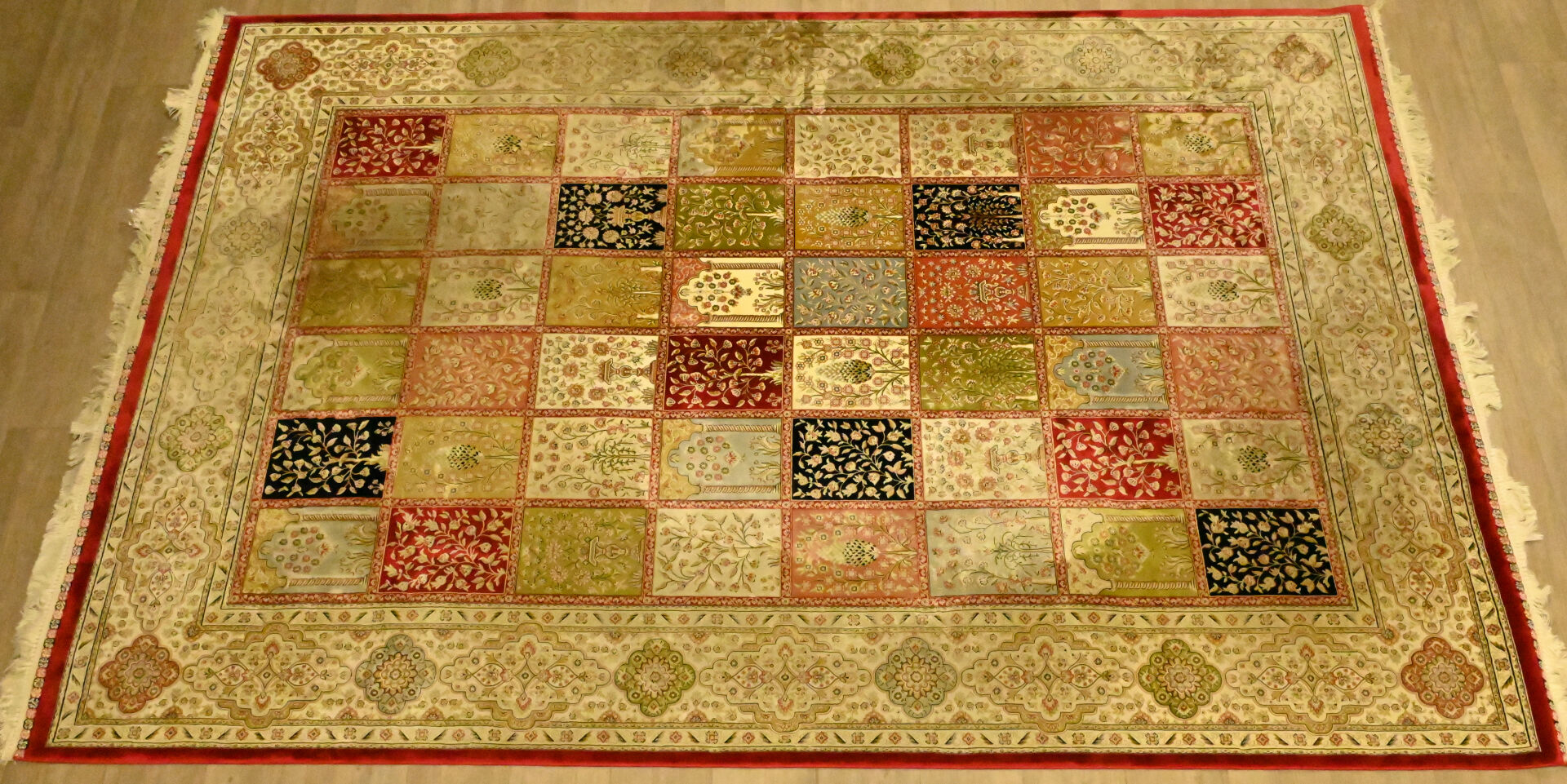 Tapis en laine et soie à décor de jardin. 200 x 300 cm.