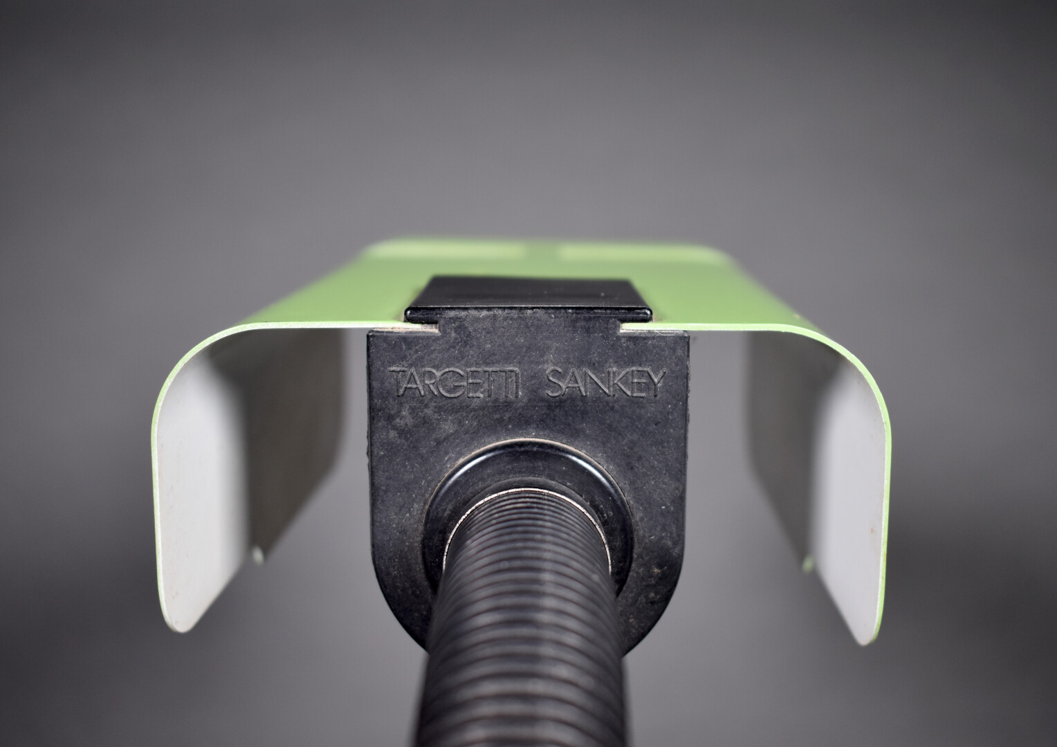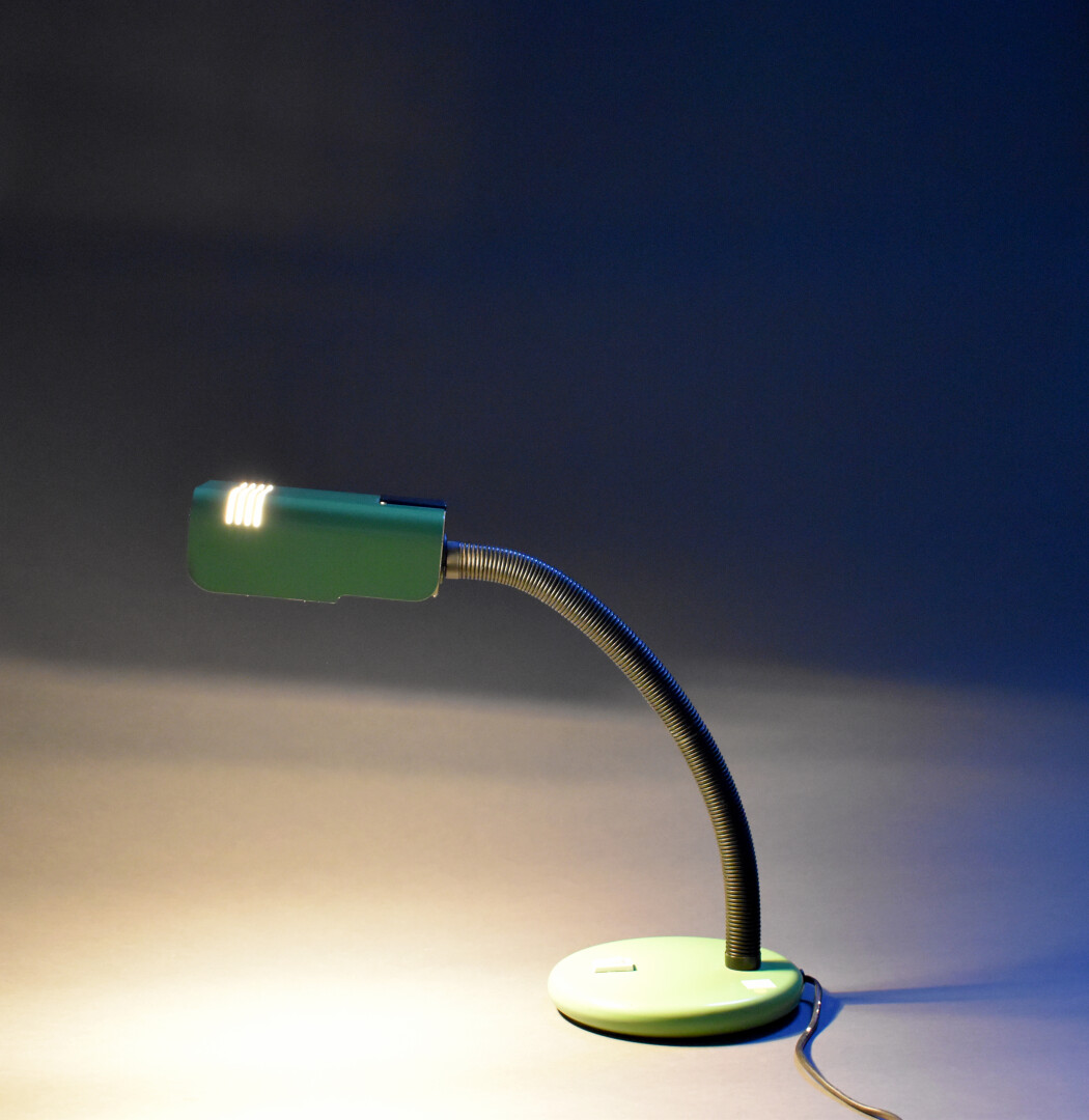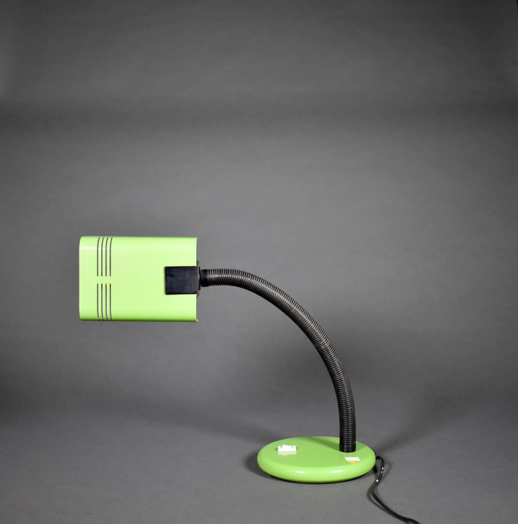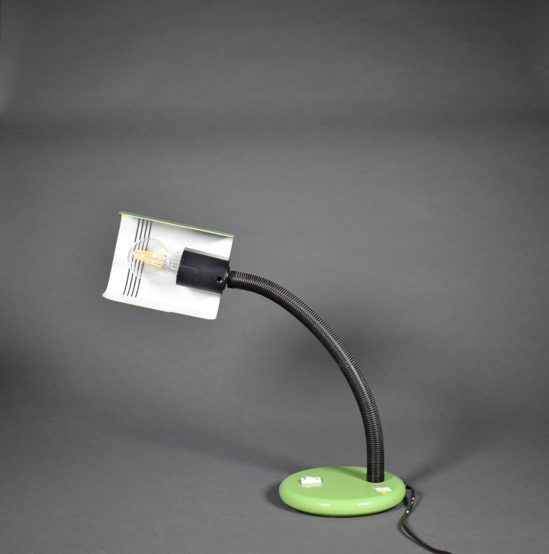 TARGETTI SANKEY. Lampe à poser en métal laqué vert, le fût ressort à hauteur ajustable. Vers 1970/1980. Haut. : 38,5 cm.