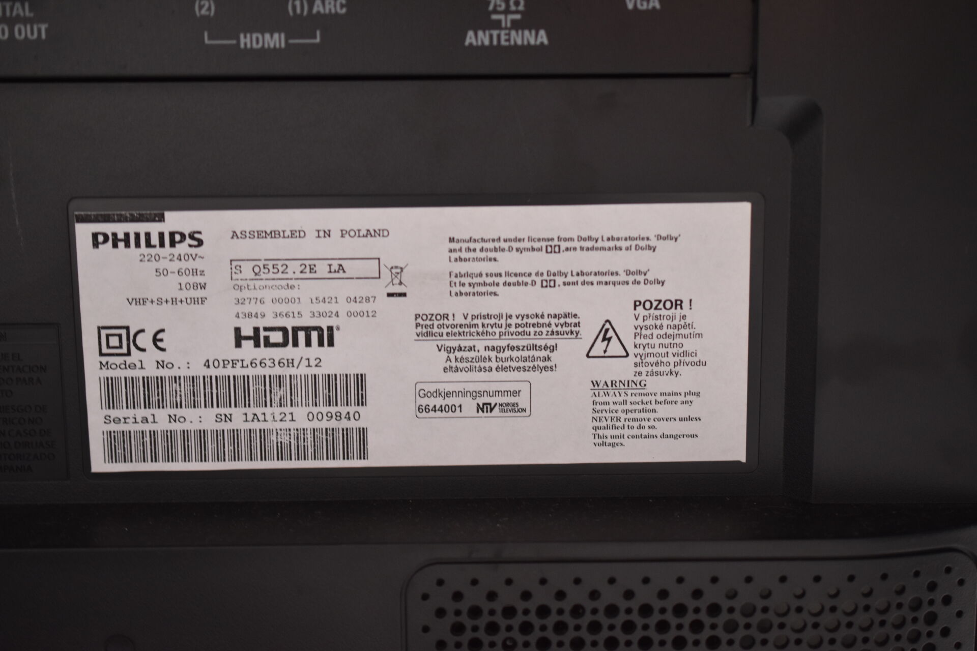 Téléviseur à écran plat de marque PHILIPPS modèle 6000 series 40PFL6636H/12 avec télécommande et câble d’alimentation. Diag. de l’écran : 102 cm.
