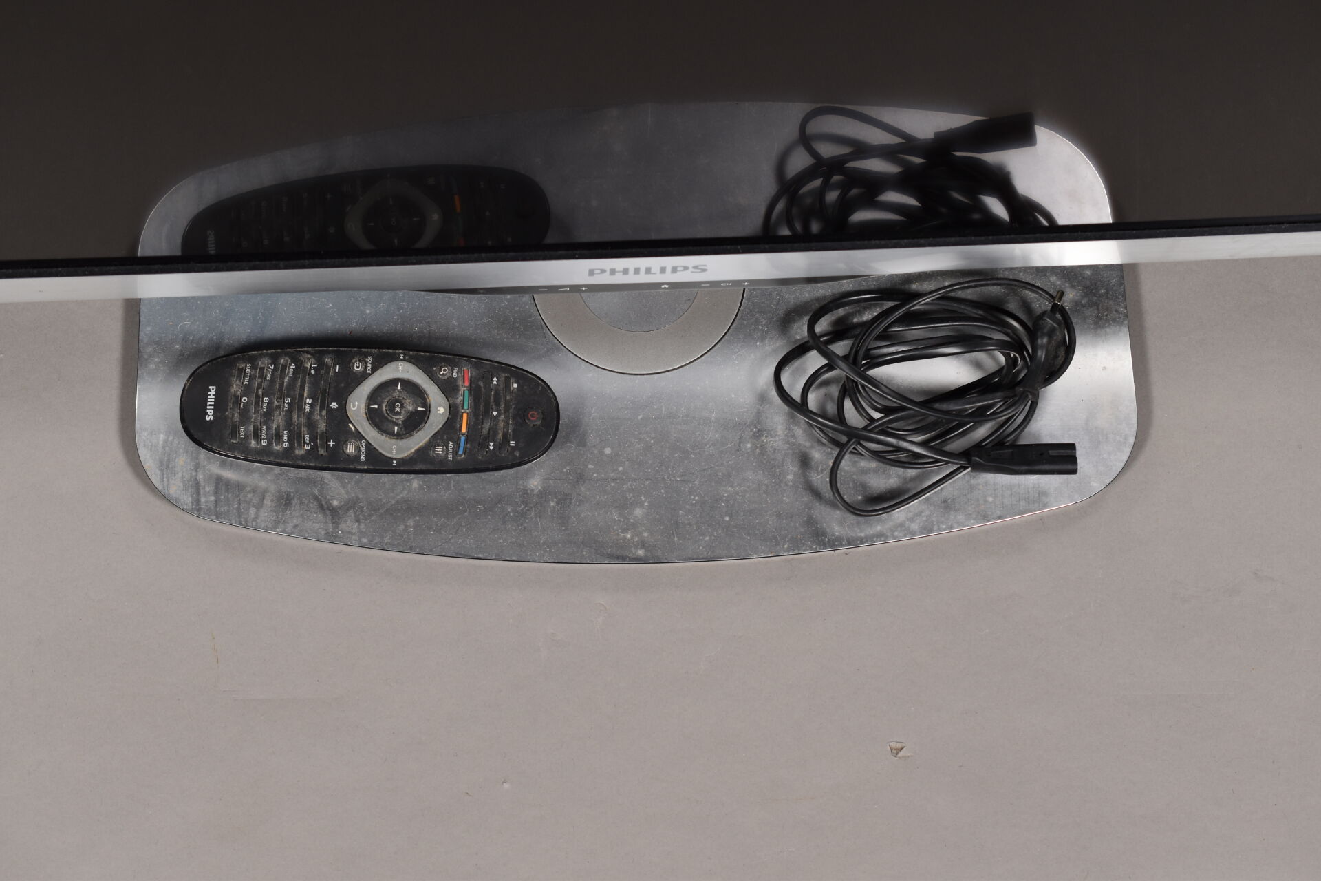 Téléviseur à écran plat de marque PHILIPPS modèle 6000 series 40PFL6636H/12 avec télécommande et câble d’alimentation.