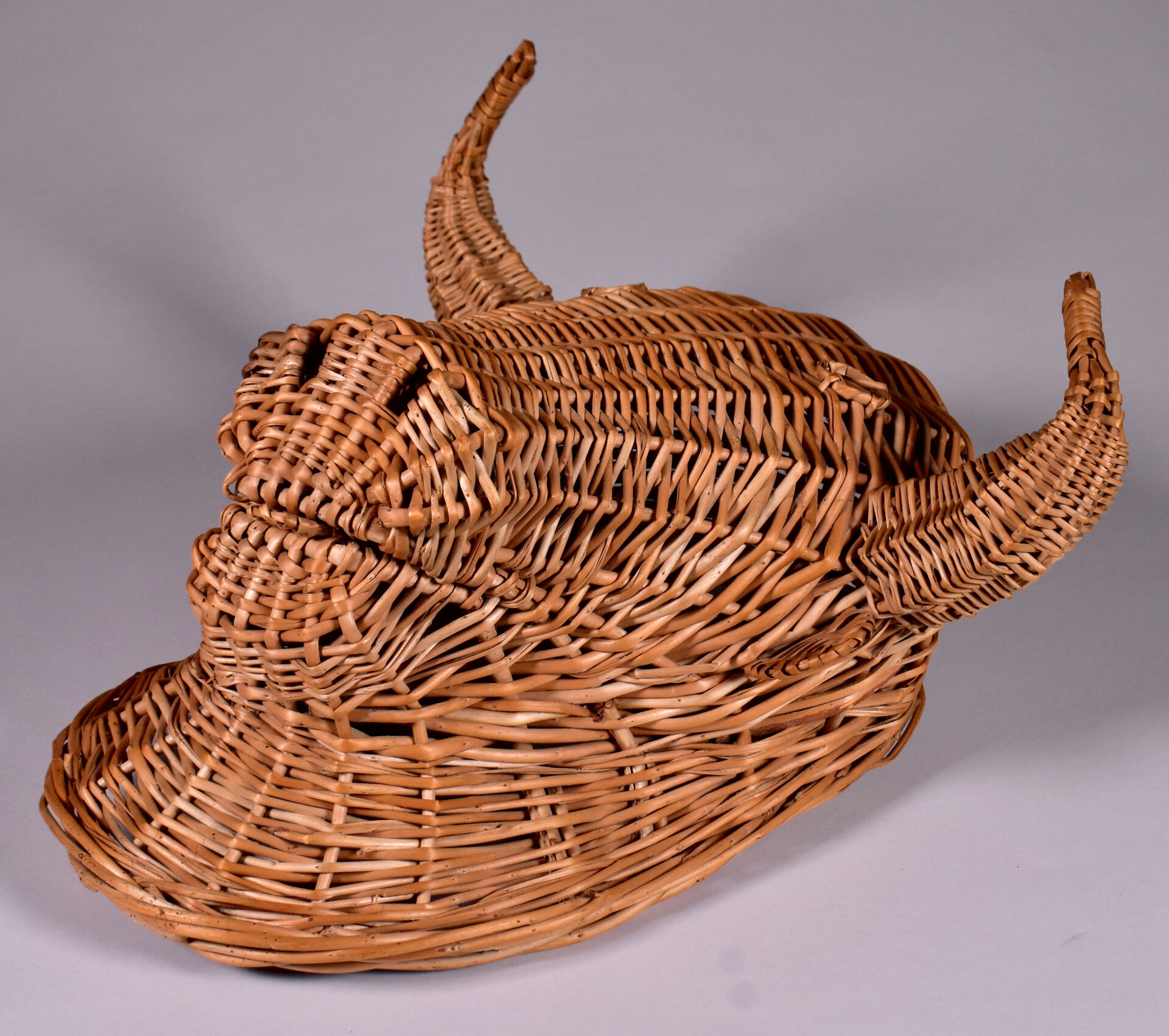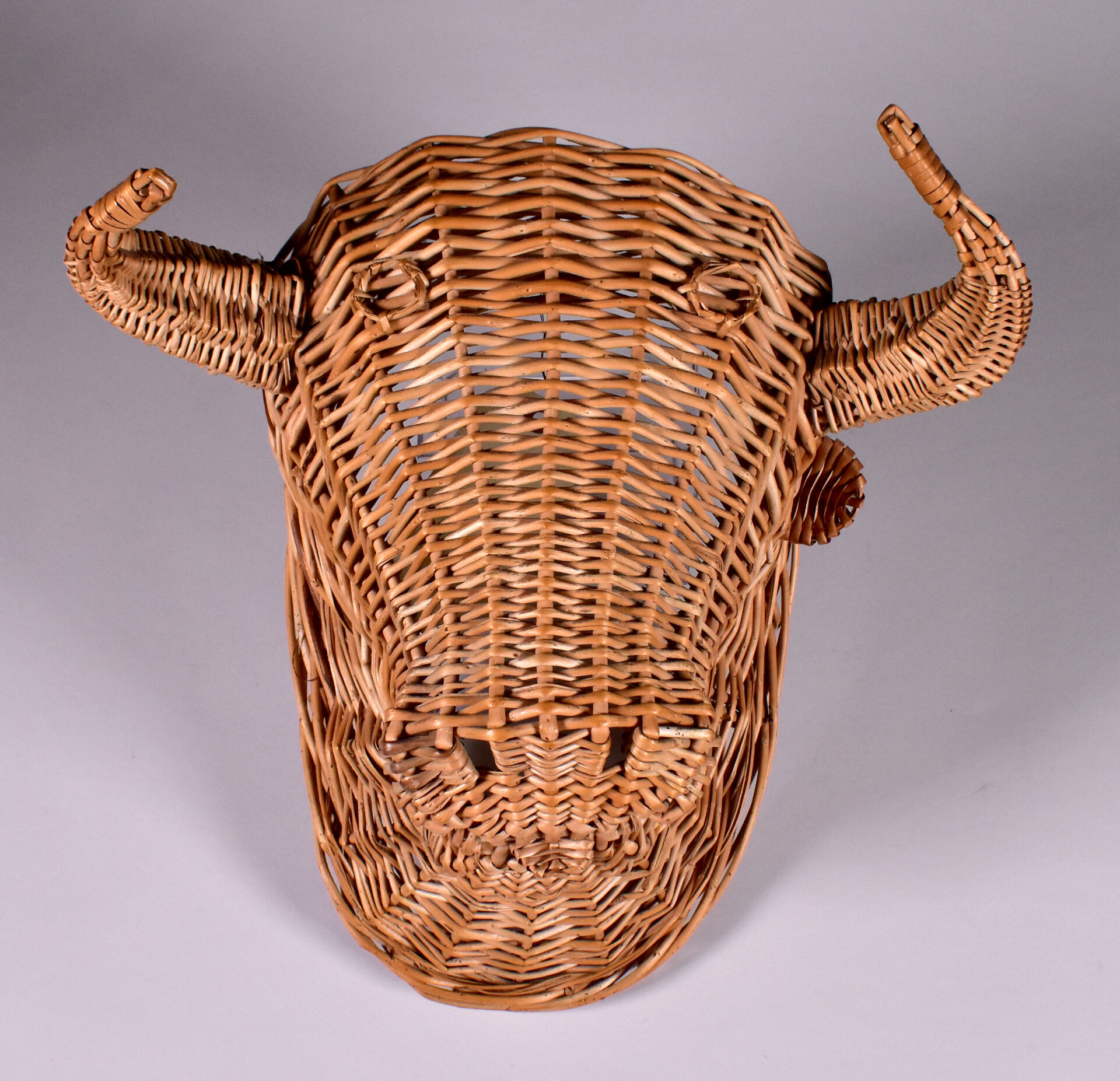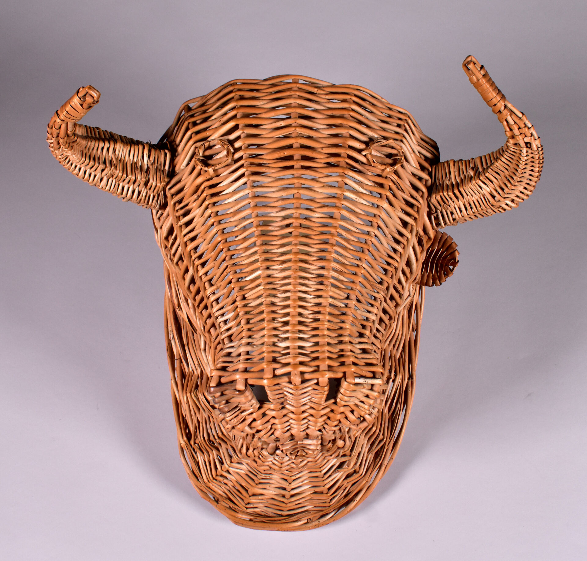 Tête de taureau en osier tressé. Probablement vers 1970. Haut. : 37 cm.
