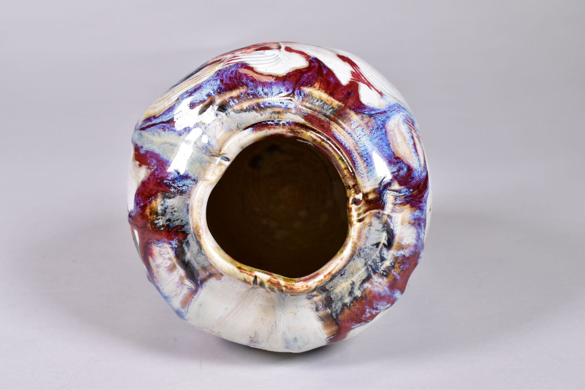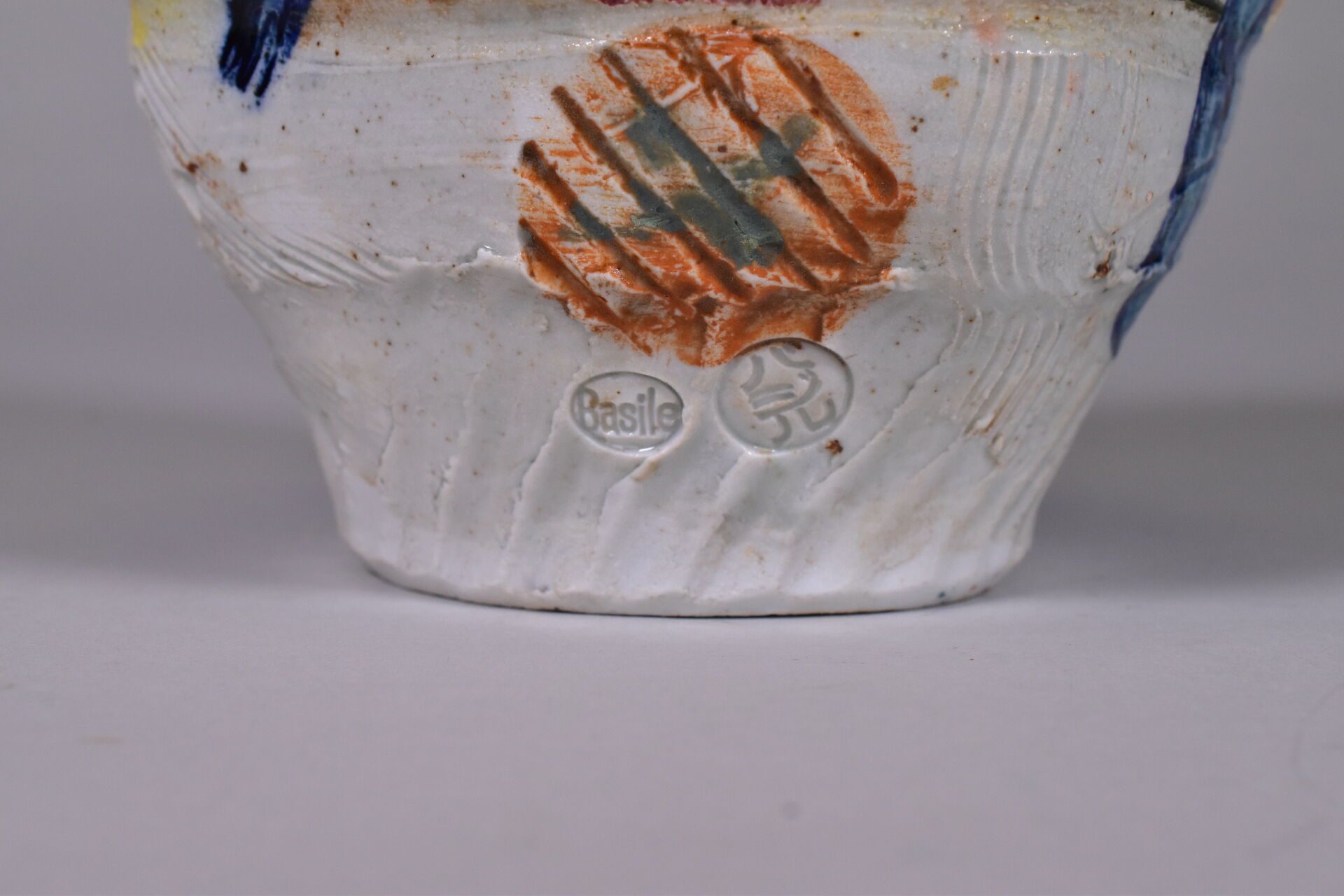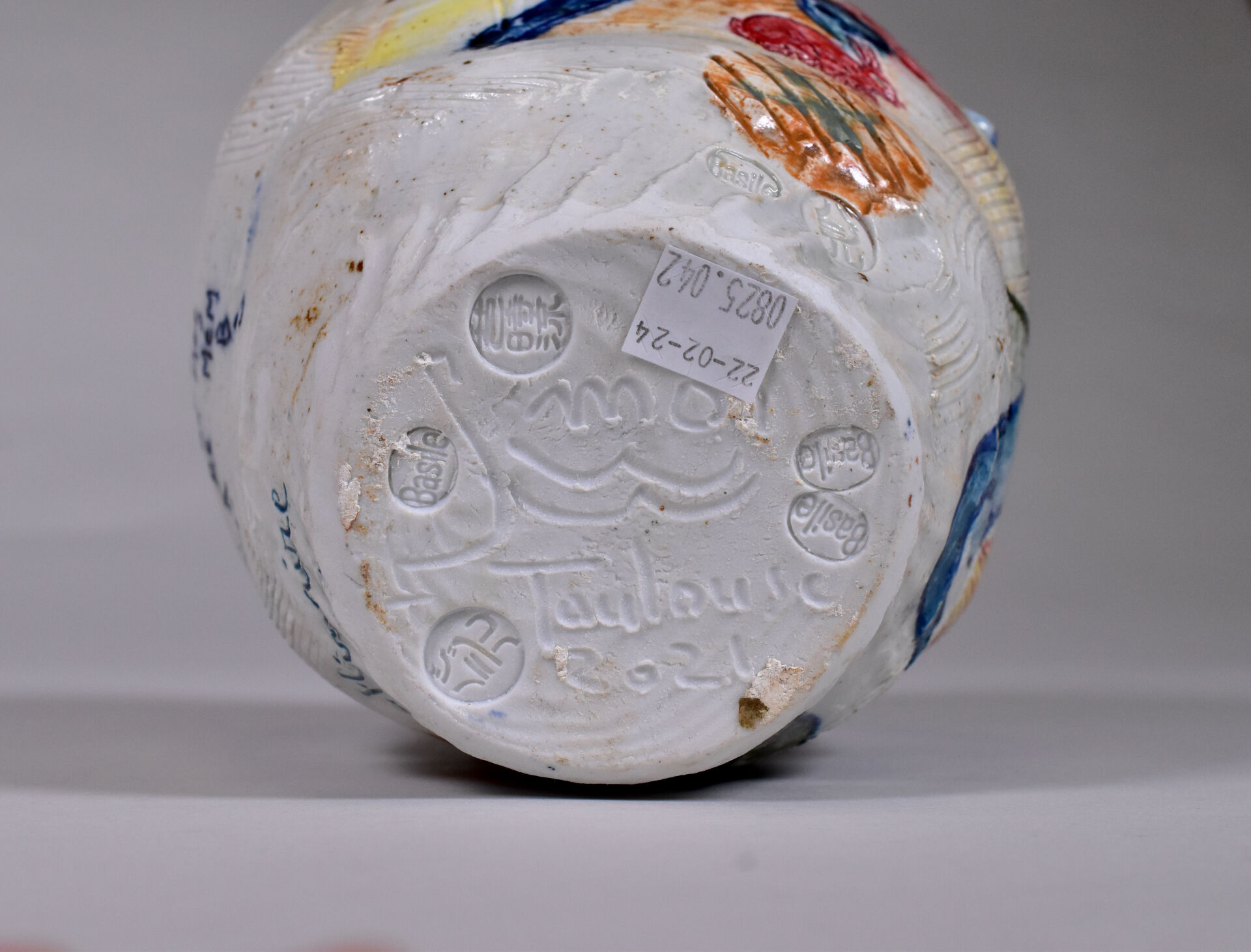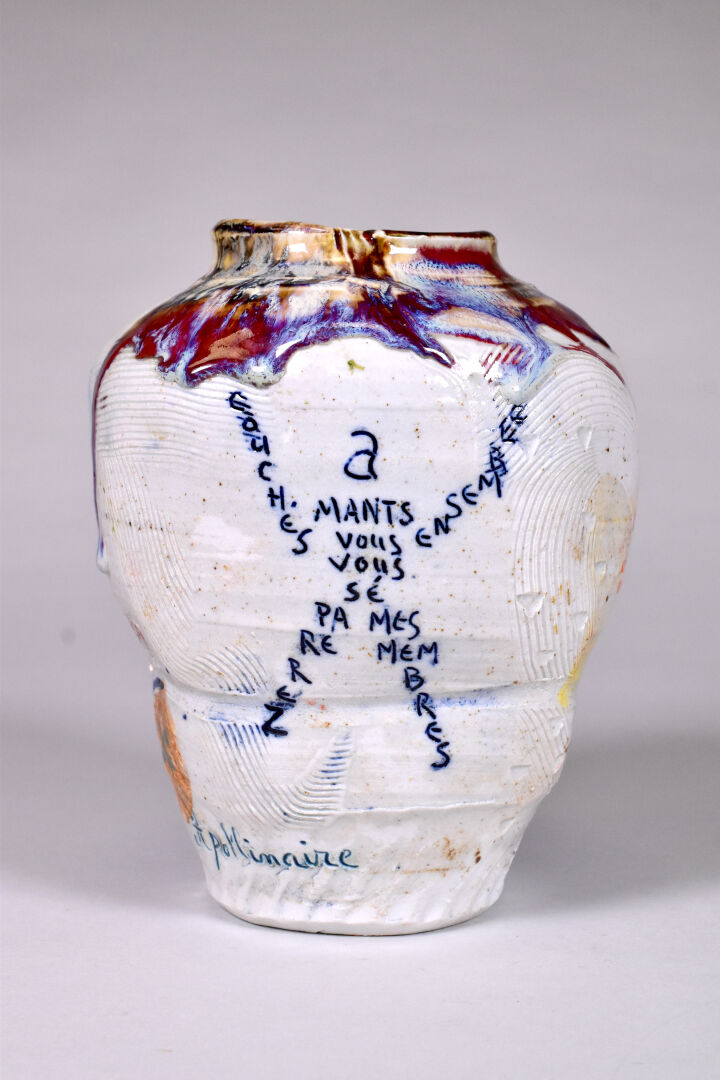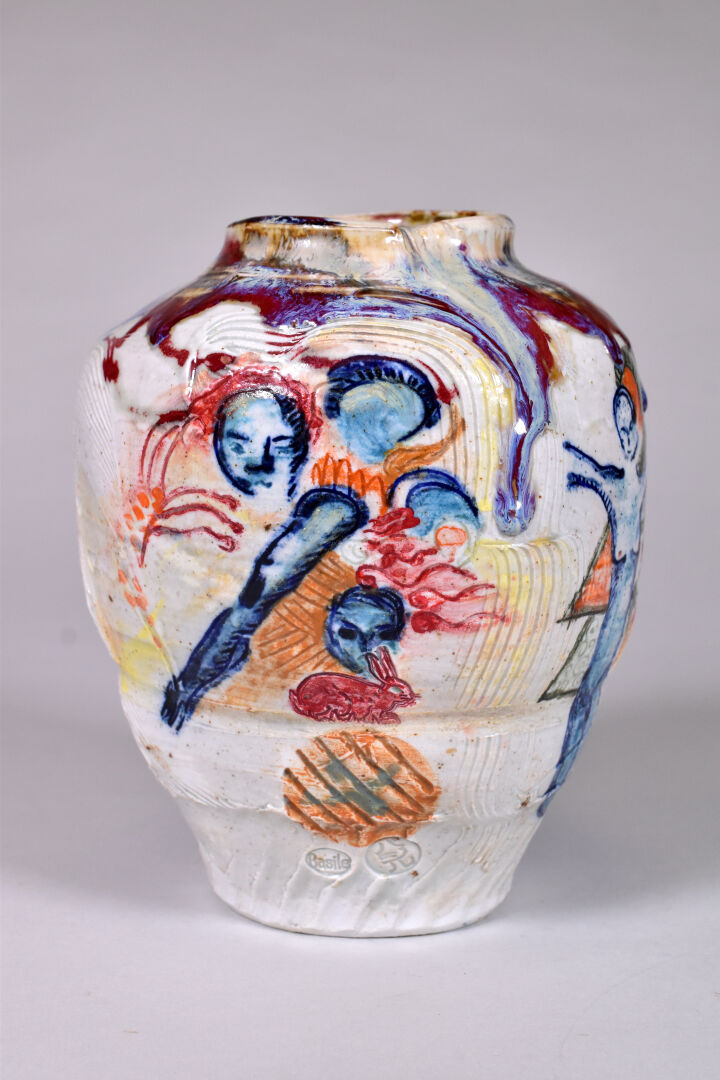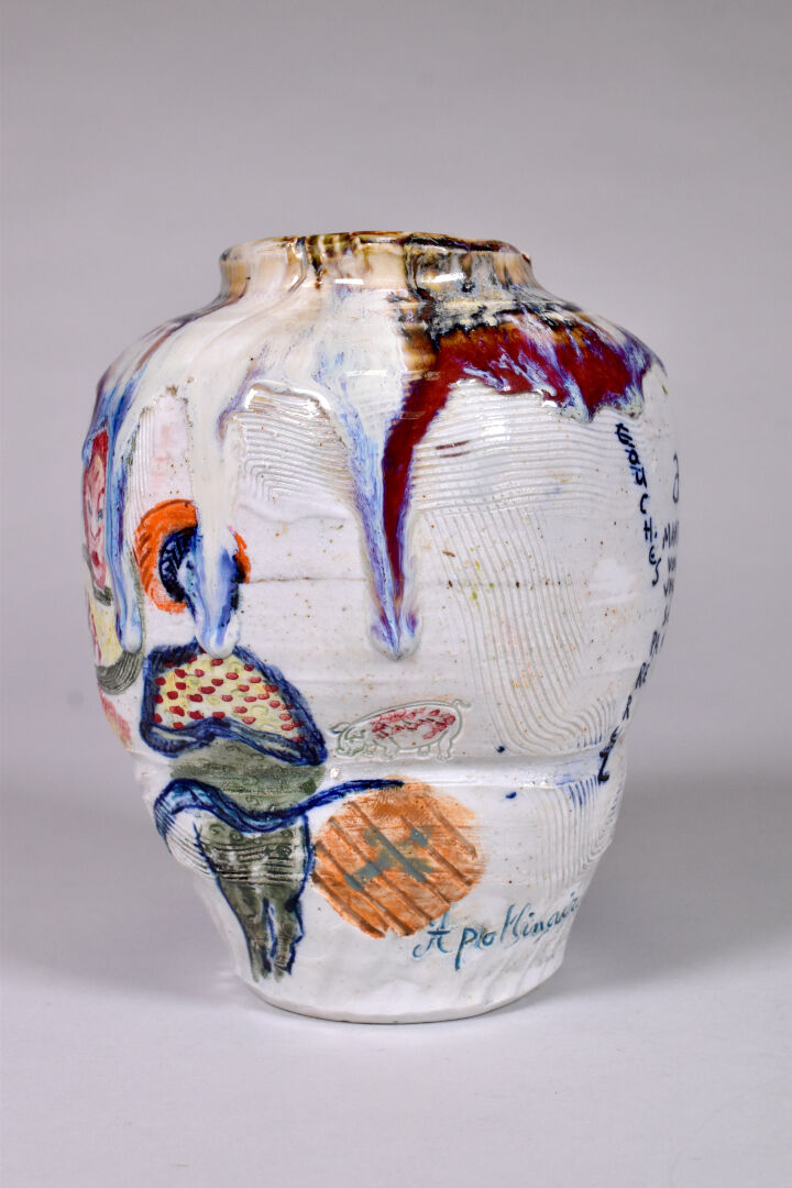 Thierry BASILE (Né en 1955). Vase en céramique à décor parlant. Signé, situé et daté 2021 au dessous. Haut. : 20 cm.