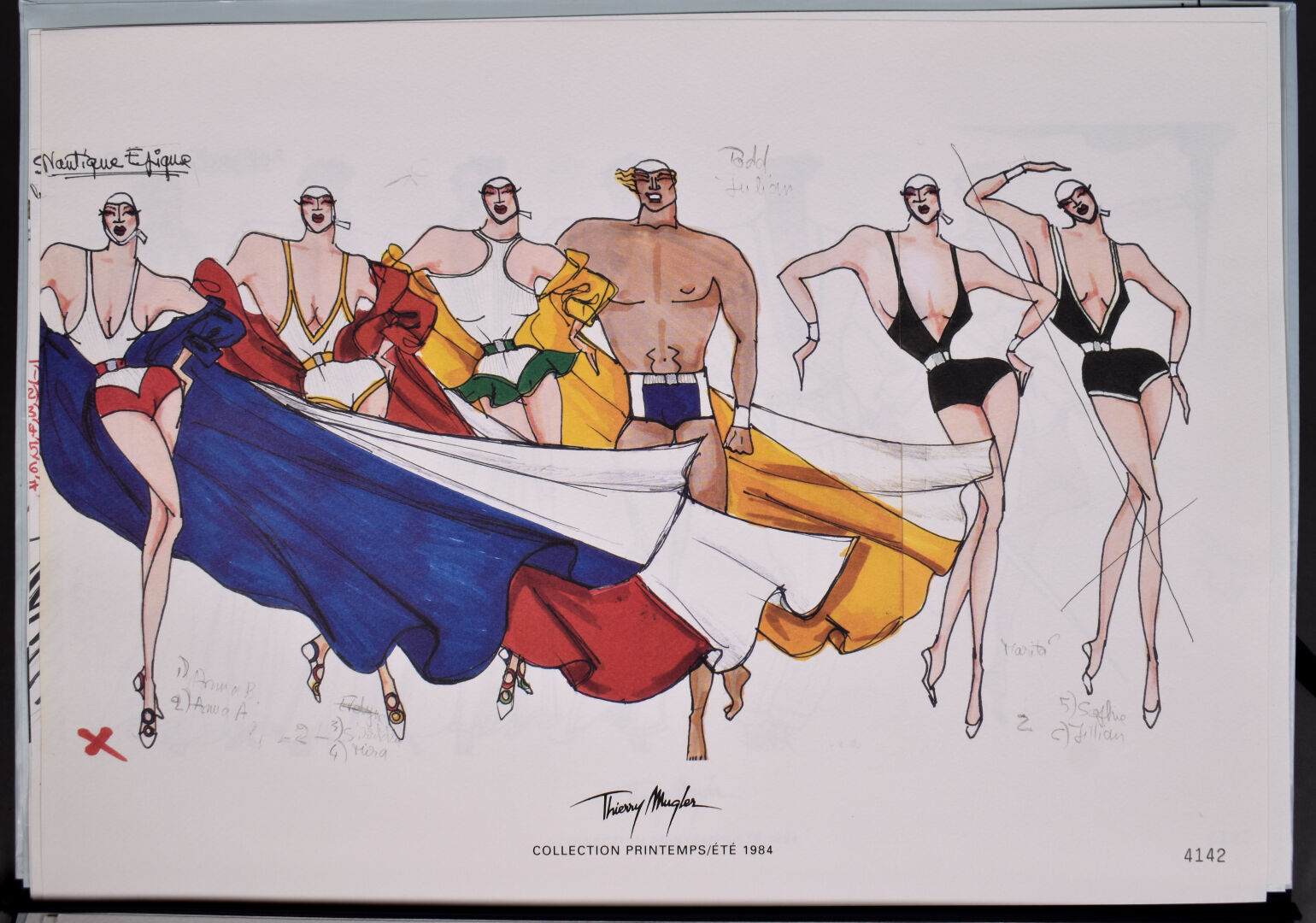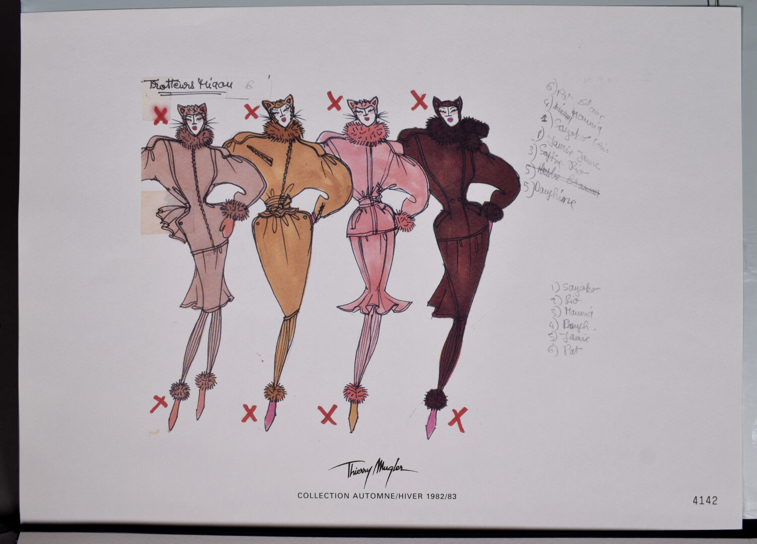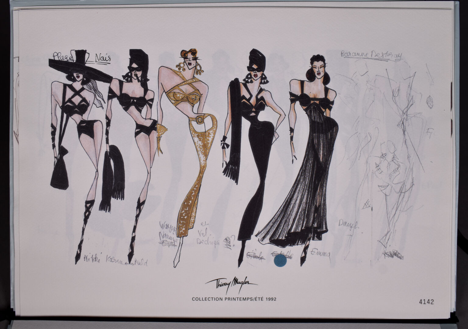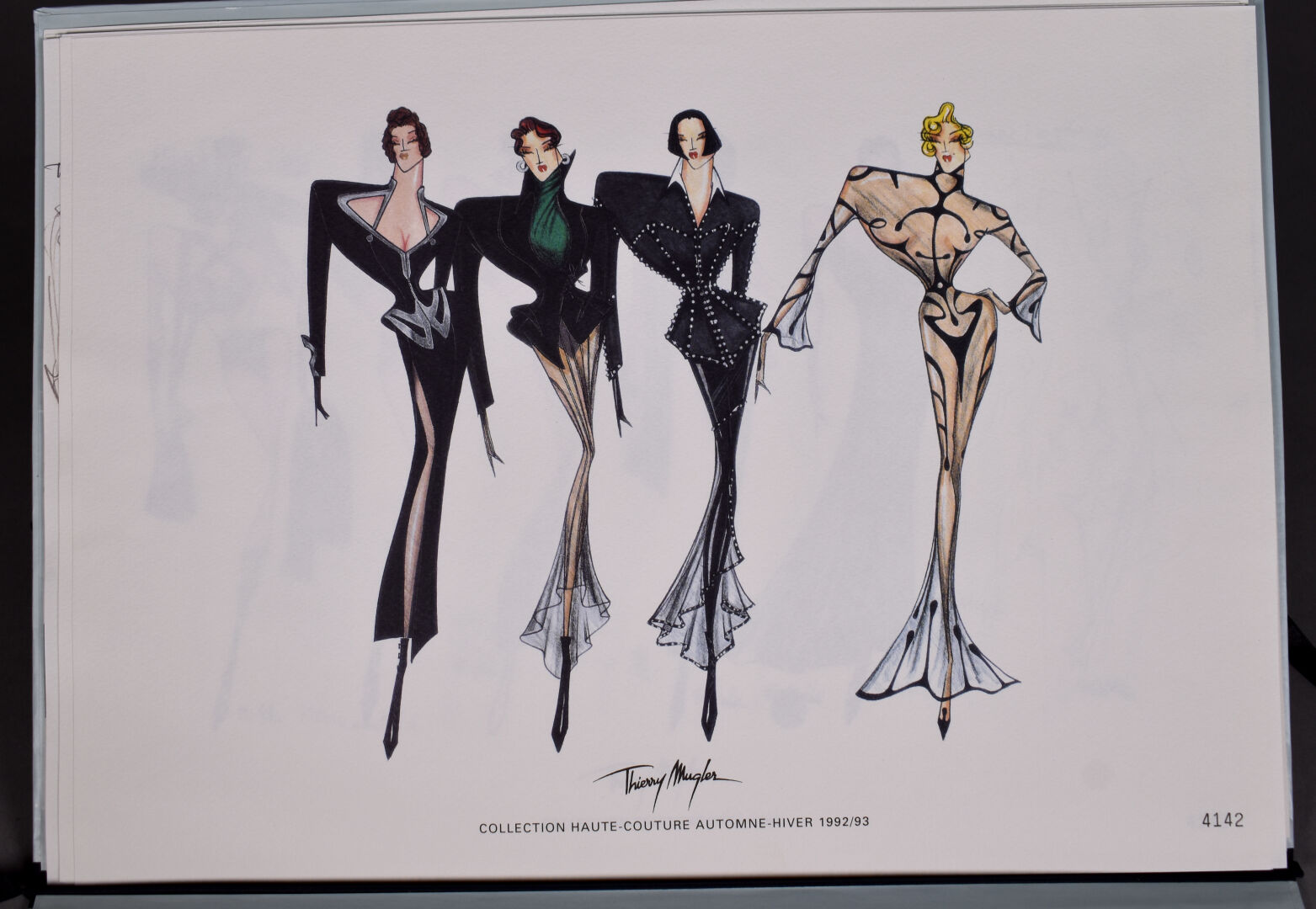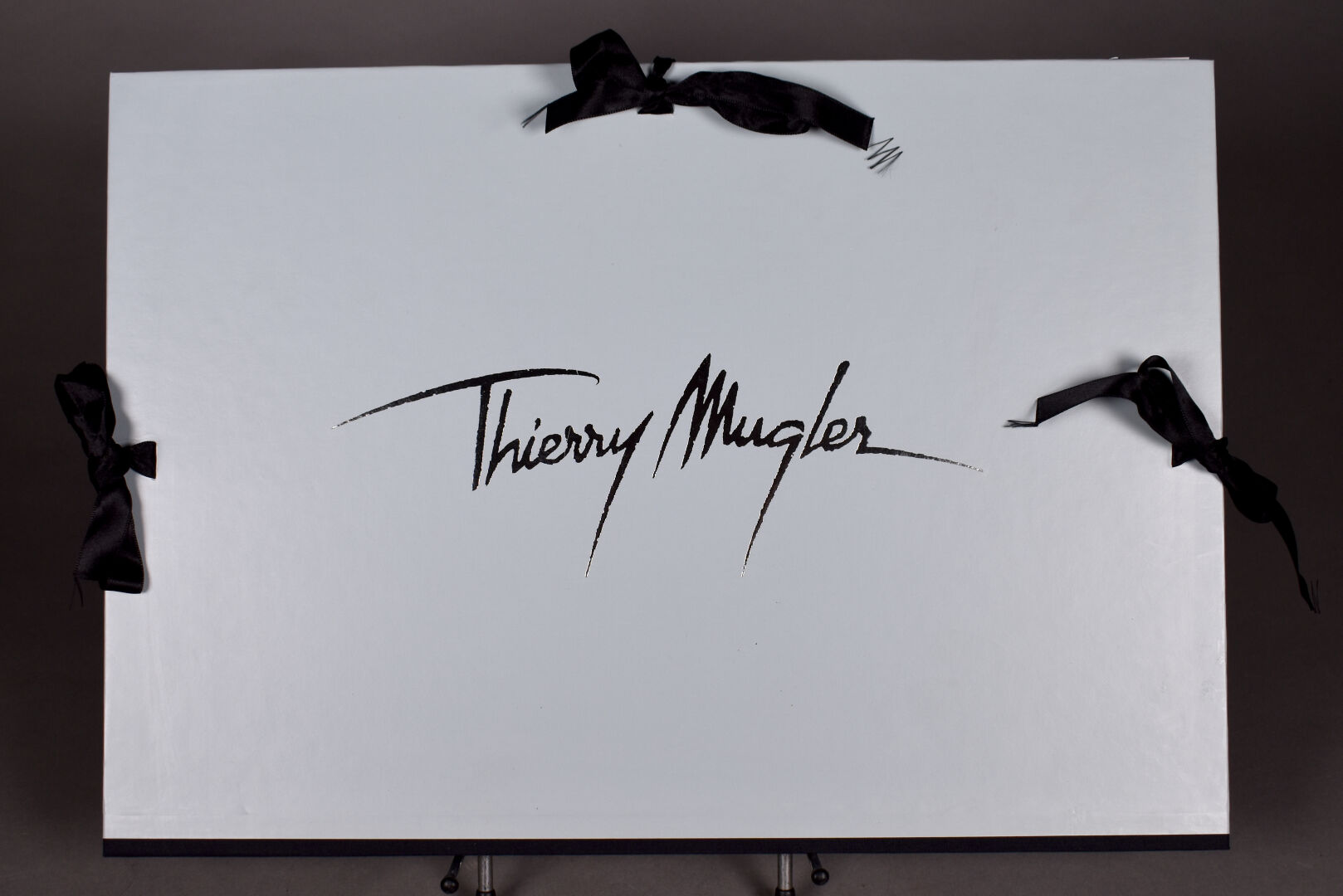 Thierry MUGLER. Portfolio contenant 15 planches de reproductions de dessins du créateur, dont collections Haute couture Automne Hiver 92/93, Printemps été 92, Automne hiver 89/90. Numéroté 4142. Dim. d’une planche : 30 x 42 cm.