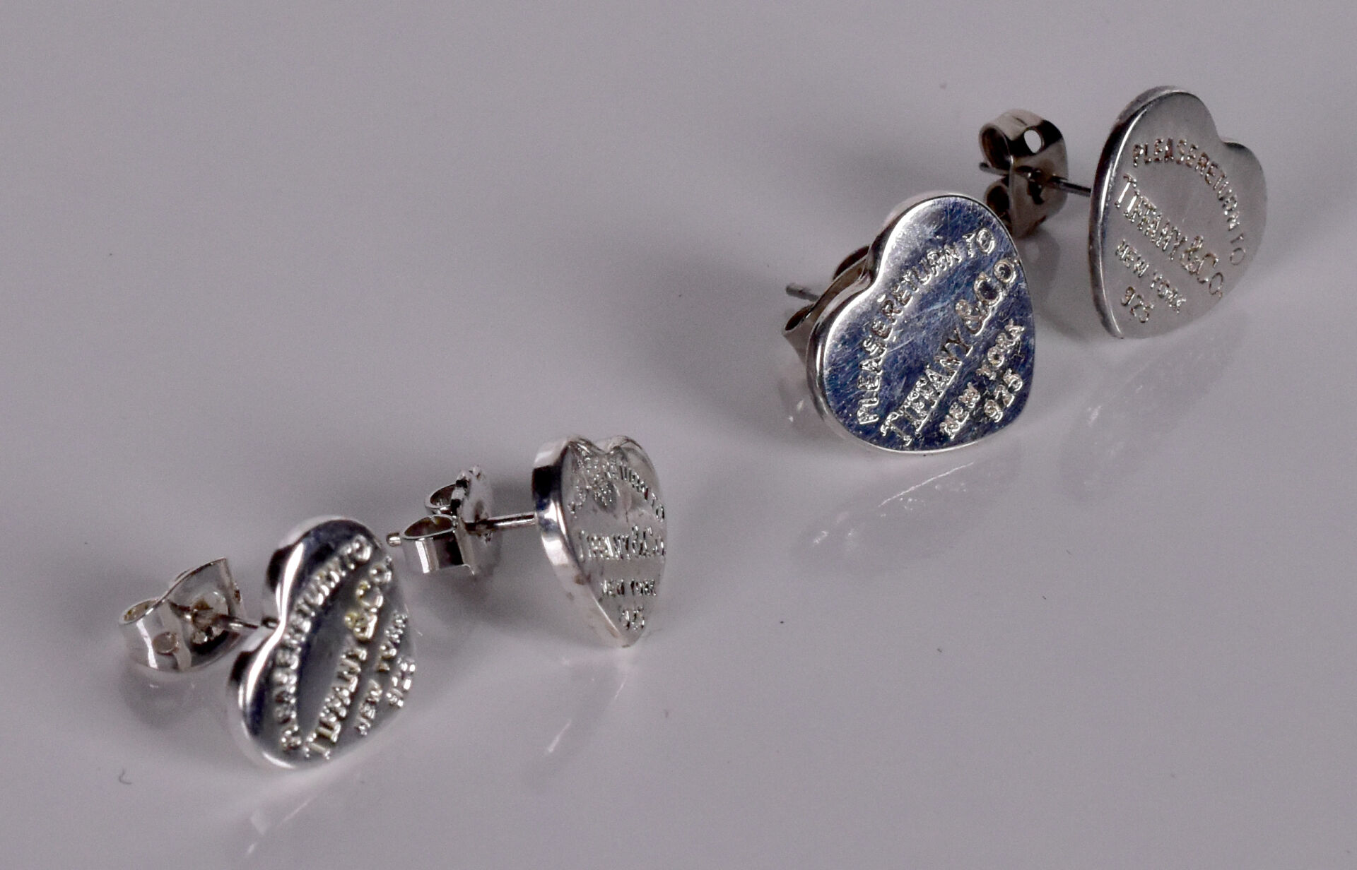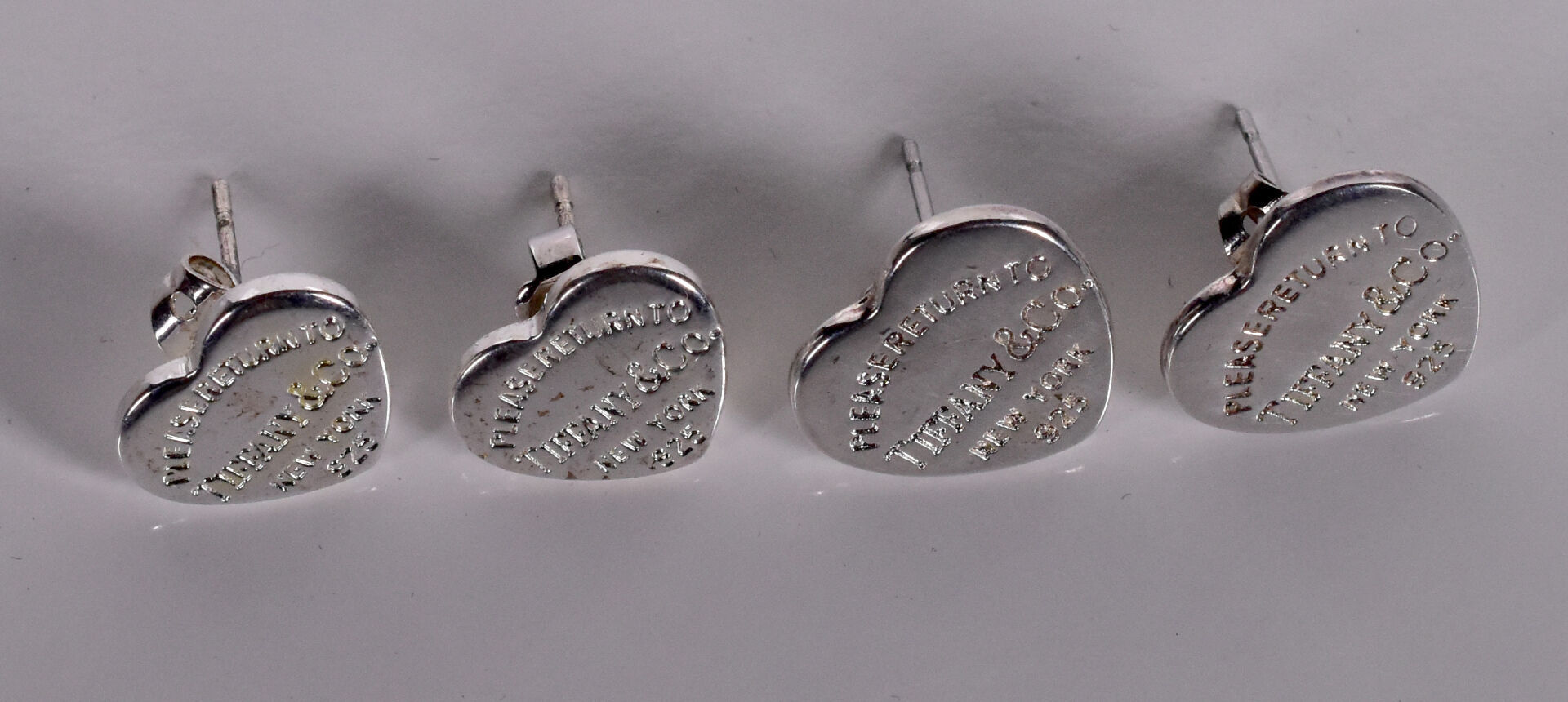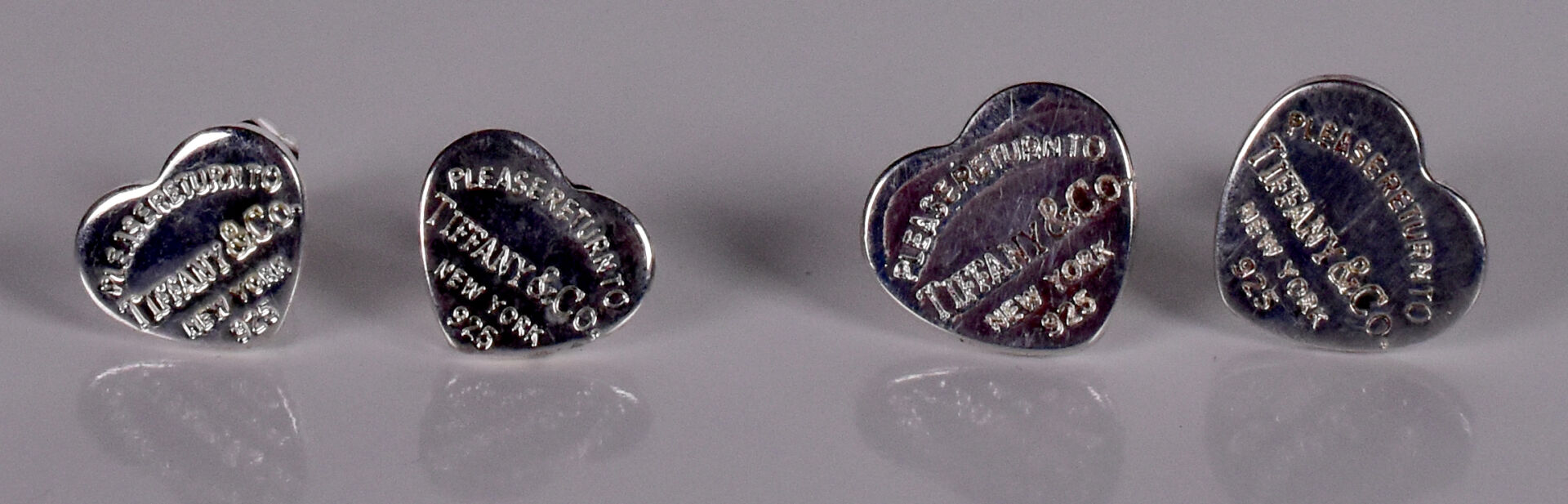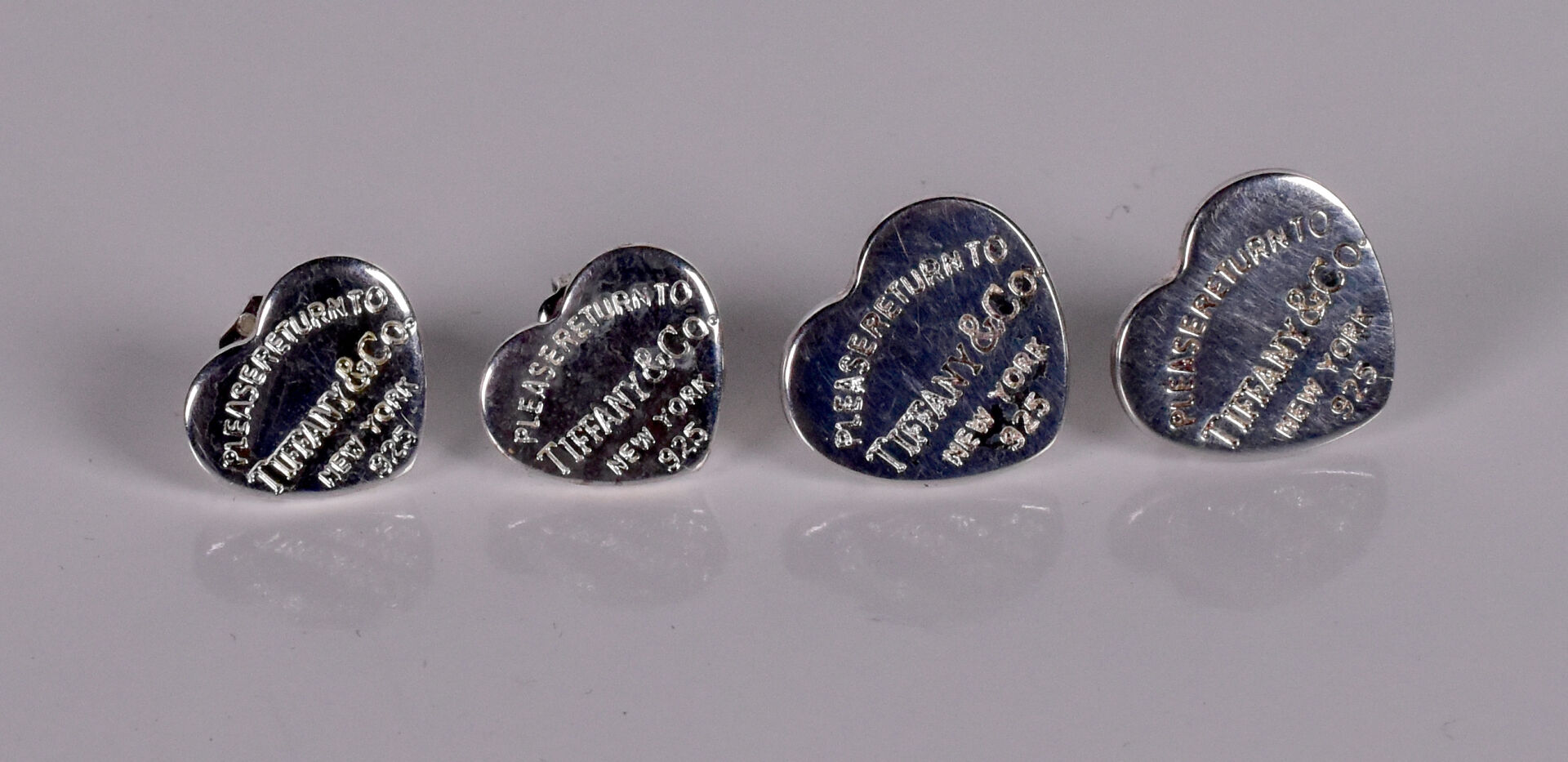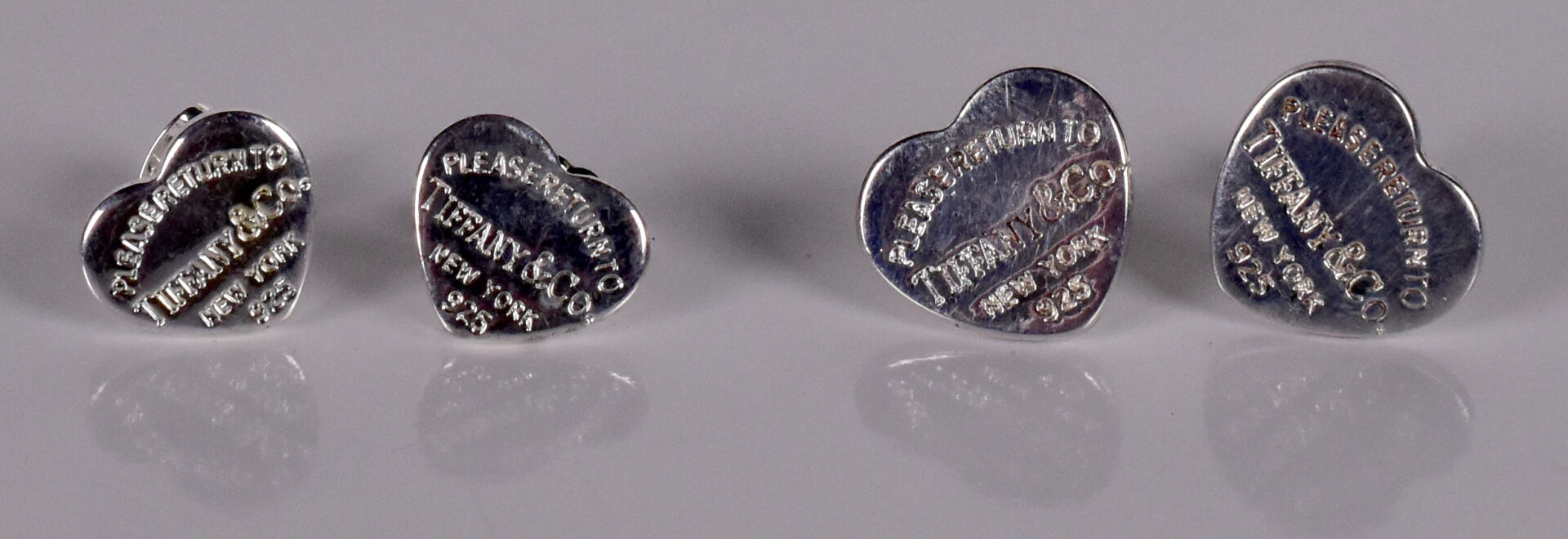 TIFFANY & CO. Deux paires de boucles d’oreilles forme coeur, gravées sur le dessus en argent 925/1000e. Poids brut. : 5,2 g.