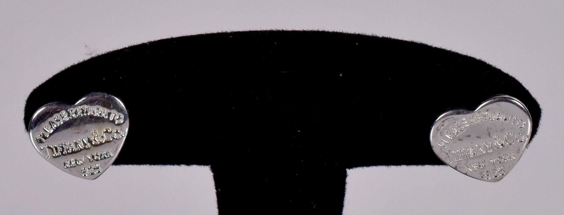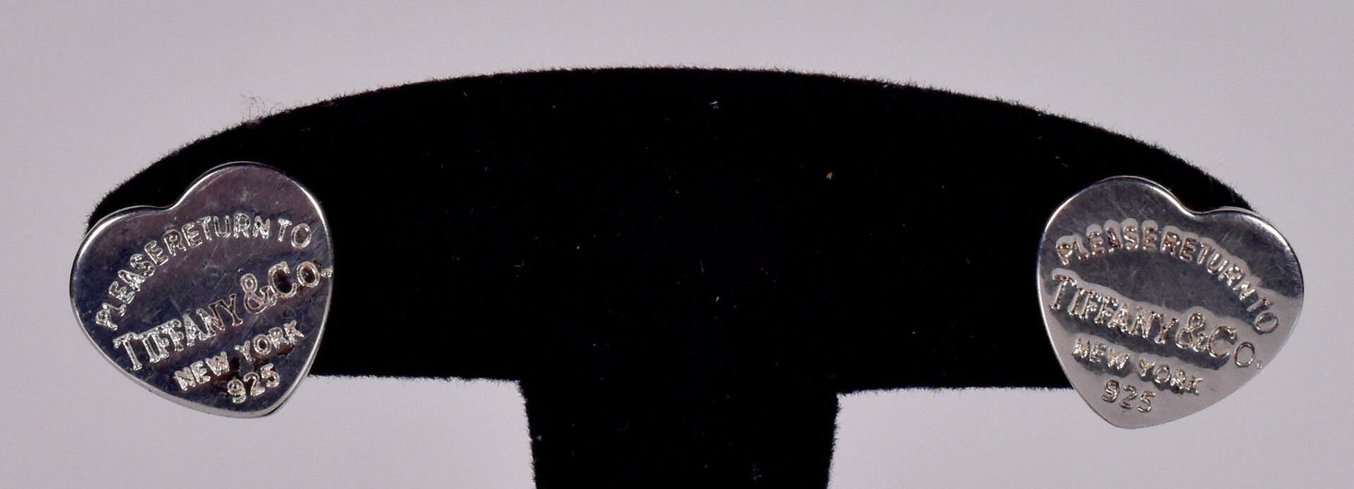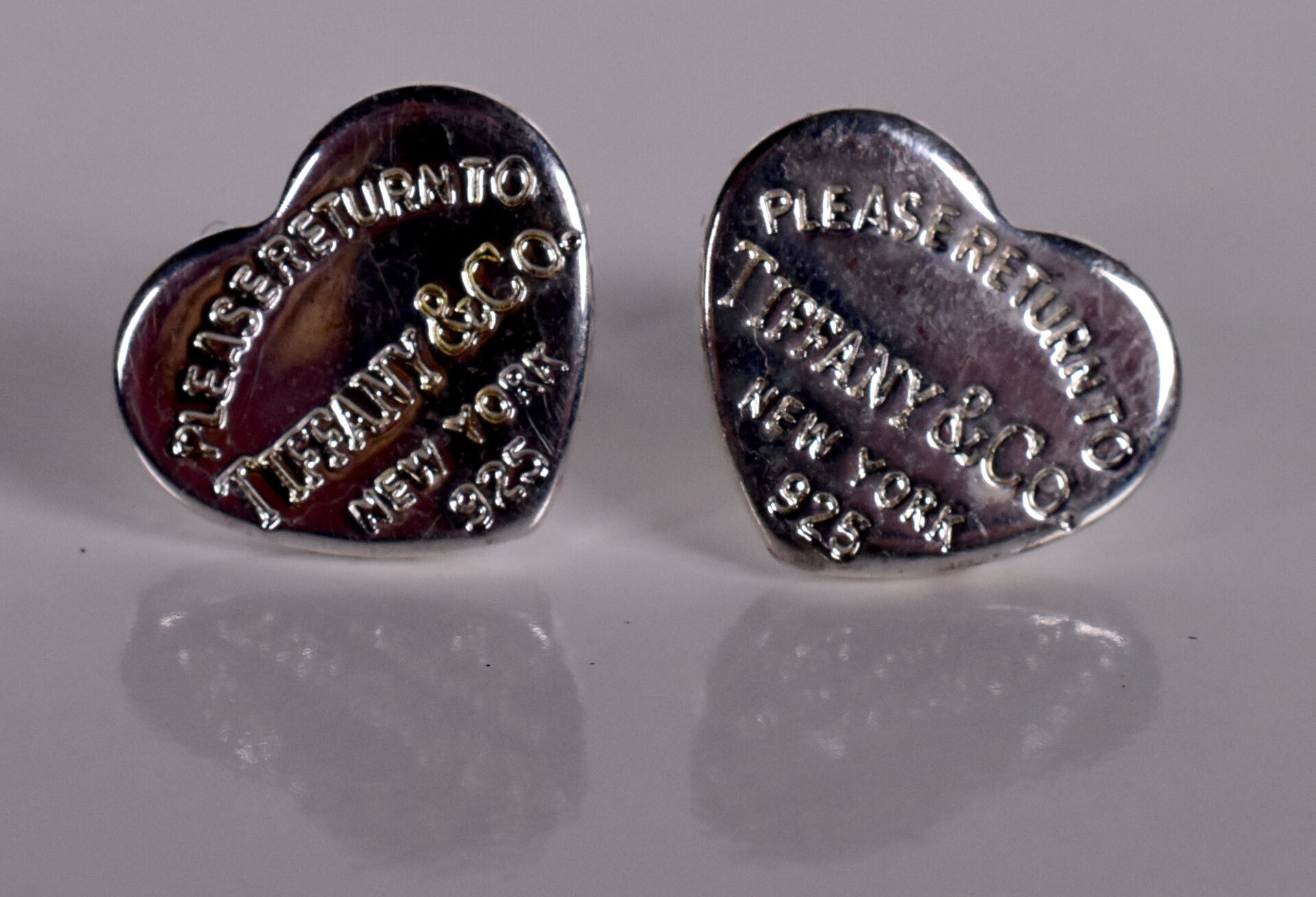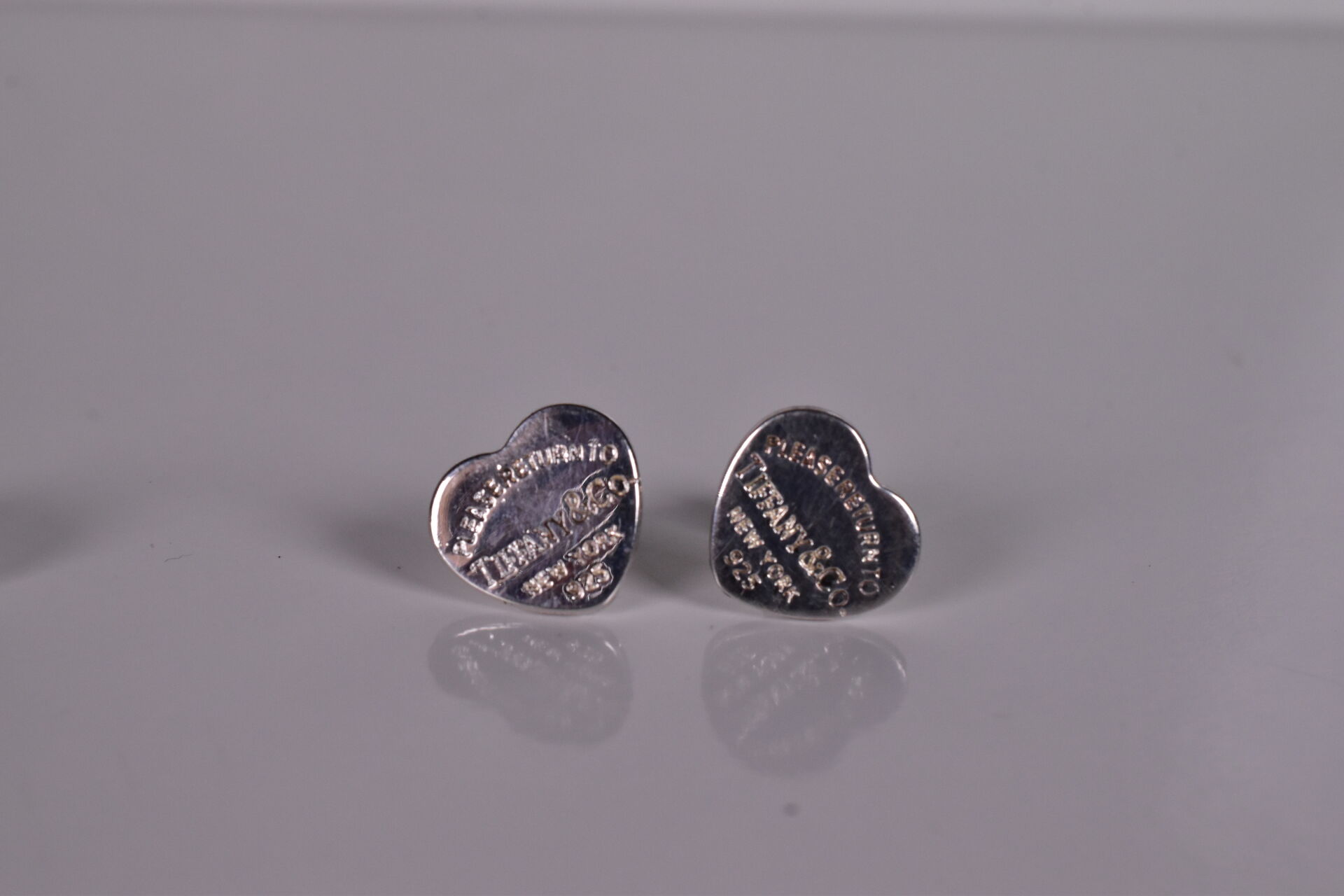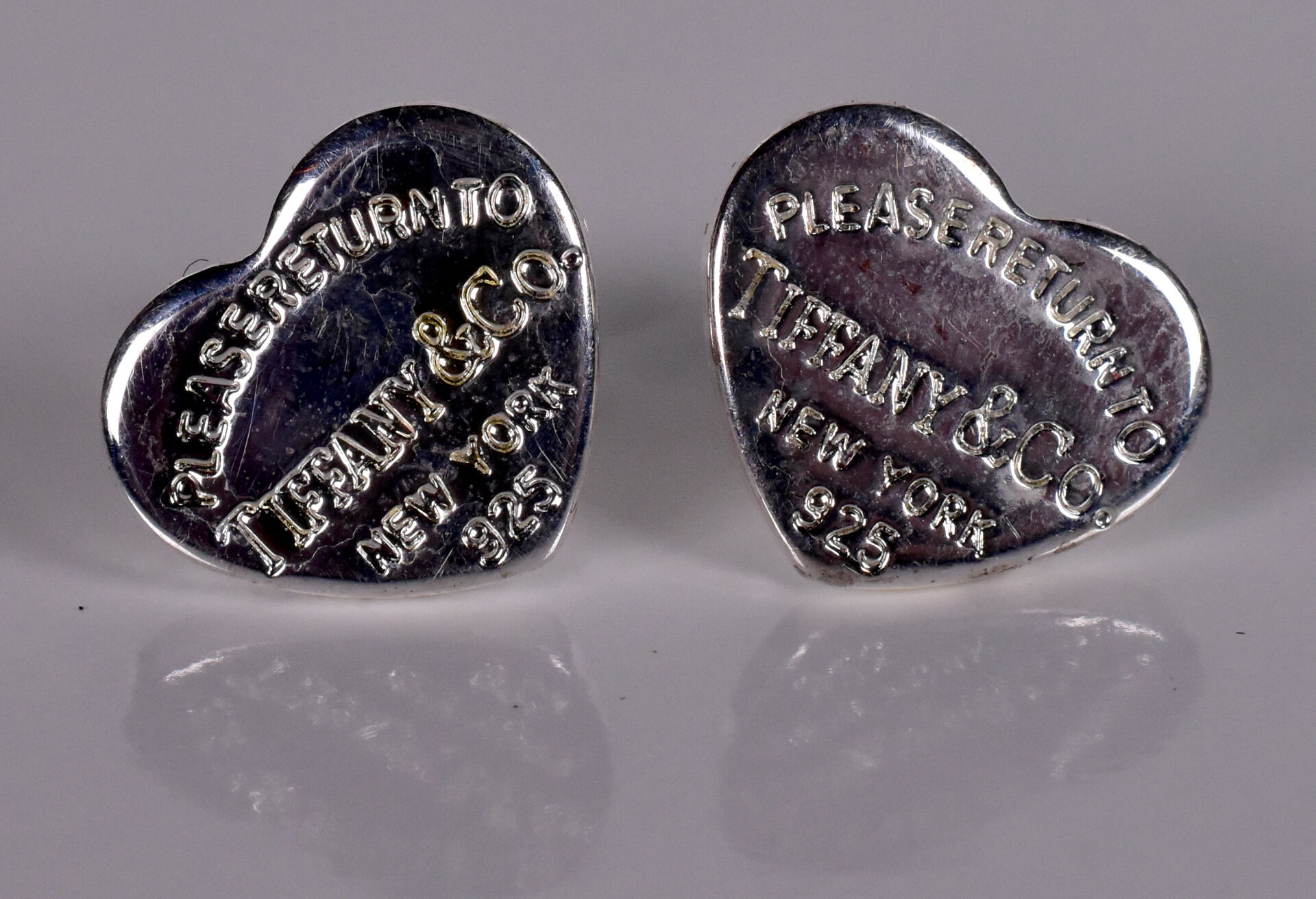TIFFANY & CO. Deux paires de boucles d’oreilles forme coeur, gravées sur le dessus en argent 925/1000e. Poids brut. : 5,2 g.
