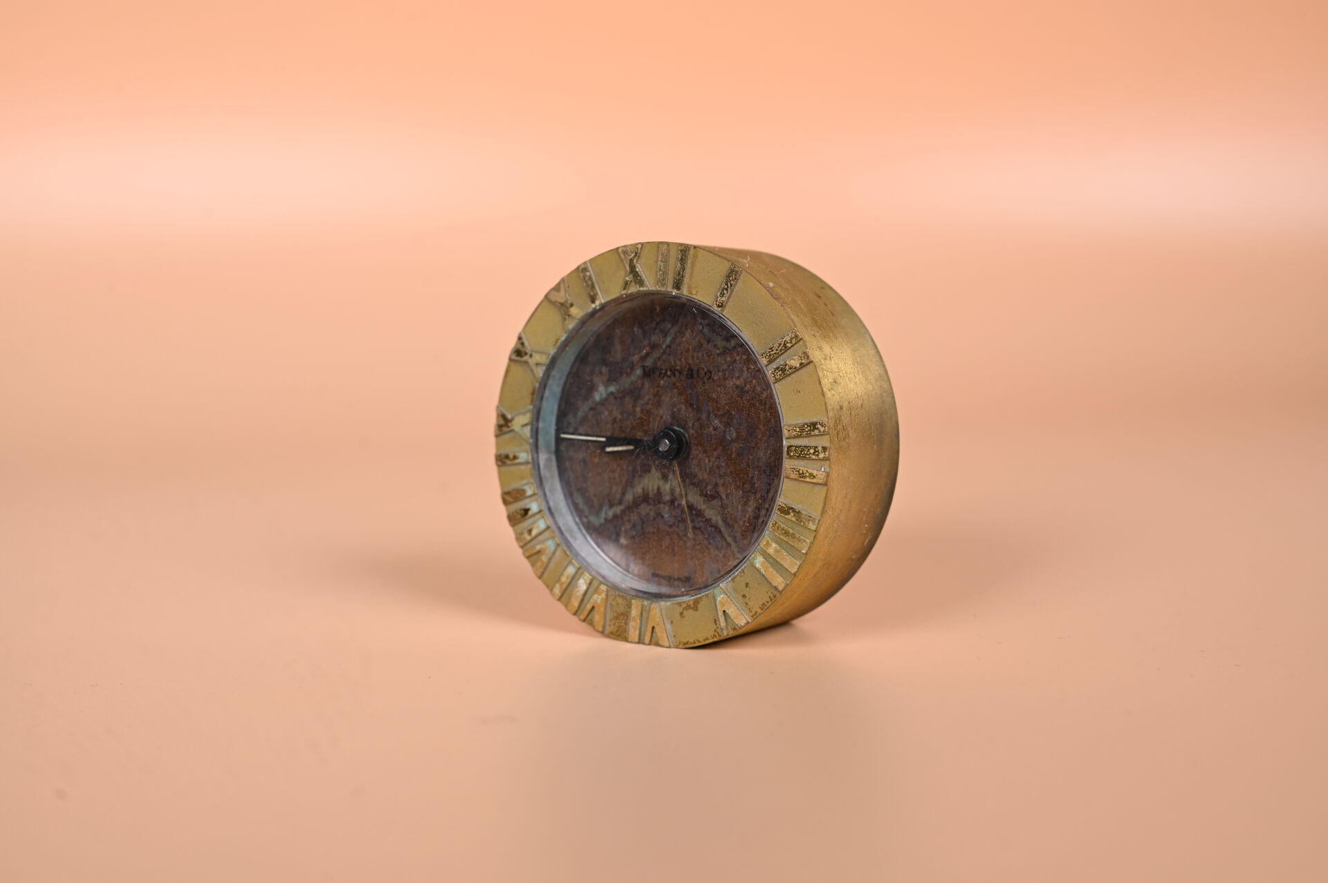 TIFFANY&CO. Réveil en métal à cadran signé. Haut. : 6,4 cm.