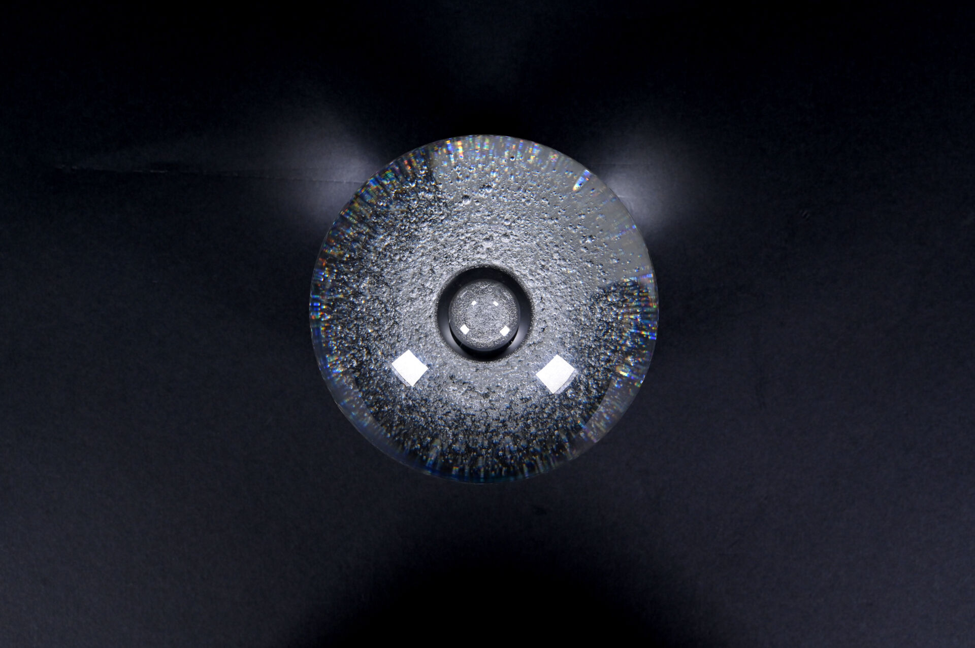 Timo SARPANEVA (1926-2006). Boule en verre bullé. Signée au dessous, datée 198?. Haut. : 10 cm.