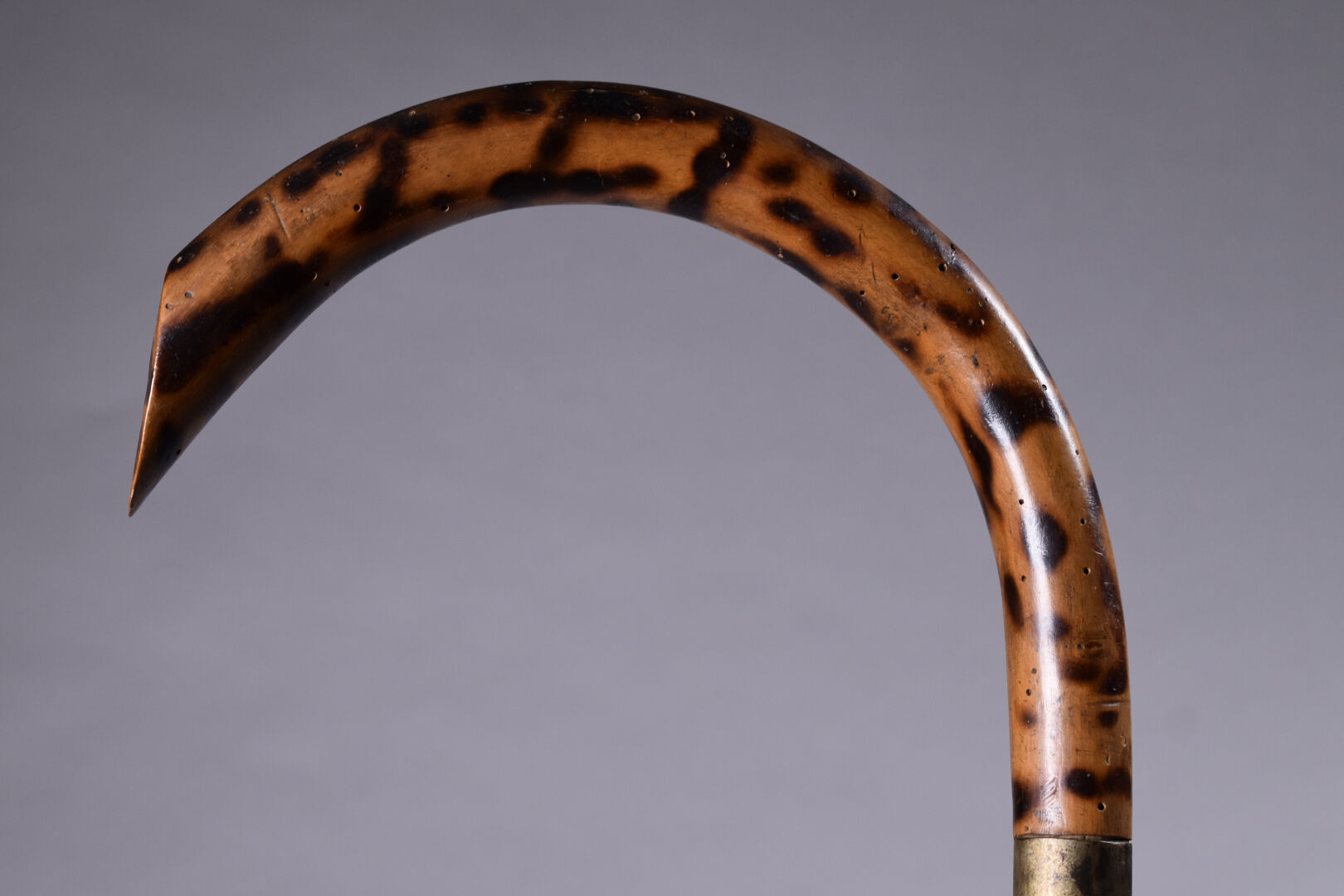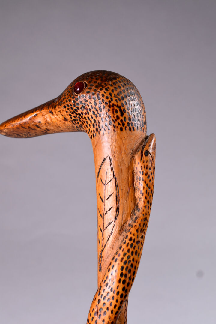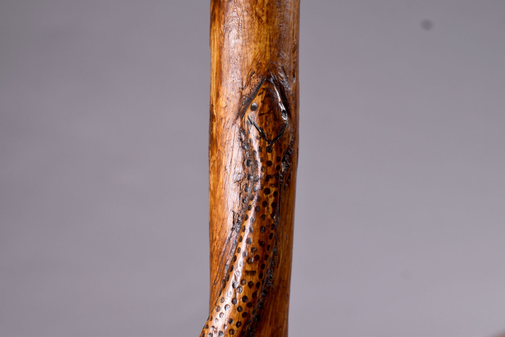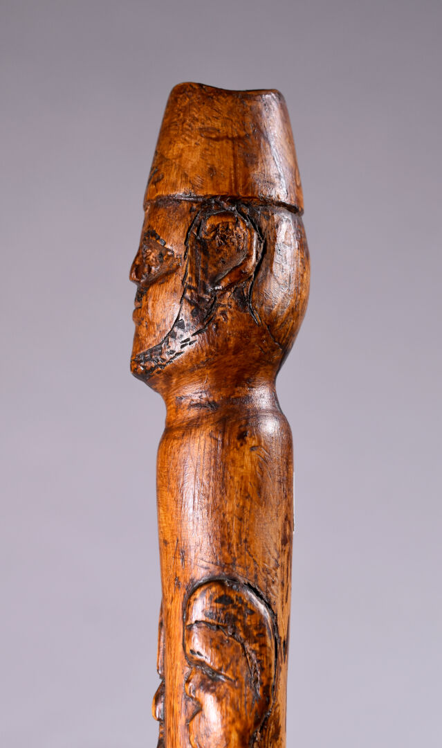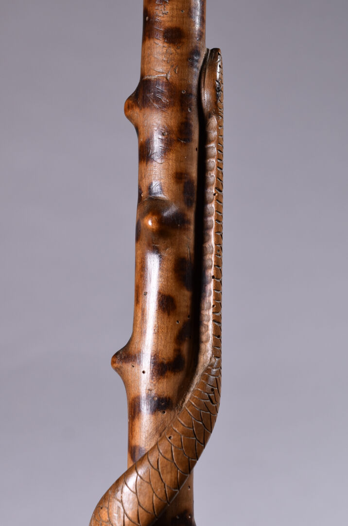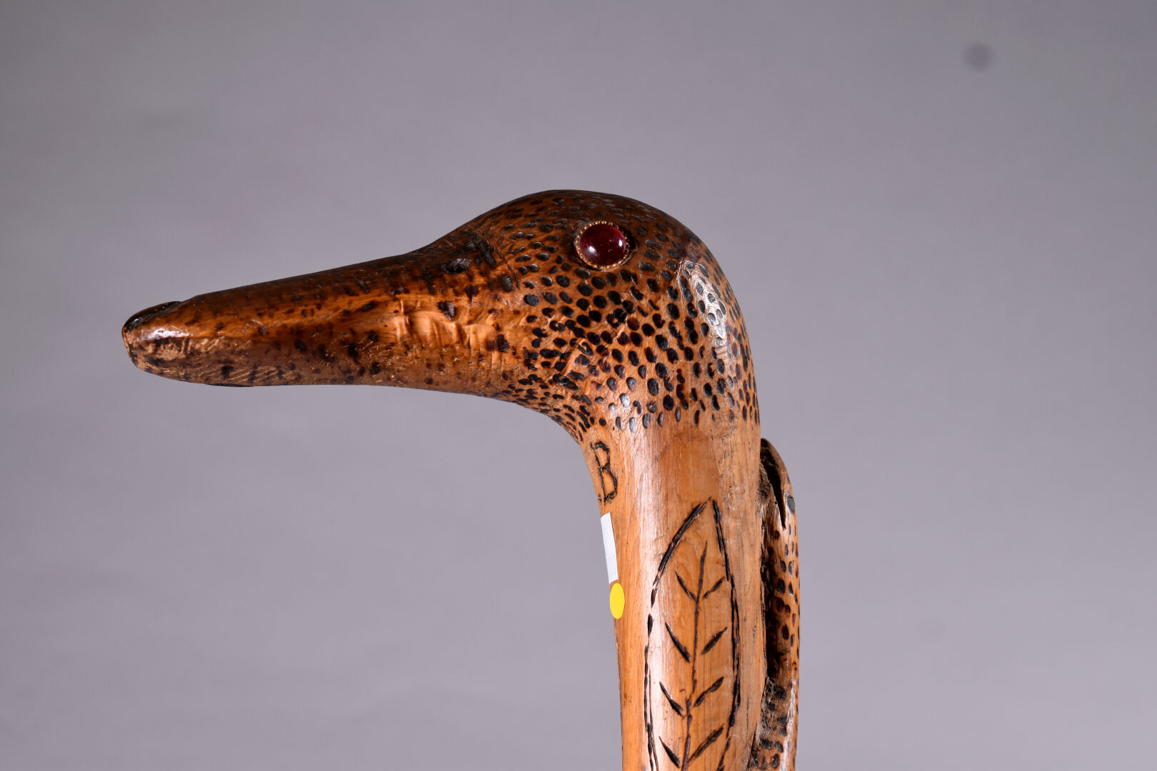 Trois cannes de poilu, une à tête de cane, les yeux en verre appliqués, une à tête de tirailleur sculpté et la dernière à décor d’un serpent. Long. : 89 cm – 98 cm – 95,5 cm.