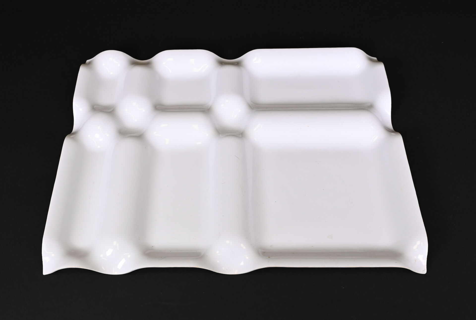 Trois plateaux repas en plastique thermo-moulé crème. Travail des années 1970. 39,5 x 49 cm.