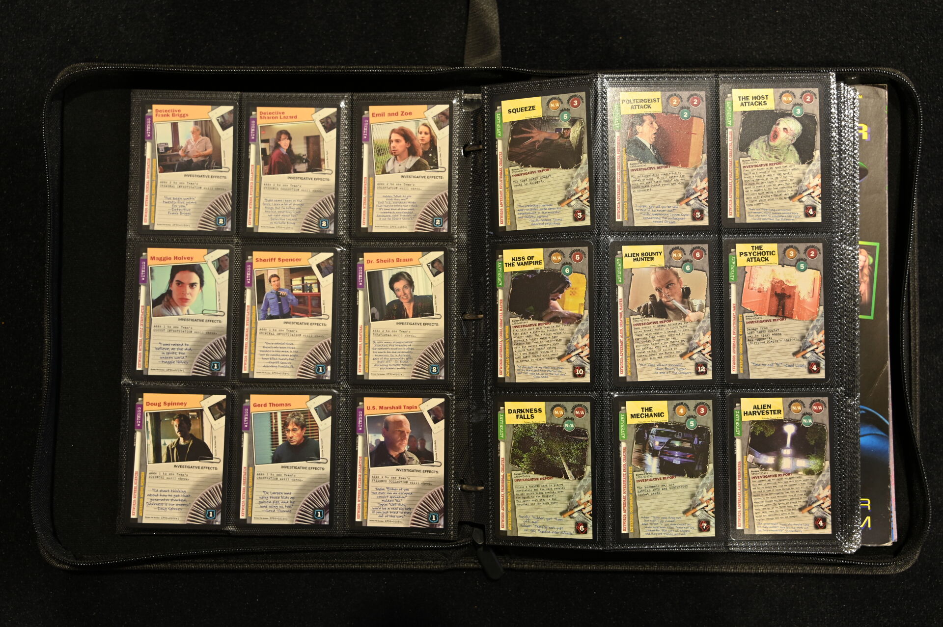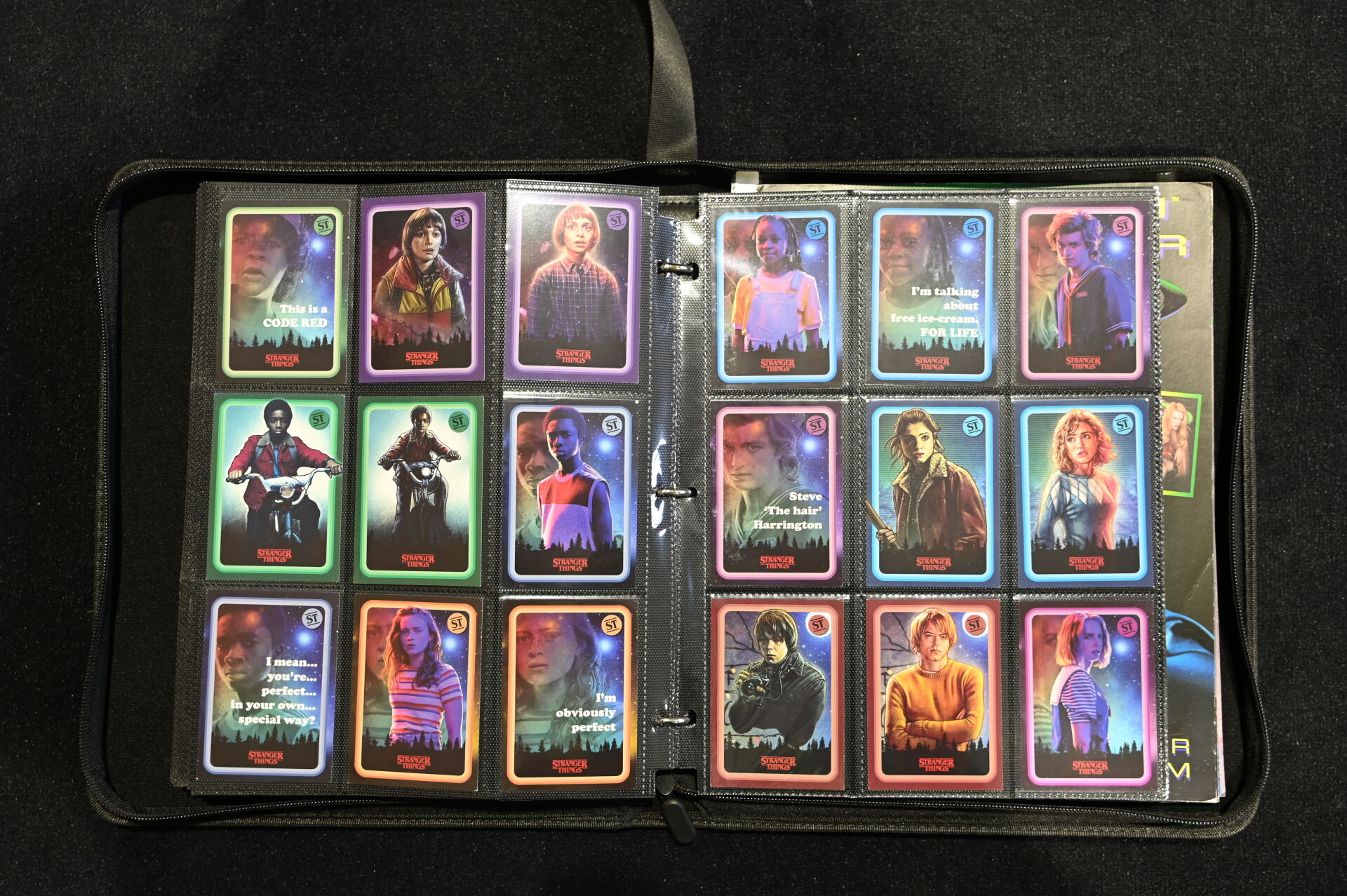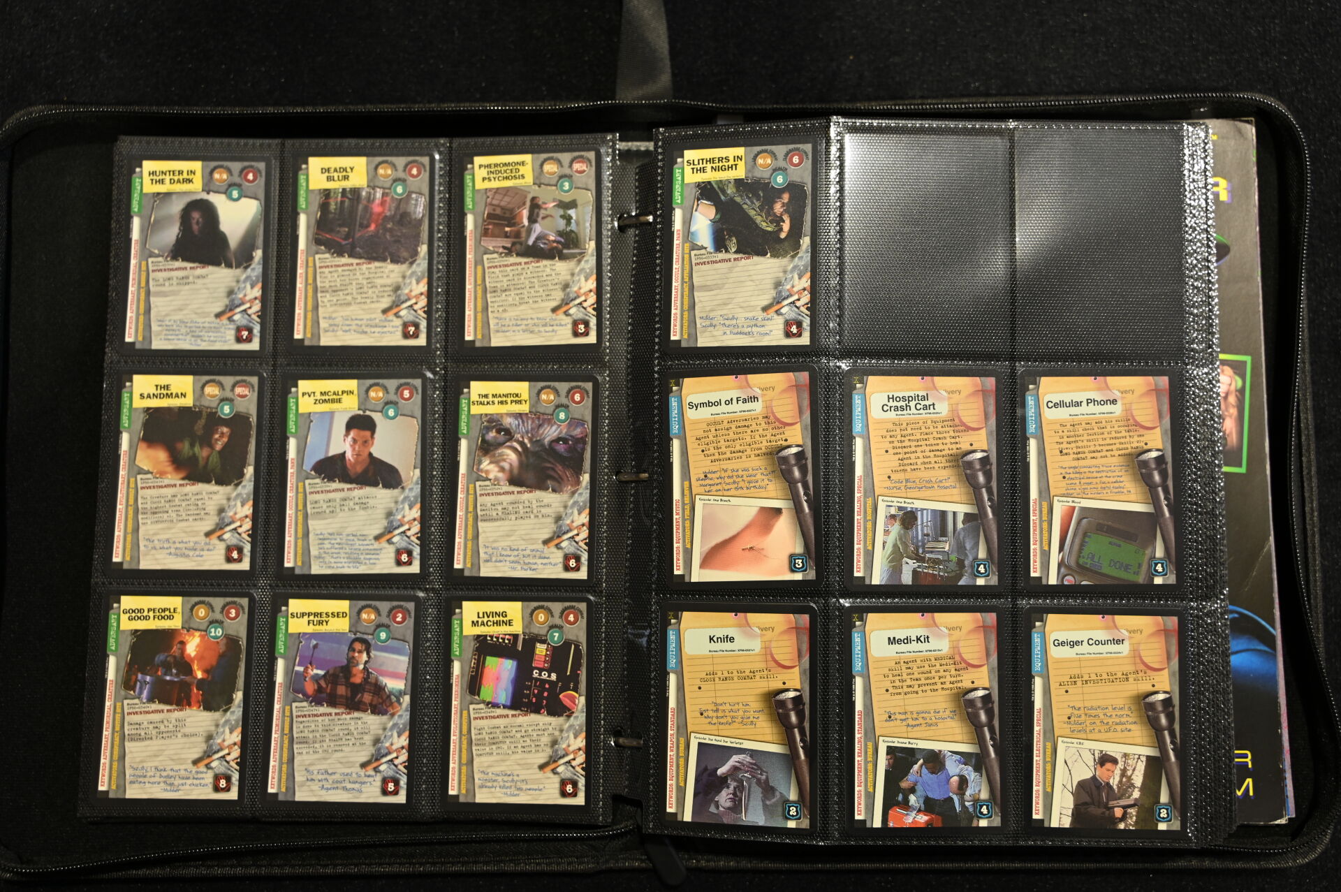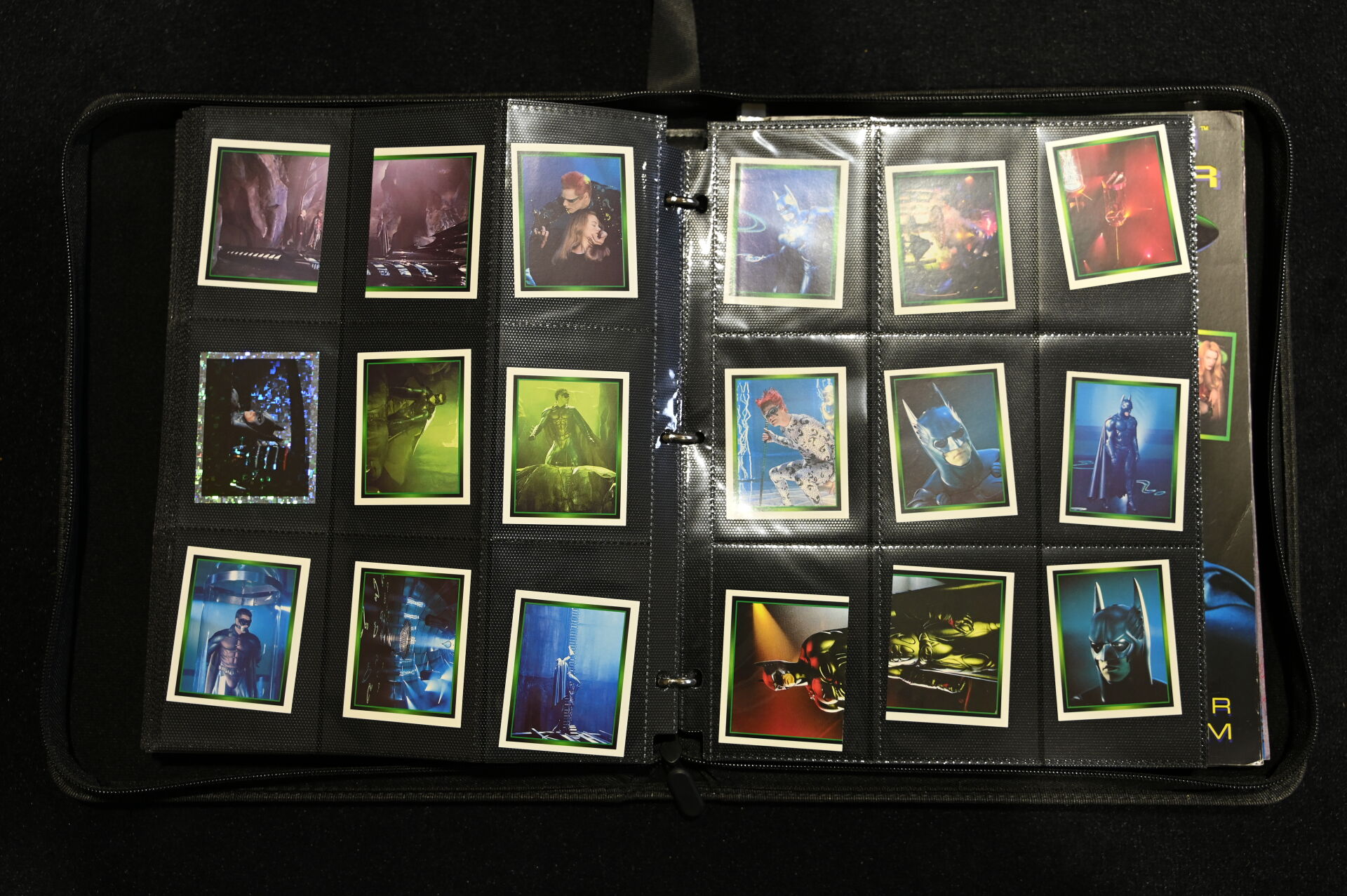 Un album comprenant des cartes et vignettes des univers X-FILES (USPC GAMES NXT 1996), STRANGER THINGS (PANINI) et BATMAN (MERLIN COLLECTIONS 1995, dont un paquet non ouvert), BATMAN PANINI.