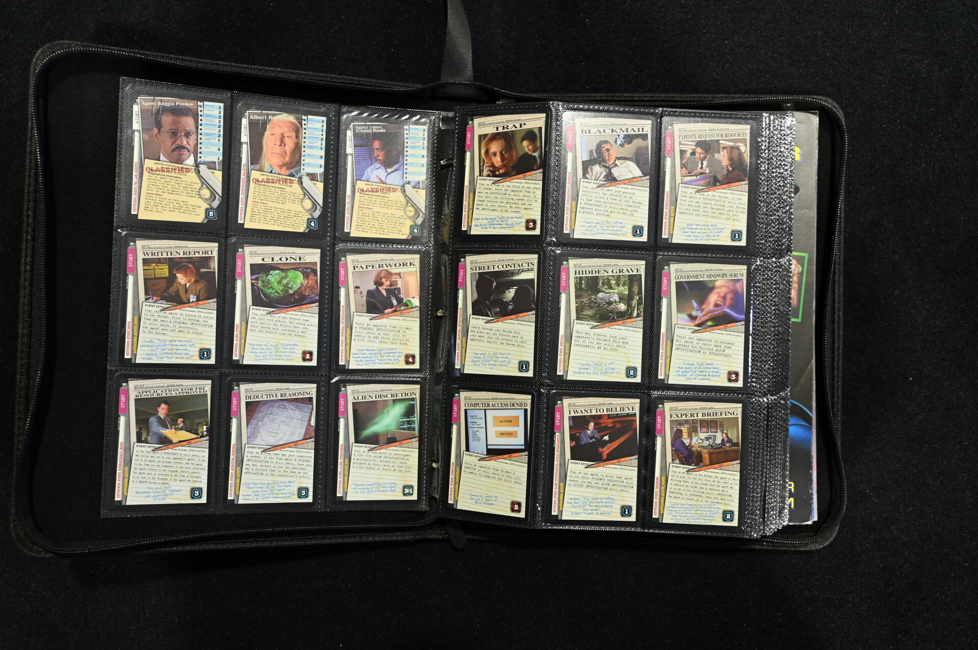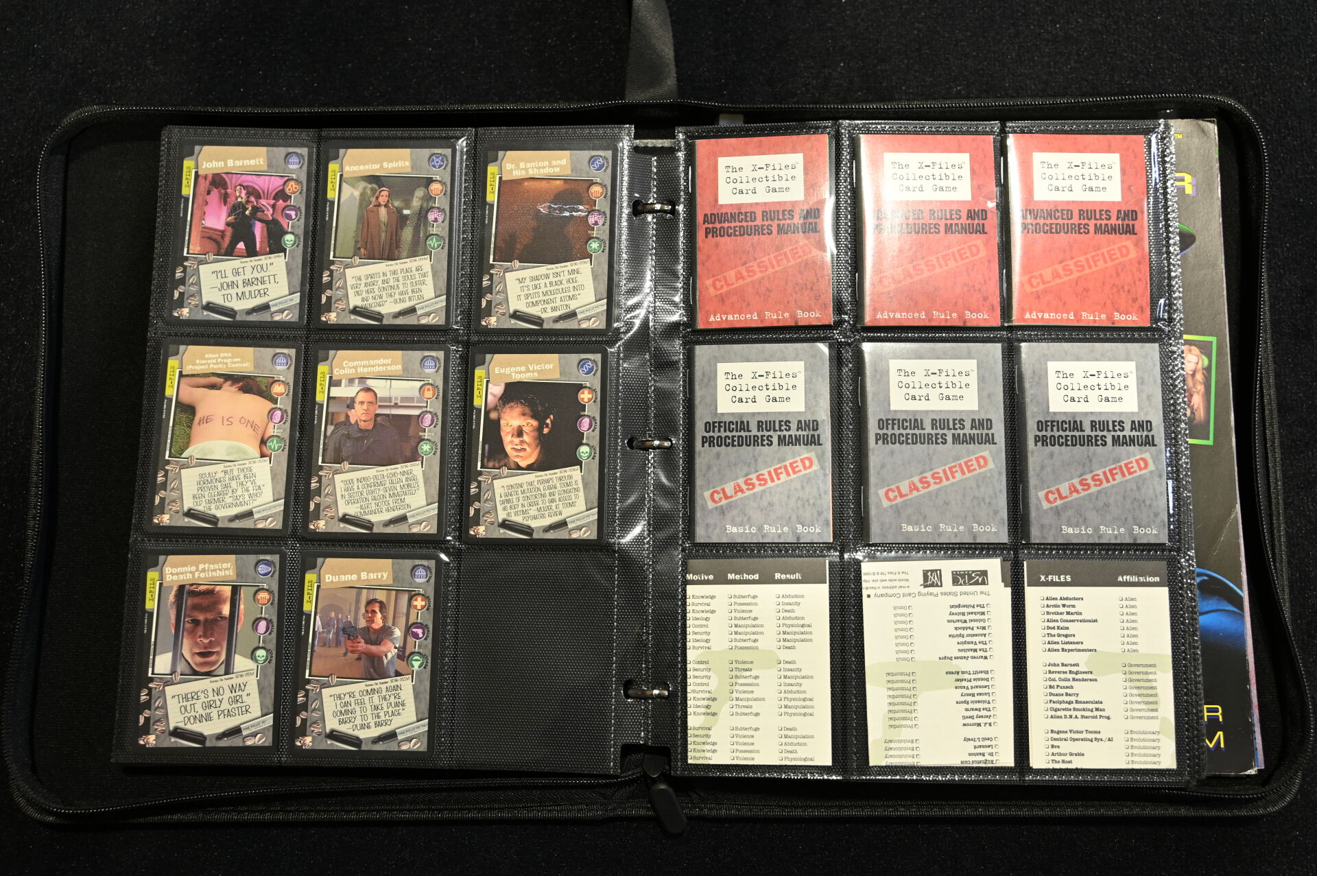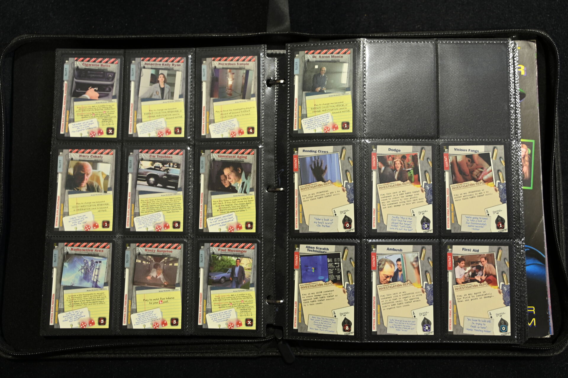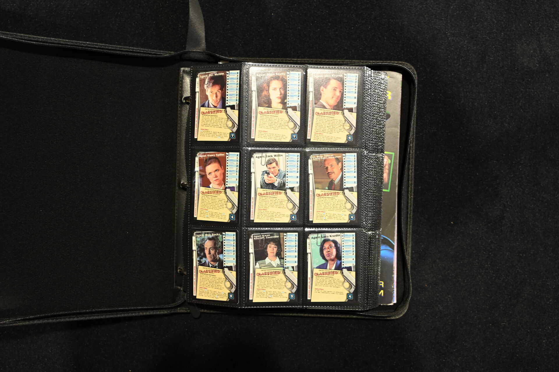 Un album comprenant des cartes et vignettes des univers X-FILES (USPC GAMES NXT 1996), STRANGER THINGS (PANINI) et BATMAN (MERLIN COLLECTIONS 1995, dont un paquet non ouvert), BATMAN PANINI.