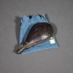Une bouteille de liqueur James b beam représentant un casque de G.I avec des rangers (usures). 1975. On joint une poire à poudre.