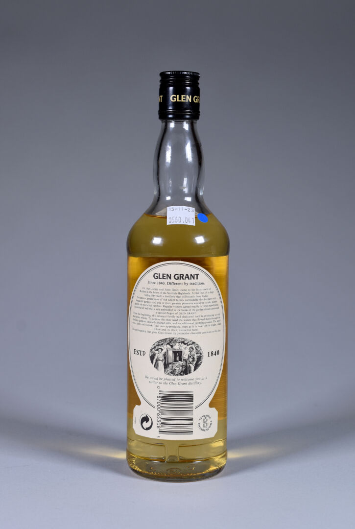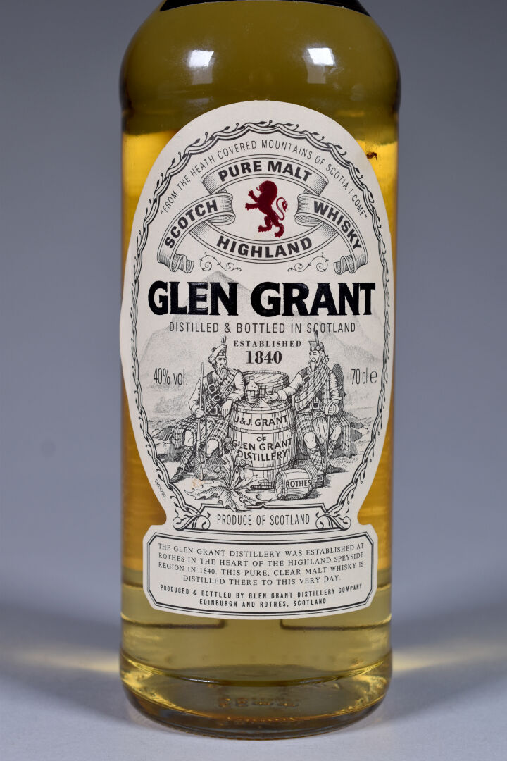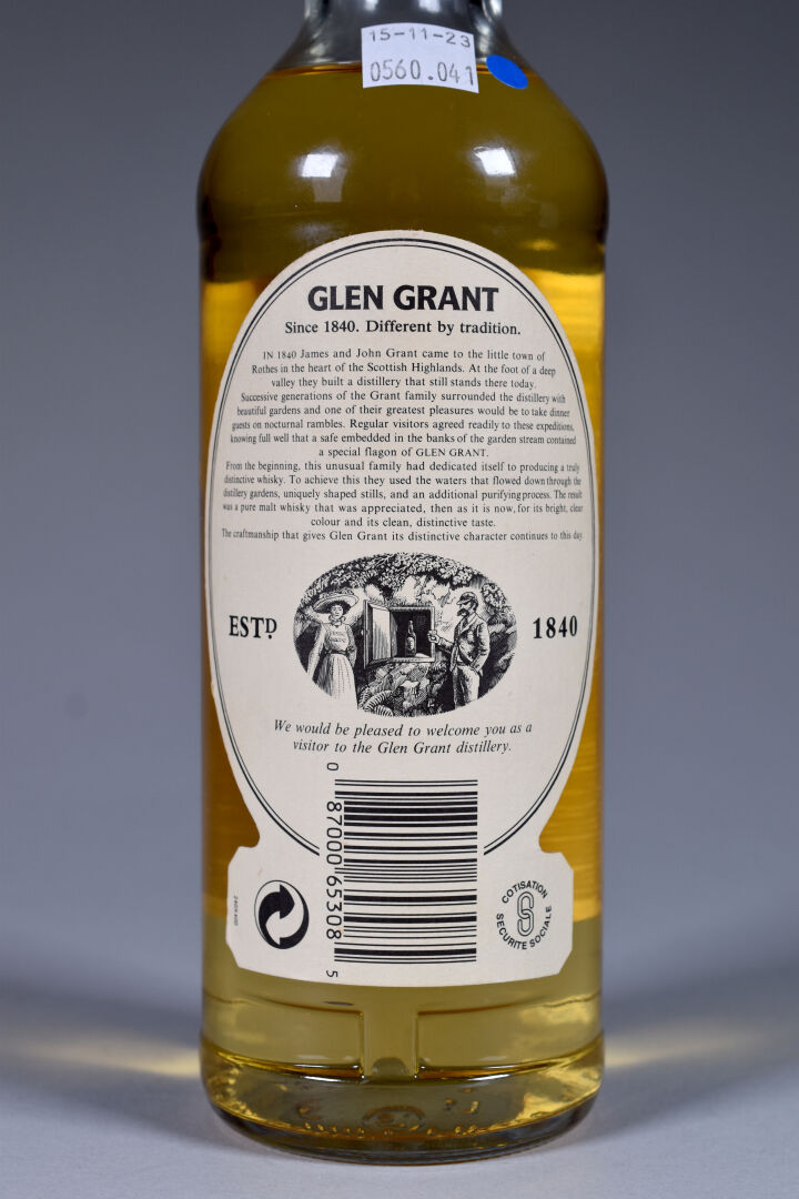 Une bouteille de whisky GLEN GRANT (niveau moyen). Non millésimée.