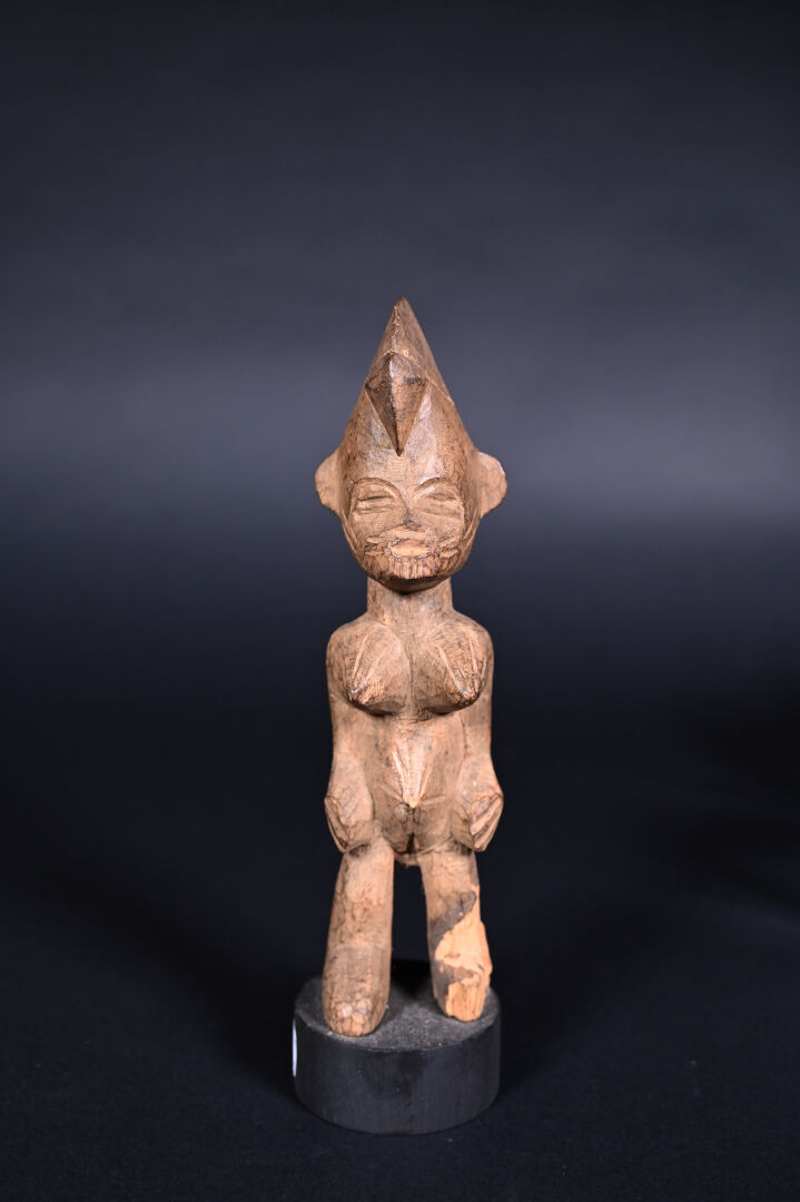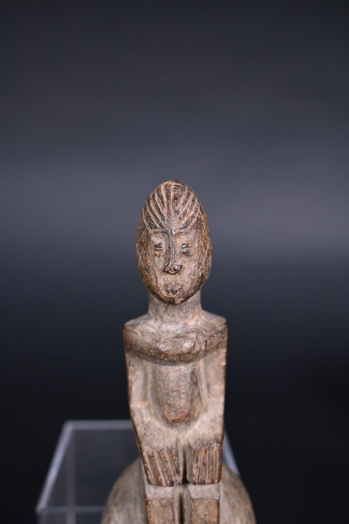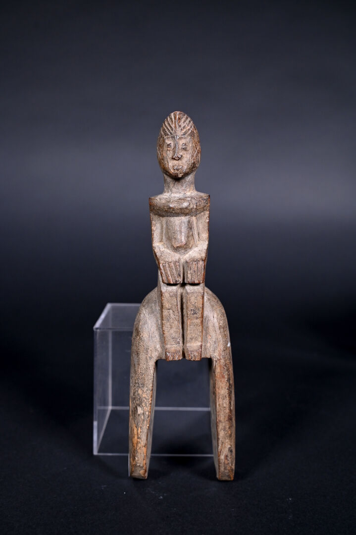 Une poulie Dogon (Mali) et une statuette Sénoufo (Côte d’Ivoire). Travail moderne. Haut. : 25,5 cm et 23 cm.