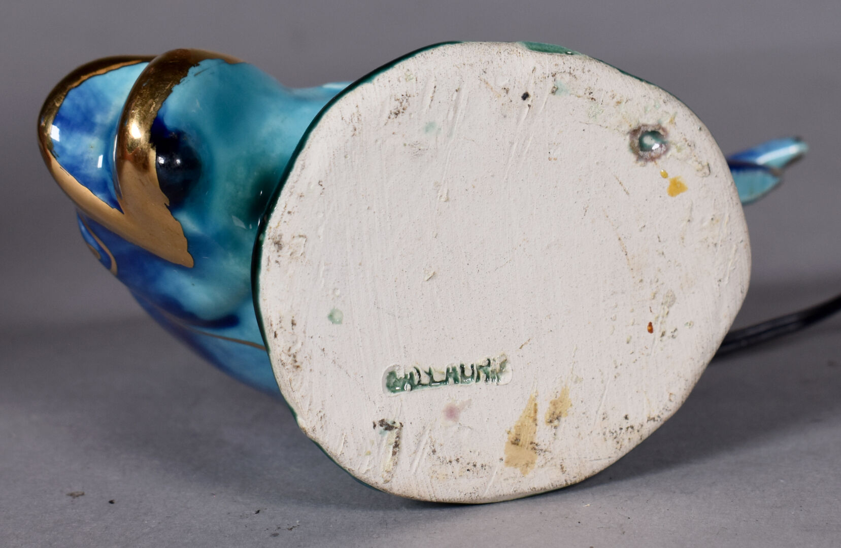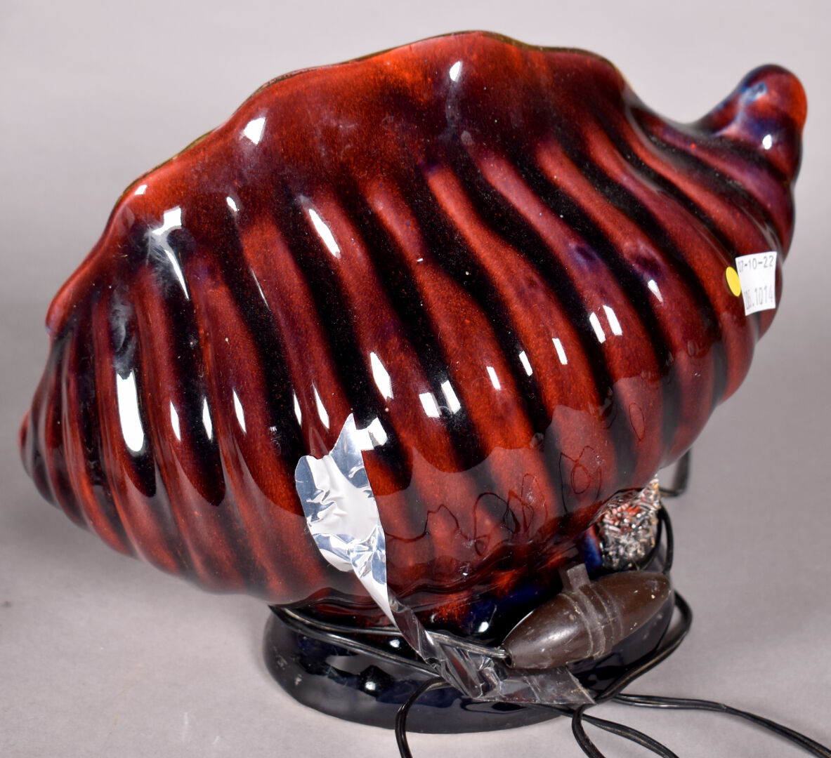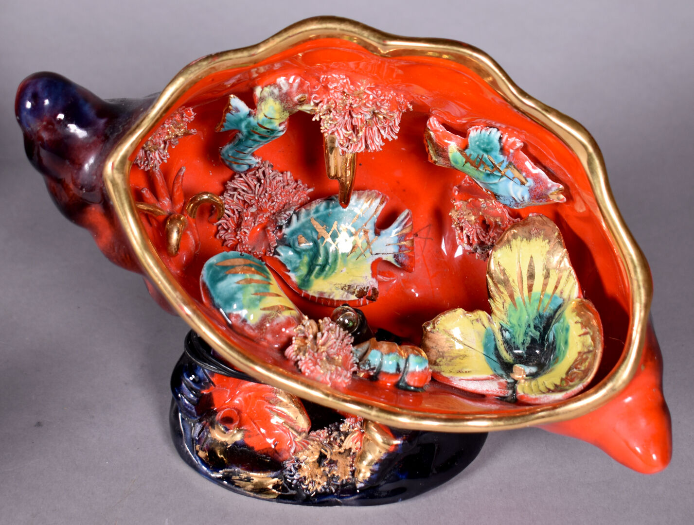 VALLAURIS. Ensemble de 4 lampes (une sans l’électricité) à décor de poissons et fonds marins dans des coquillages pour 3 et d’un chamois dans un paysage de neige. Vers 1950/1960. Haut. de l’étoile : 21 cm – Larg. : 26 cm.