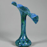 Vase à haut col en corolle en verre marmoréen vert et bleu. XXe siècle. Haut. : 26 cm.