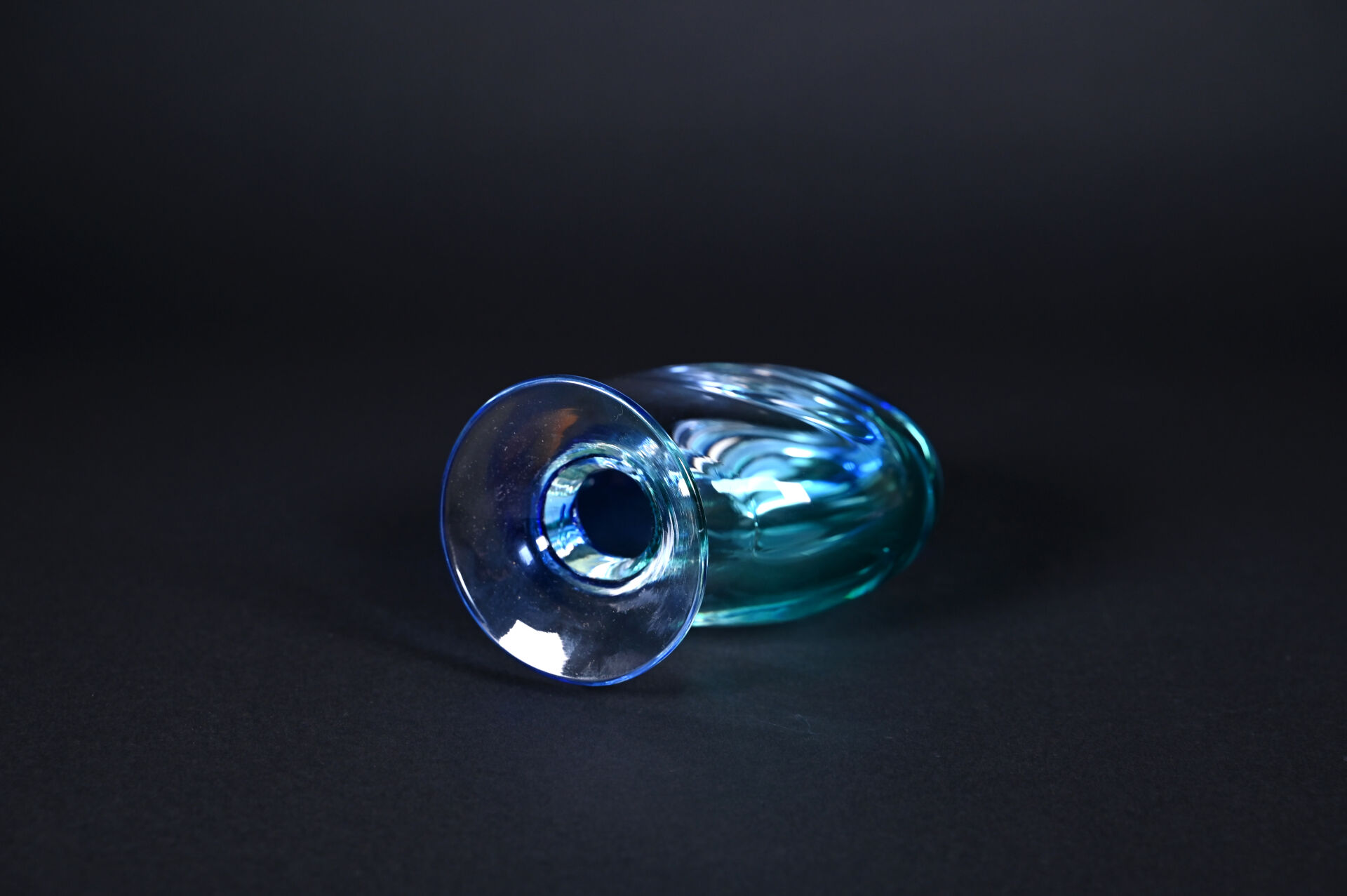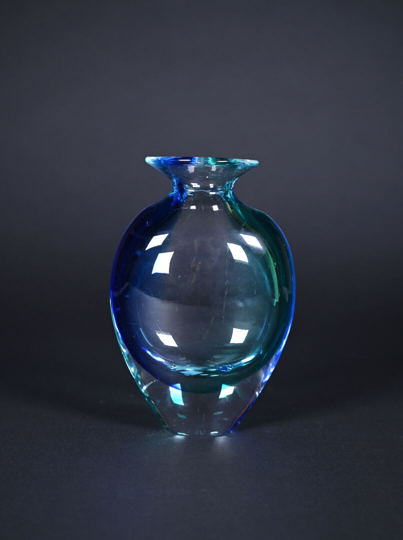 Vase balustre sommerso en verre turquoise, bleu roi et clair. Dans le goût de Murano. Haut. : 18,5 cm.