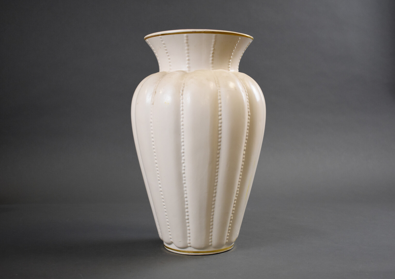 Vase bulbe en céramique émaillée creme liseré or. XXe siècle. Haut. : 38 cm.