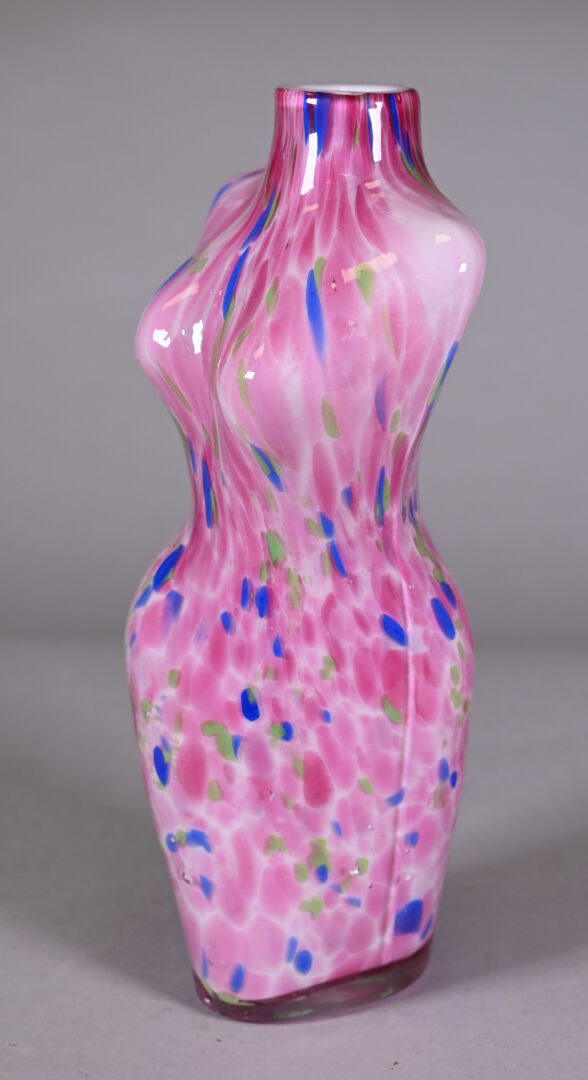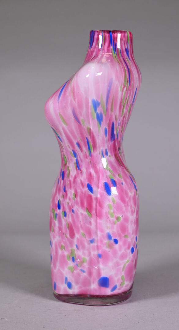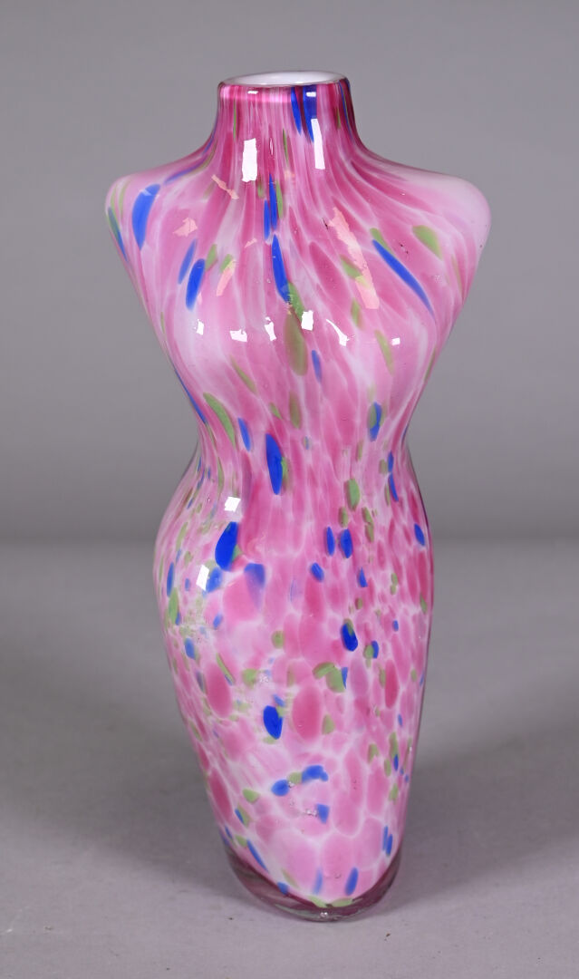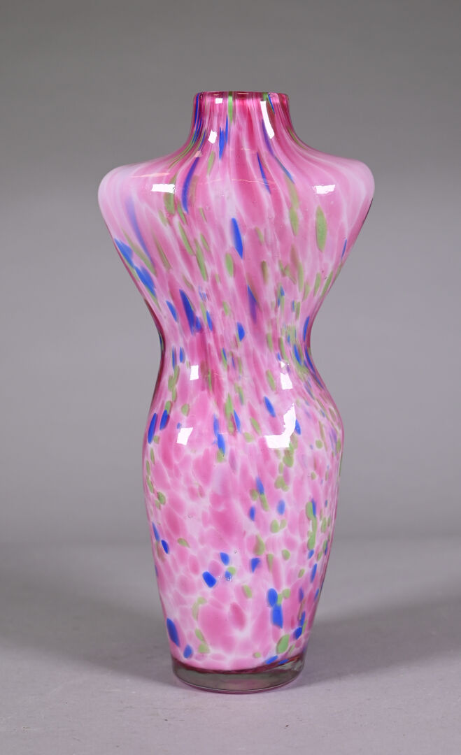 Vase corps féminin en verre marmoréen rose vert et bleu. Vers 1960/1970. Haut. : 34 cm.
