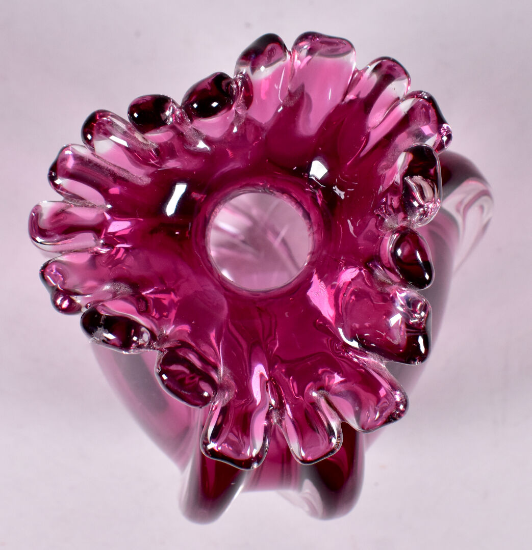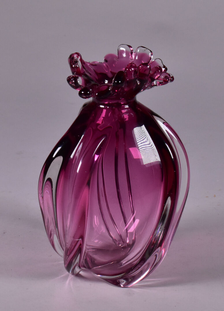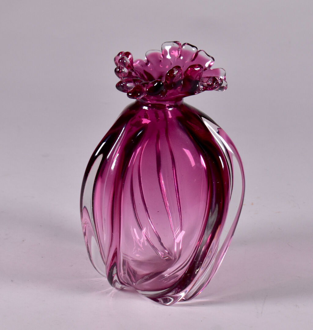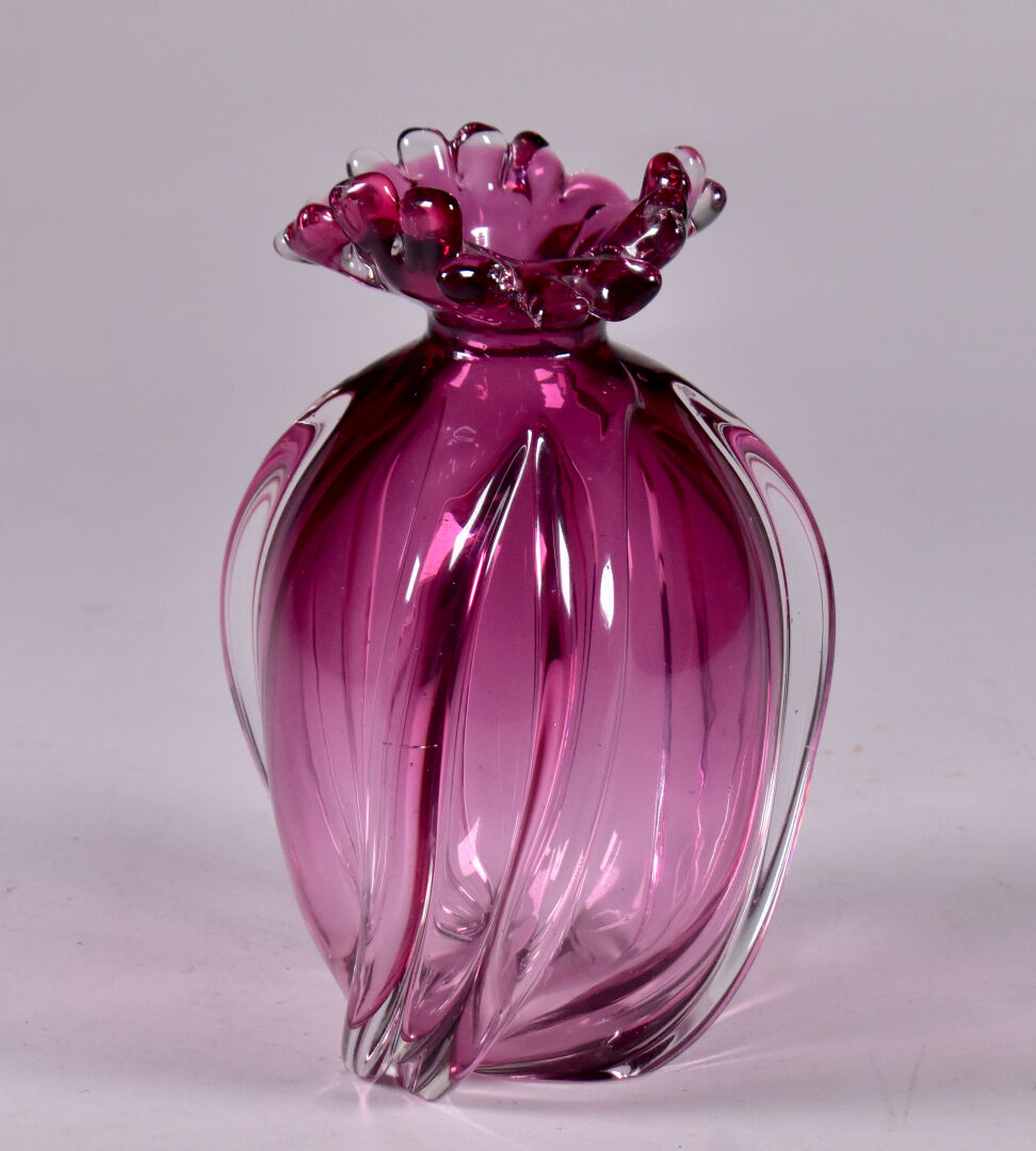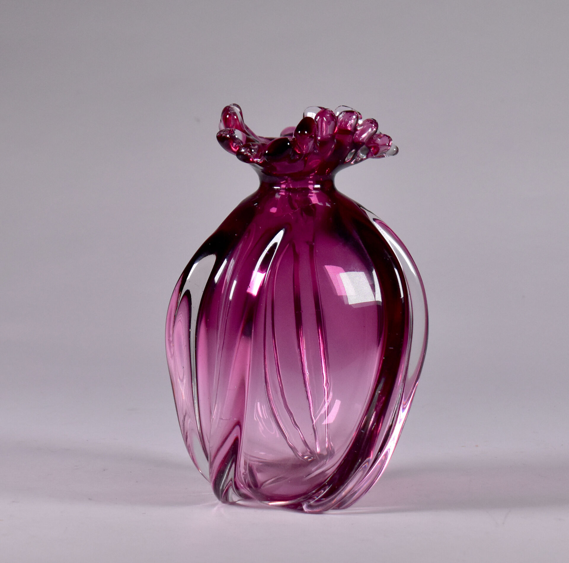 Vase en cristal rose et clair, le col à corole, la panse légèrement torsadée. XXe siècle. Haut. : 21 cm.