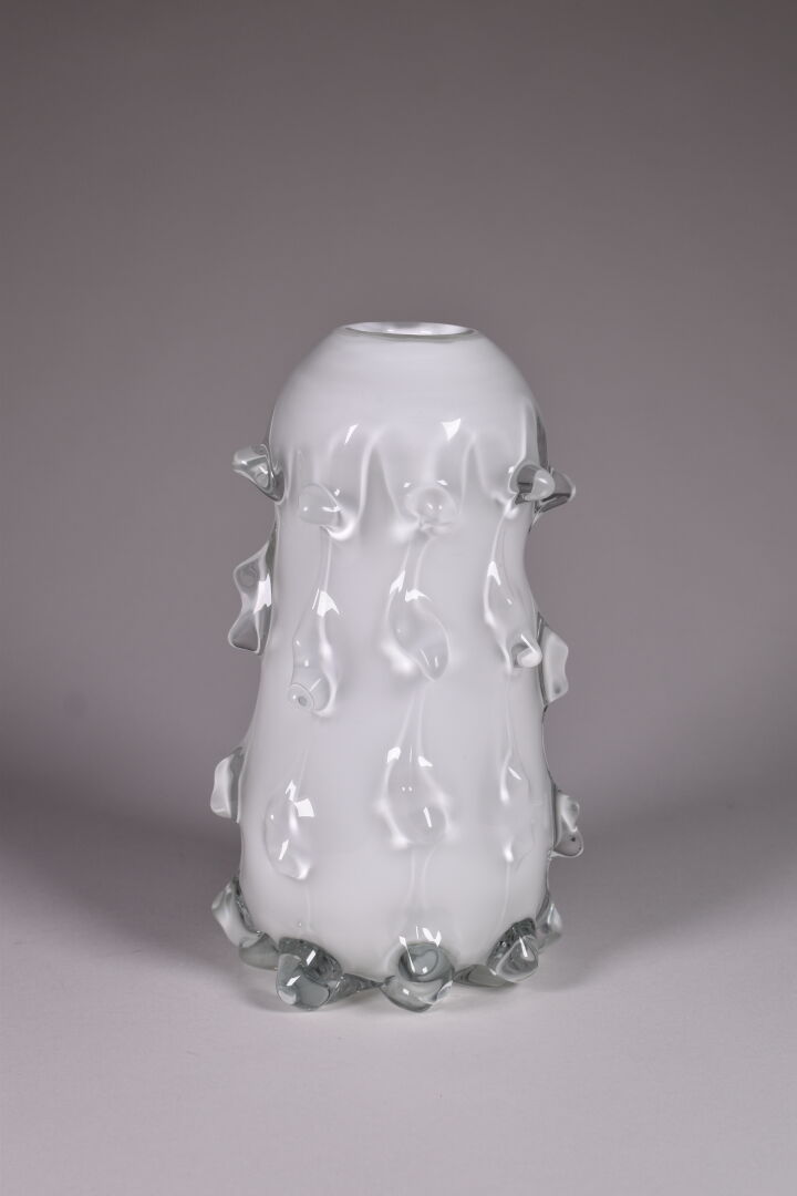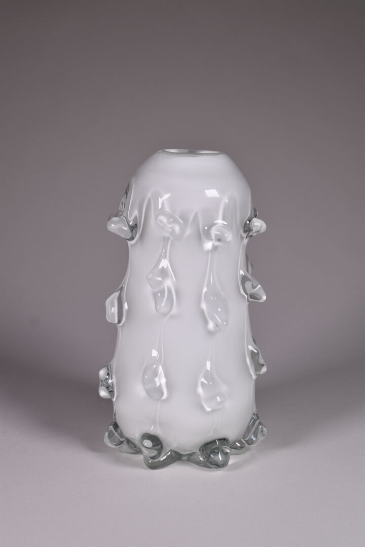 Vase en verre blanc à décor de pointes. Travail scandinave, vers 1960. Haut. : 25 cm.