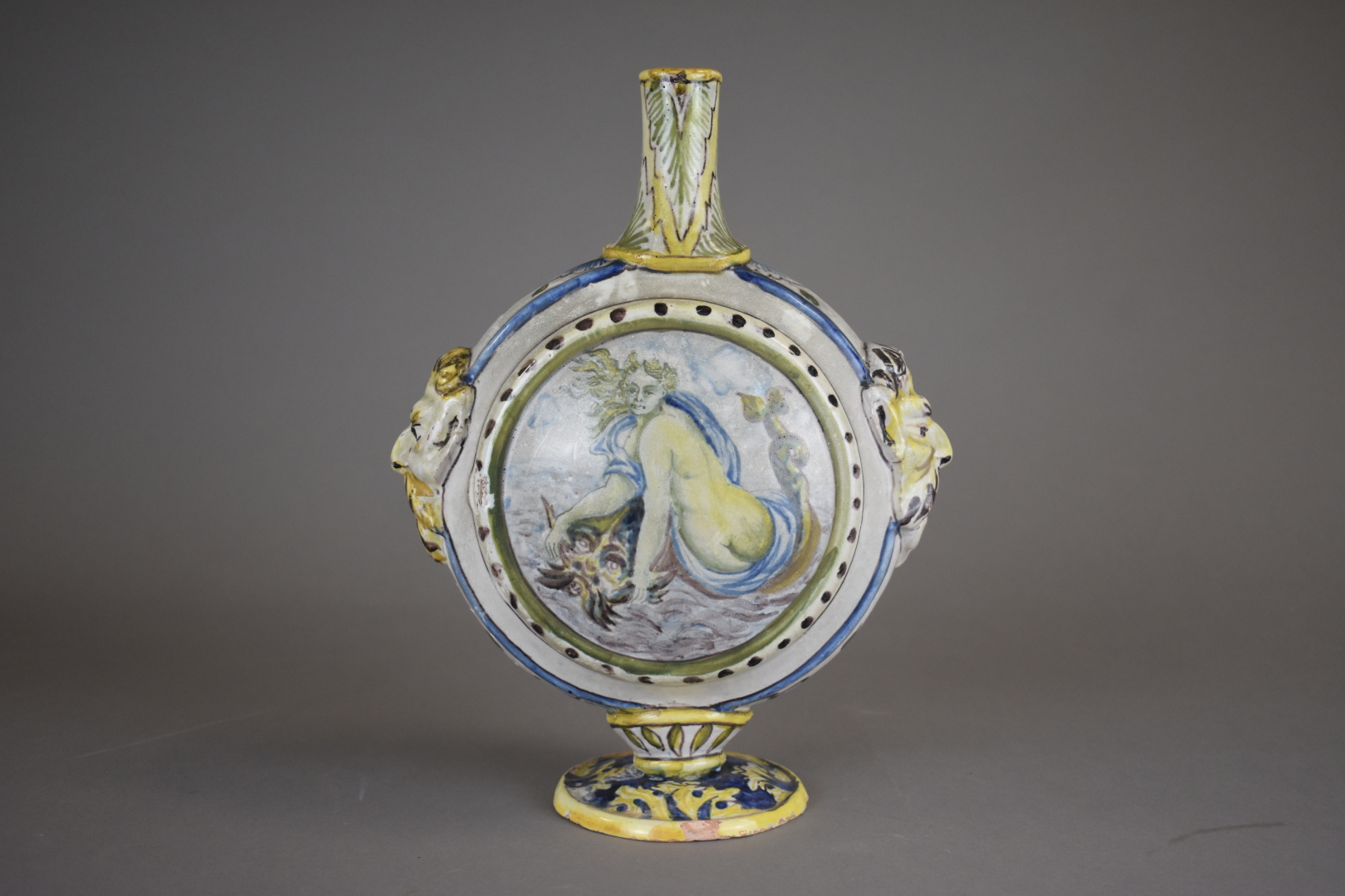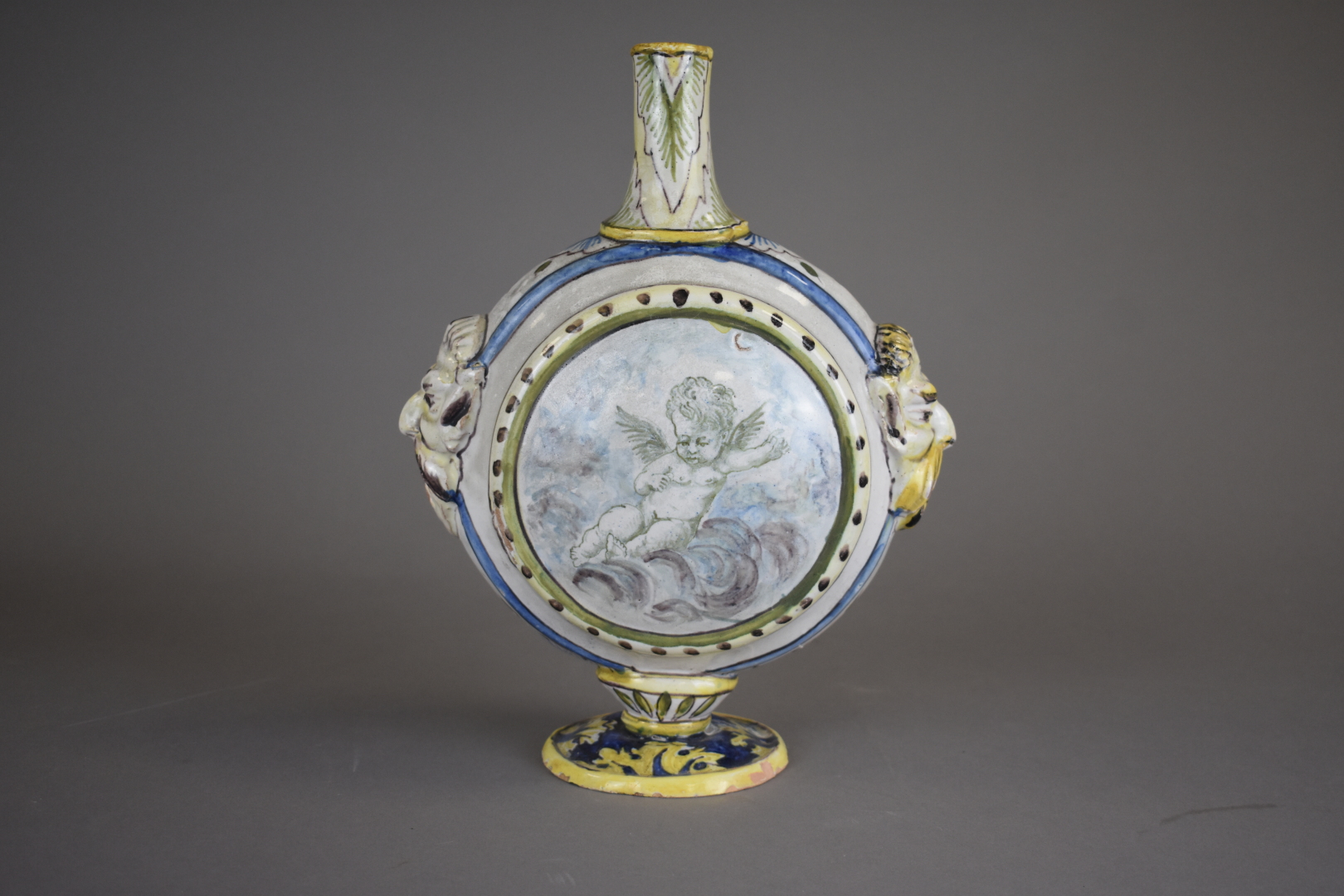 Vase gourde à panse applatie en faïence italienne. Dans le goût du XVe siècle. Haut. : 30 cm.