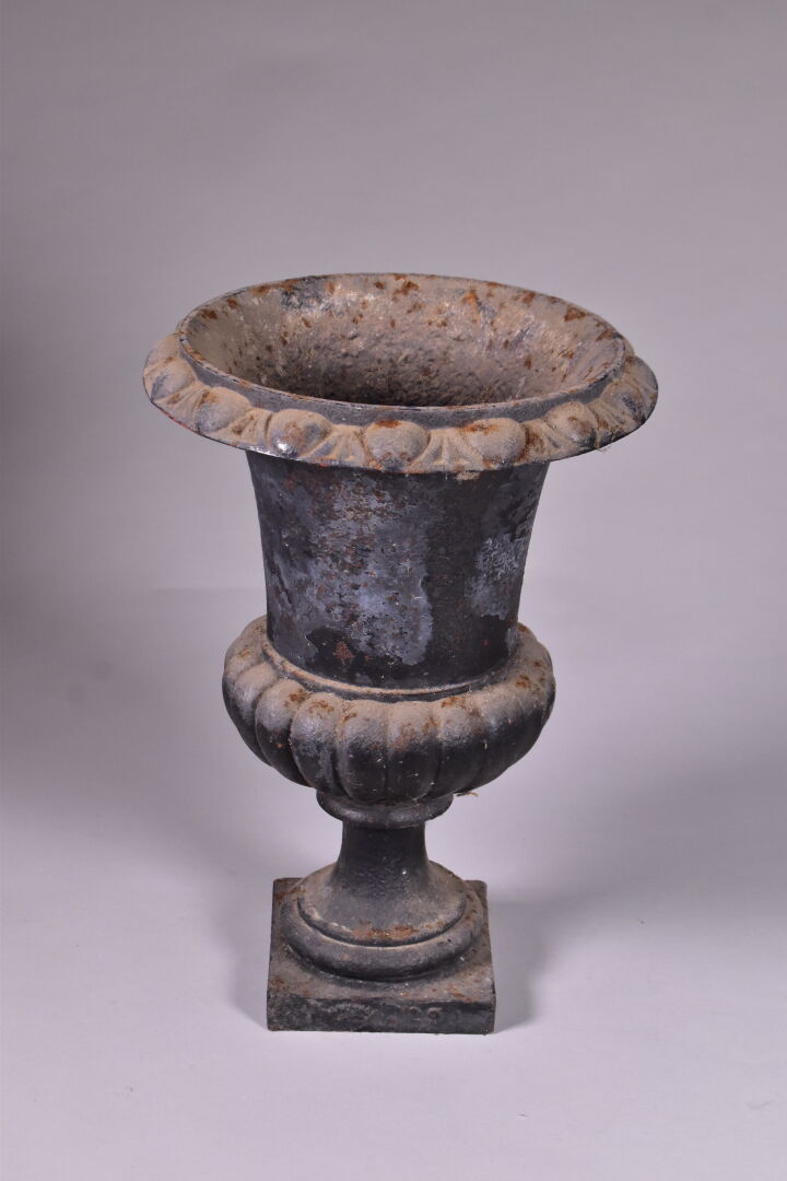Vase médicis en fonte (piqures et rouille). Haut. : 40,5 cm.