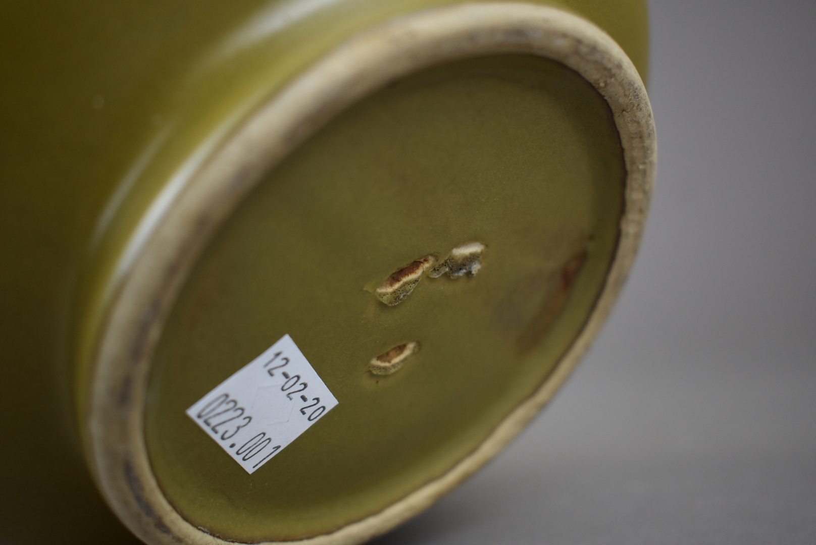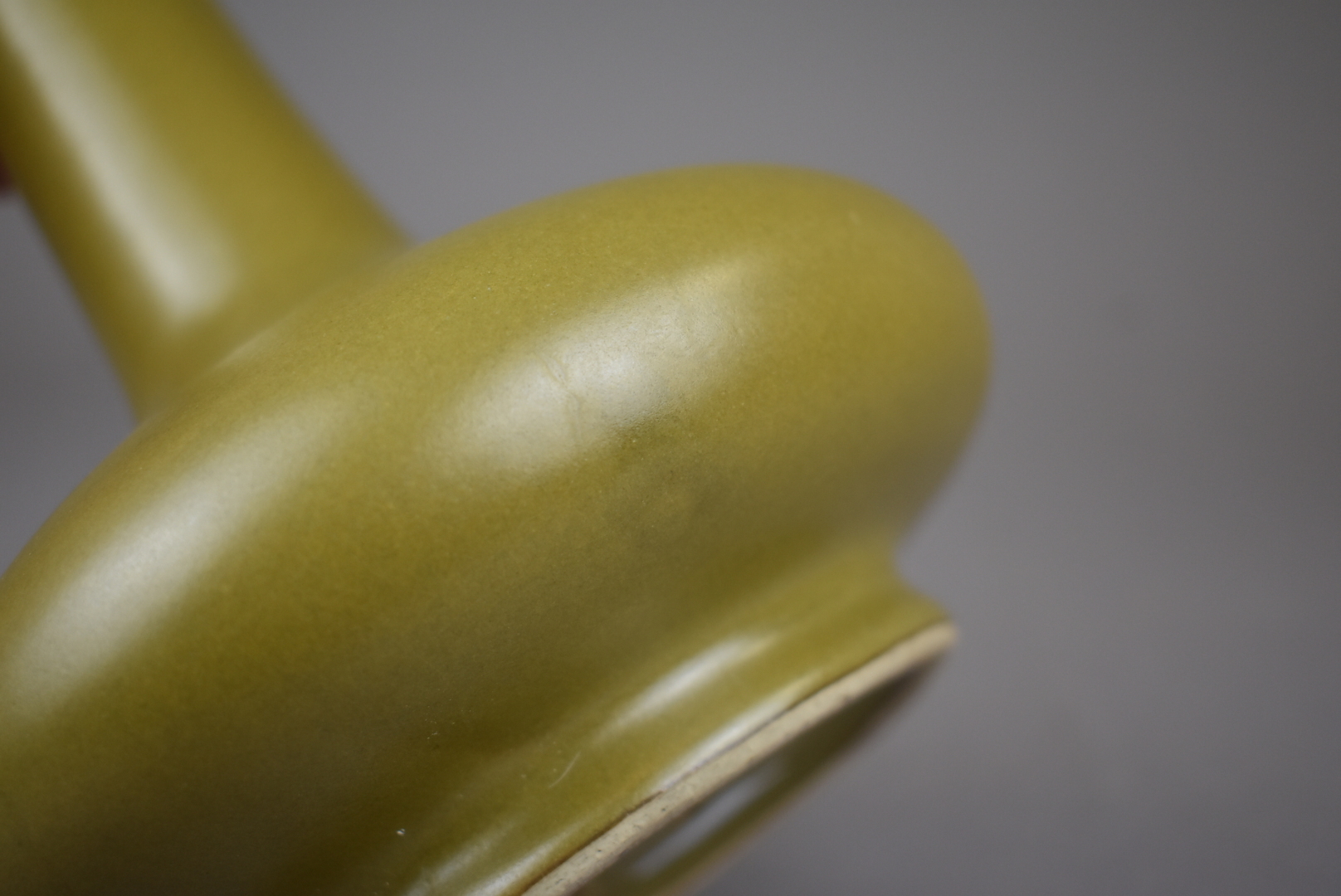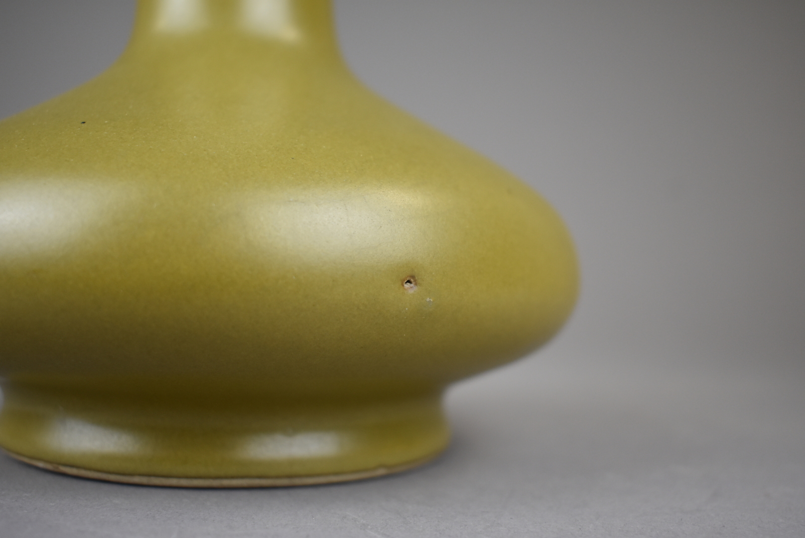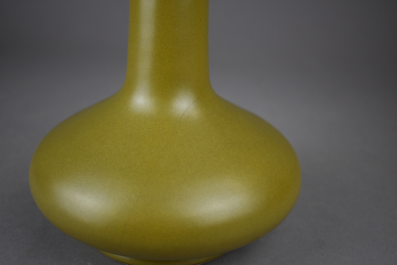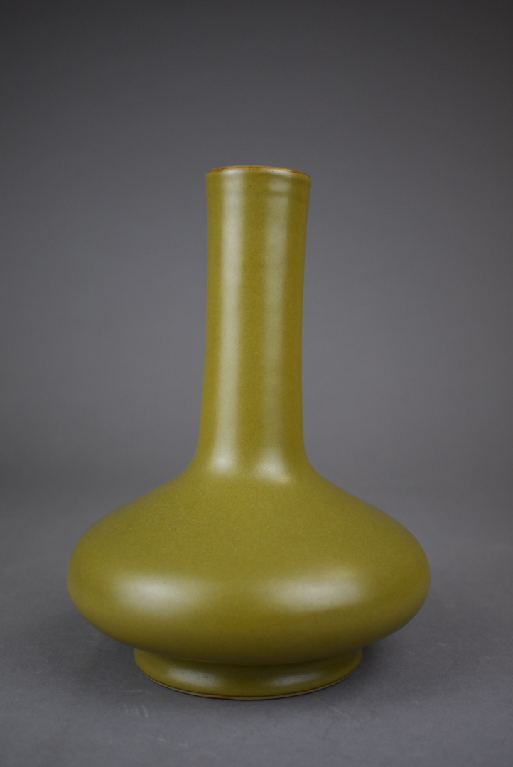 Vase pansu à long col en porcelaine et émail dit «?poussière de thé?» (fèle de glaçure). Chine, Guanxu. Haut. : 21 cm.