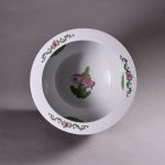 Vasque à poisson en porcelaine à décor de fleurs de lotus et poissons. Chine, XXe siècle. Haut. : 25,5 cm – Diam. : 32 cm.