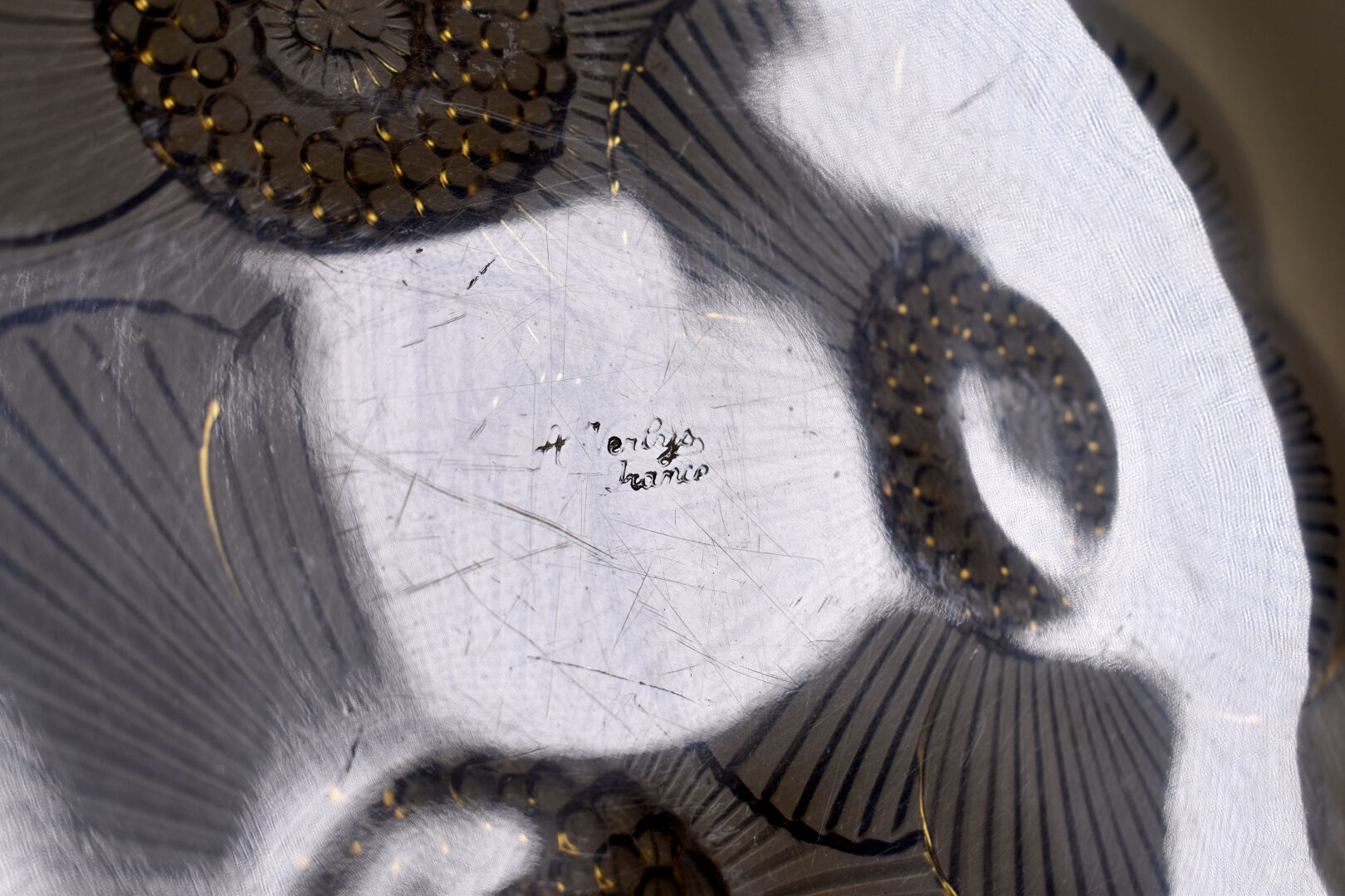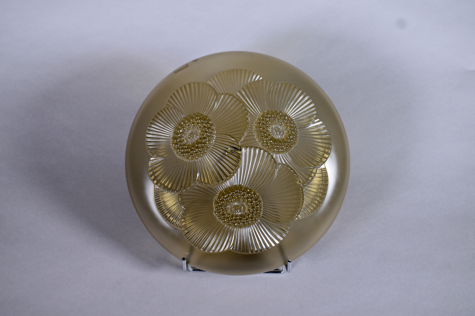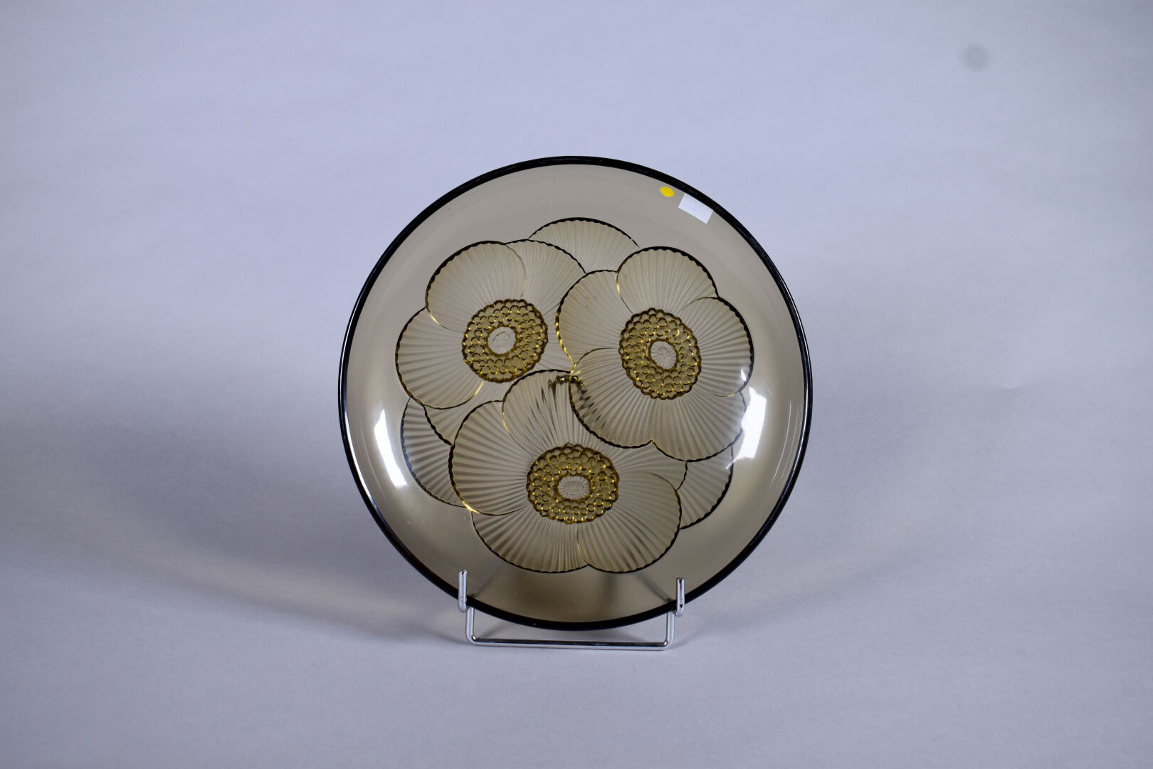 VERLYS FRANCE. Coupe en verre fumé à décor d’anémones. Signée. Diam. : 27,7 cm.