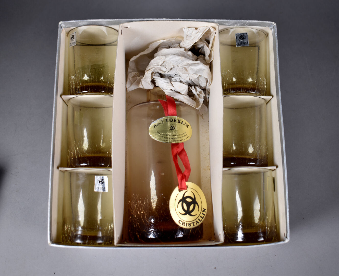 VERRERIES LORRAINES. Services de 6 verres et 1 carafe en cristal. Coffret d’origine.