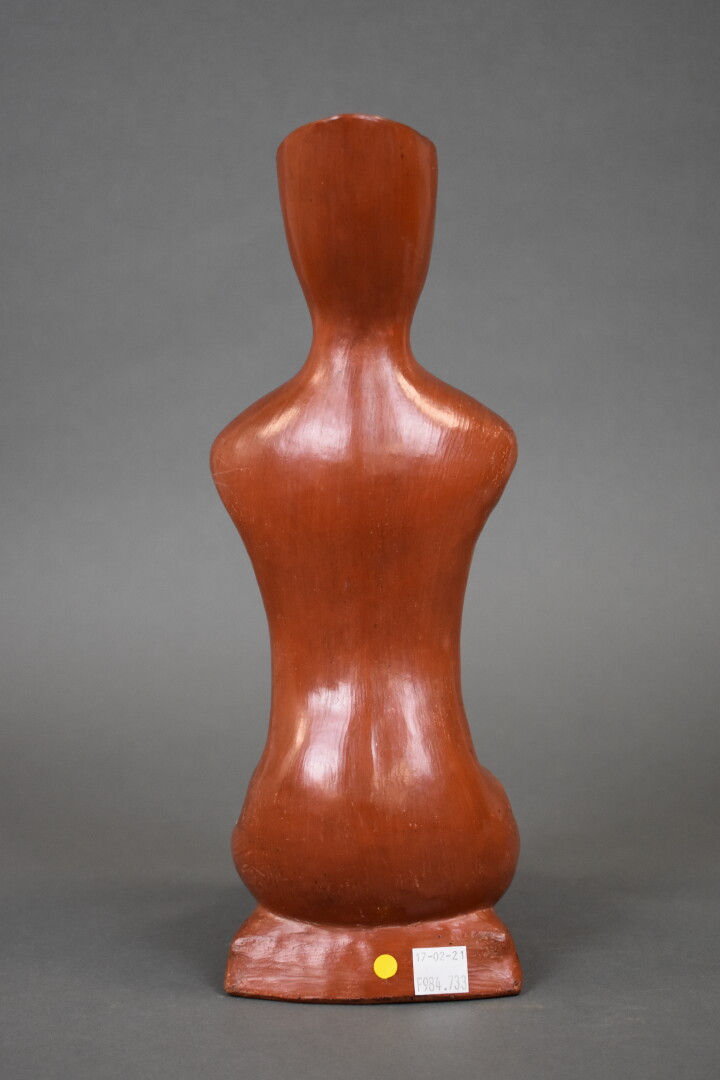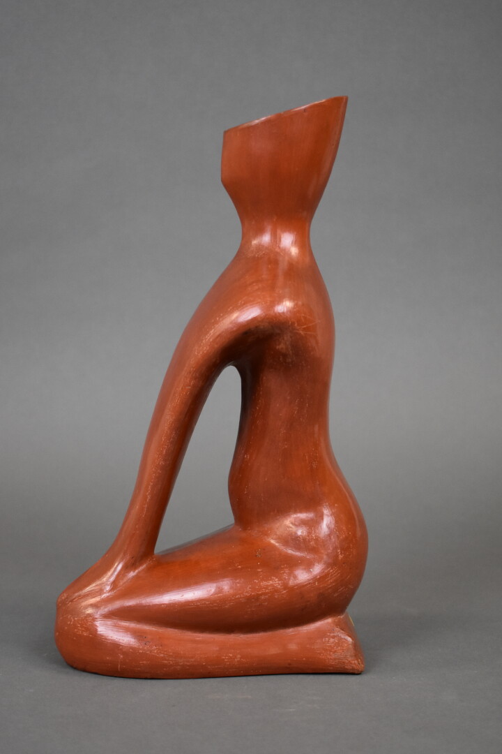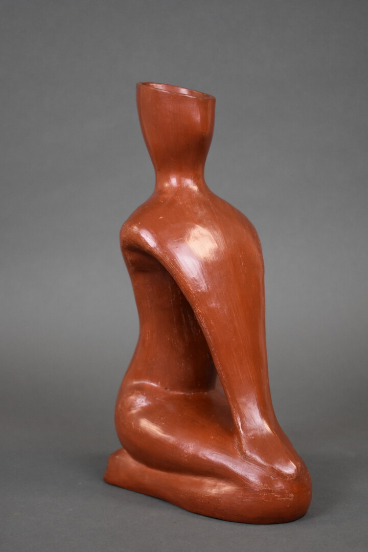 Verseuse en terre cuite anthropomorphe émaillée fauve. XXe siècle. Haut. : 32,2 cm.