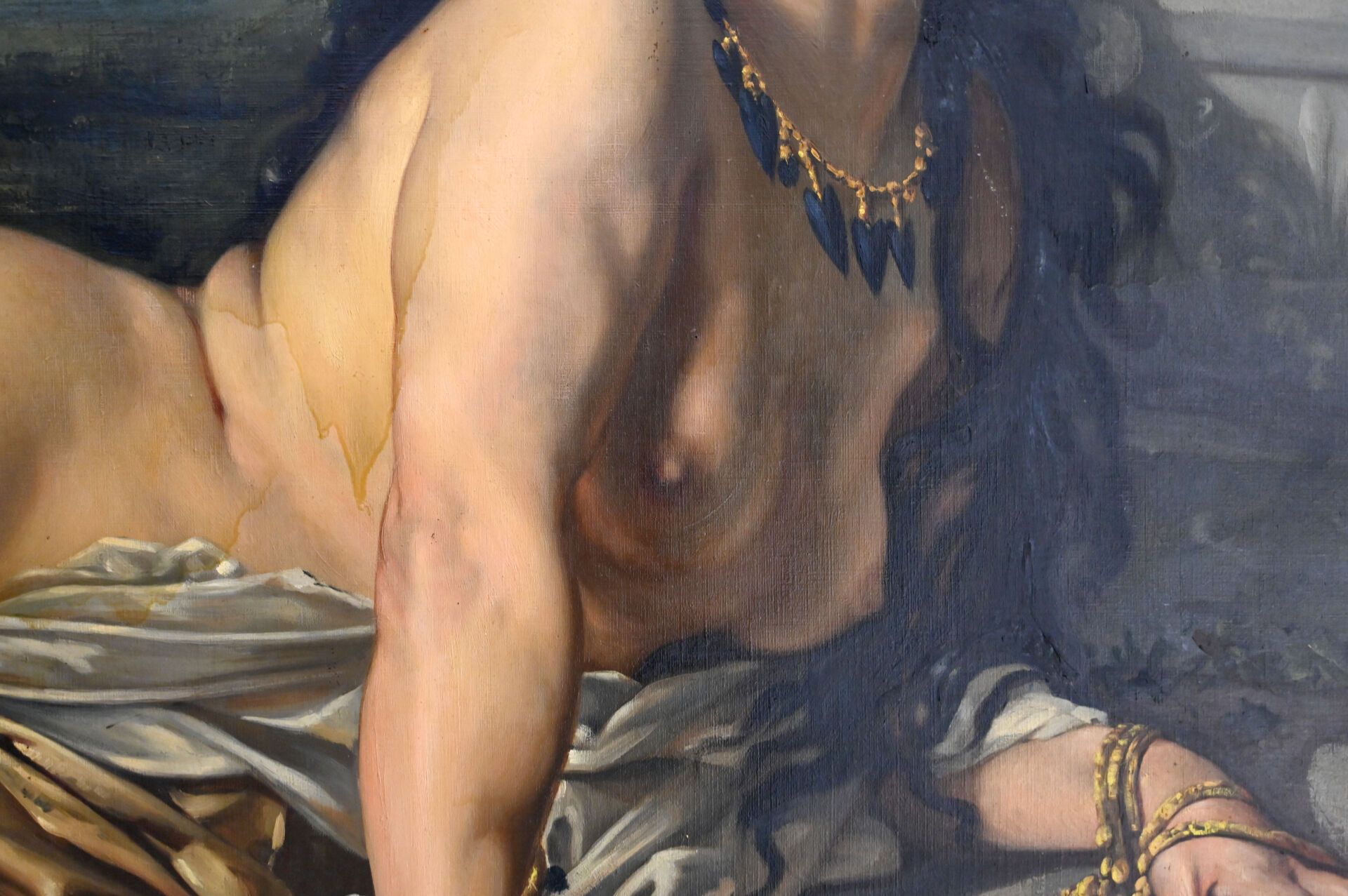 Huile sur toile signée et datée en bas à droite (mouillures).