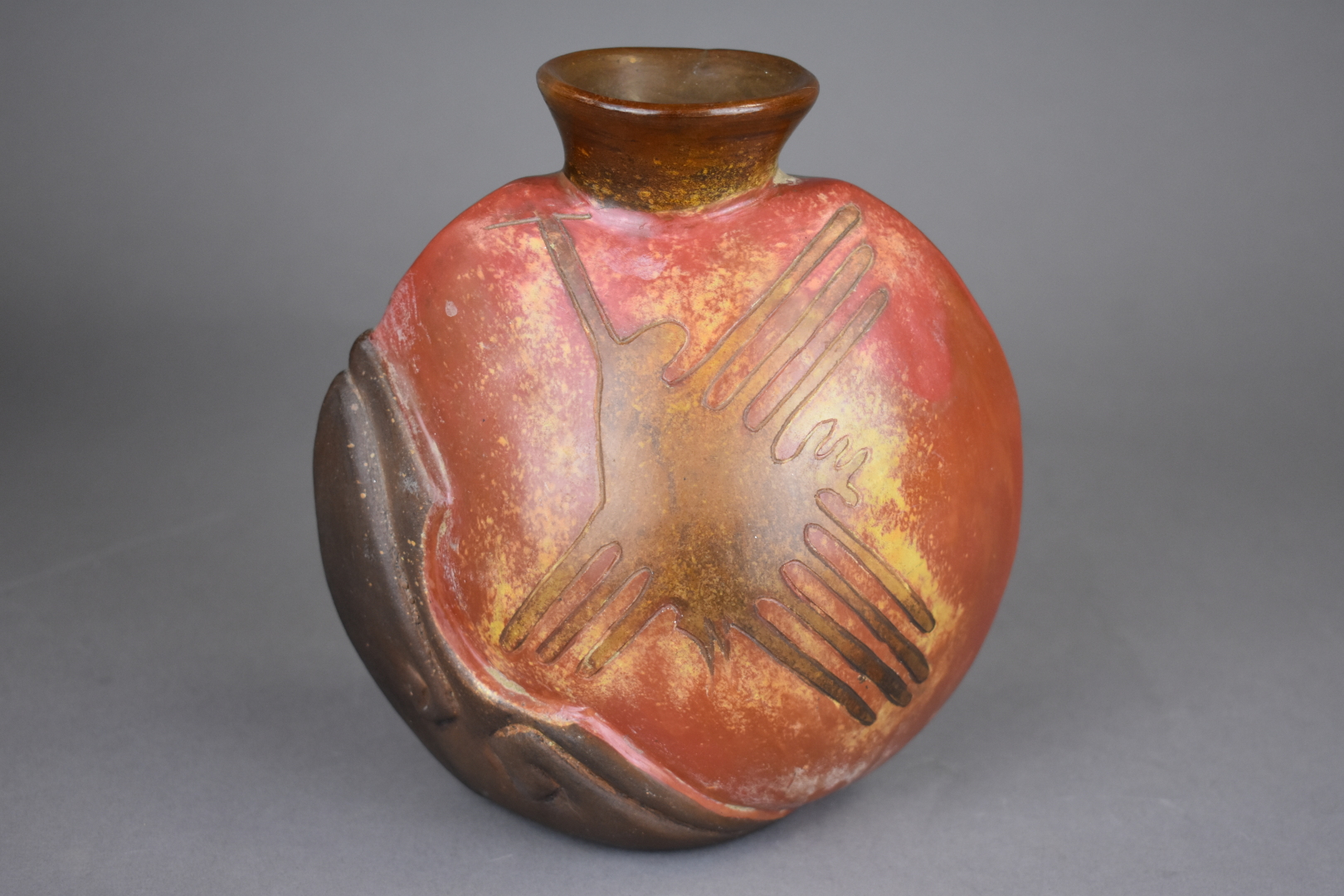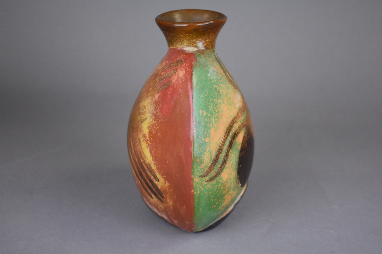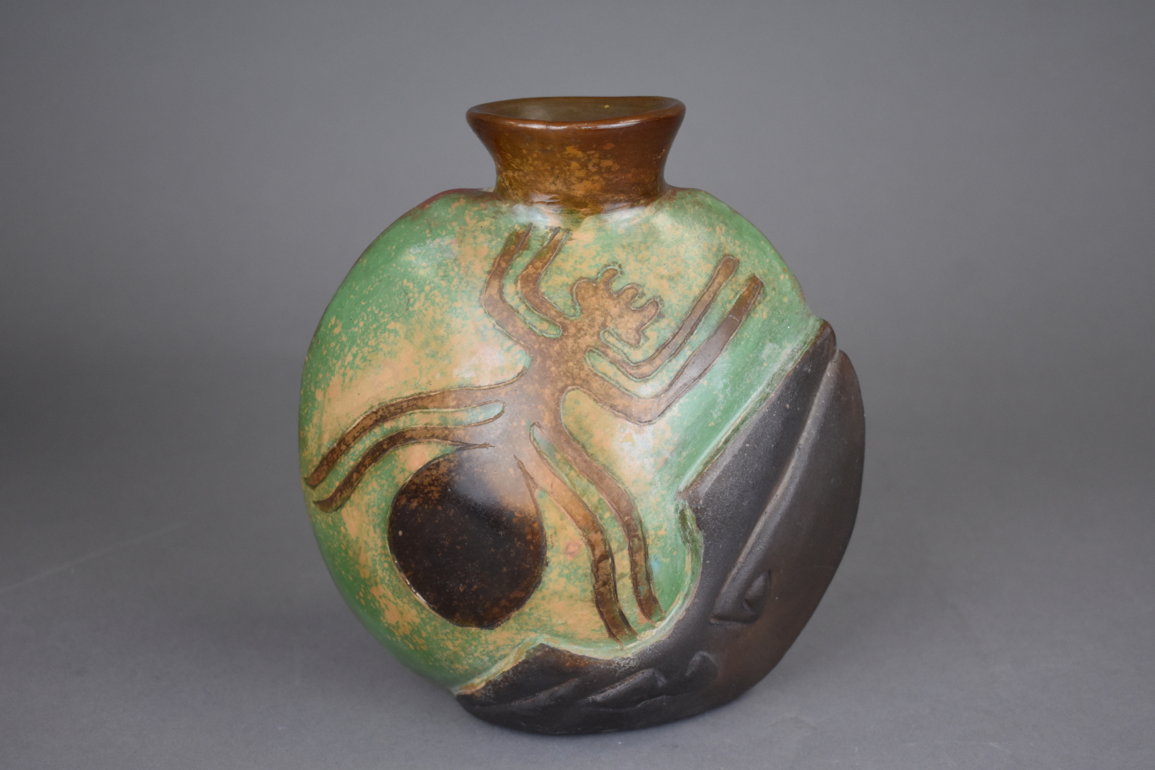 Victor Alban CHULUCANAS (XXe siècle). Vase en terre cuite émaillée à décor gravé d’une araignée. Signé sous la base. Haut. : 19 cm.