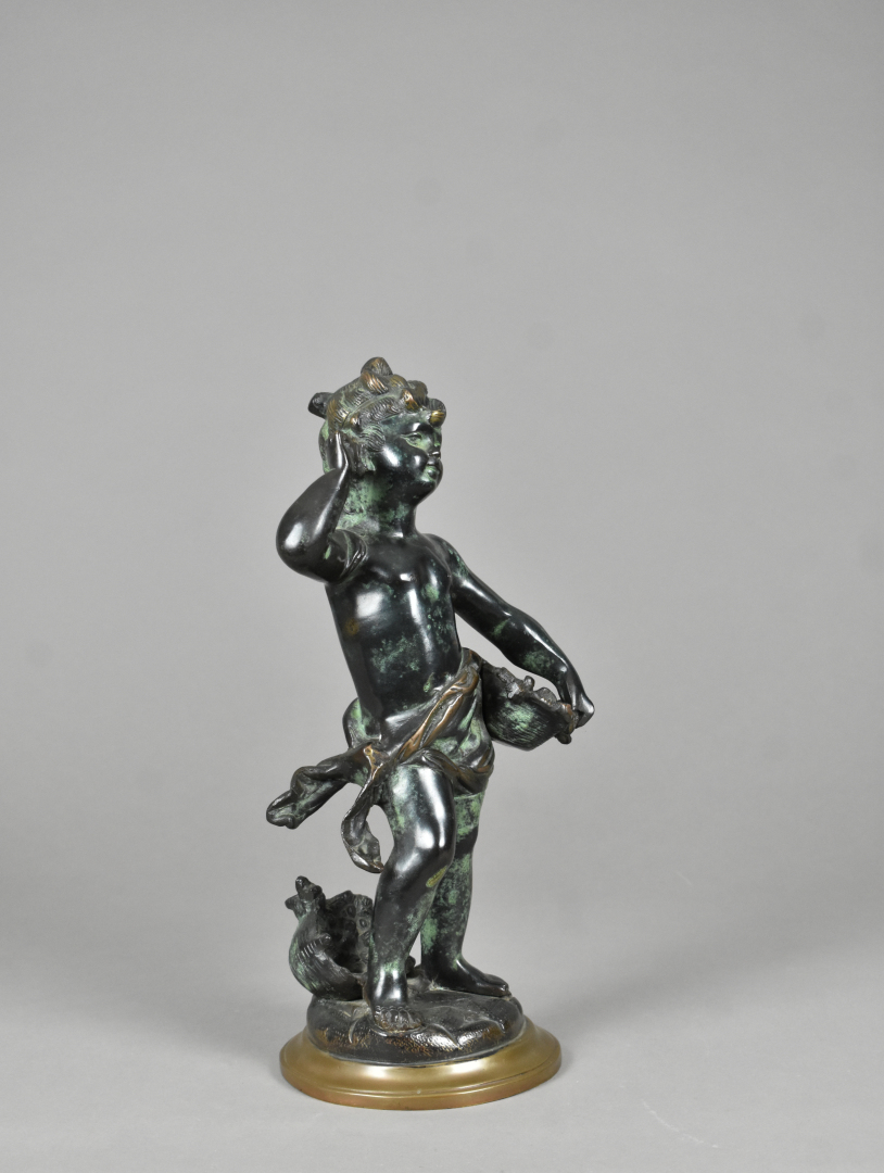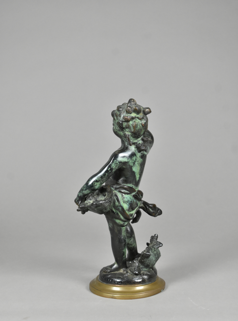 Victor ROUSSEAU (1865 – 1954). Jeune fille au panier. Bronze à patine brun à l’antique. Signé sur la terrasse. Haut. : 38 cm.