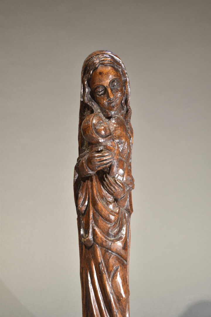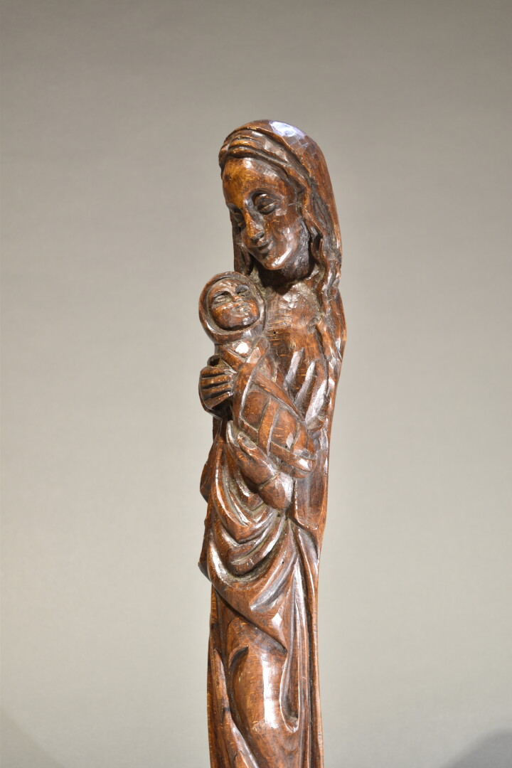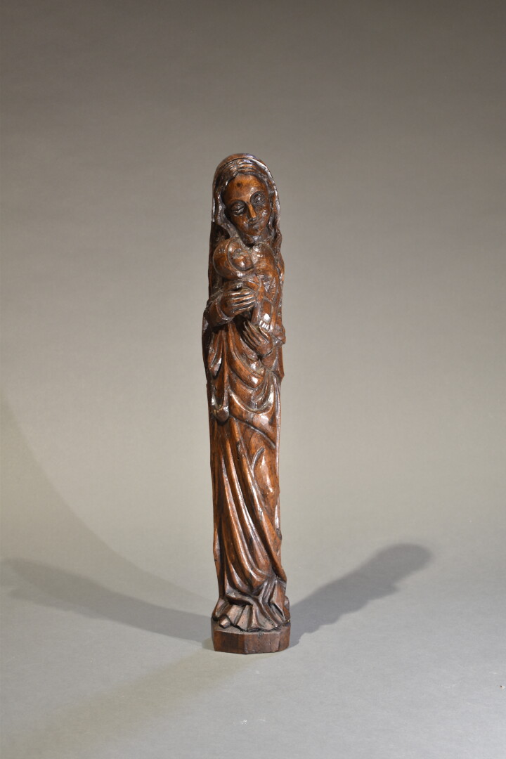 Vierge à l’enfant en bois sculpté. XIXe siècle ? Haut. : 61,5 cm.