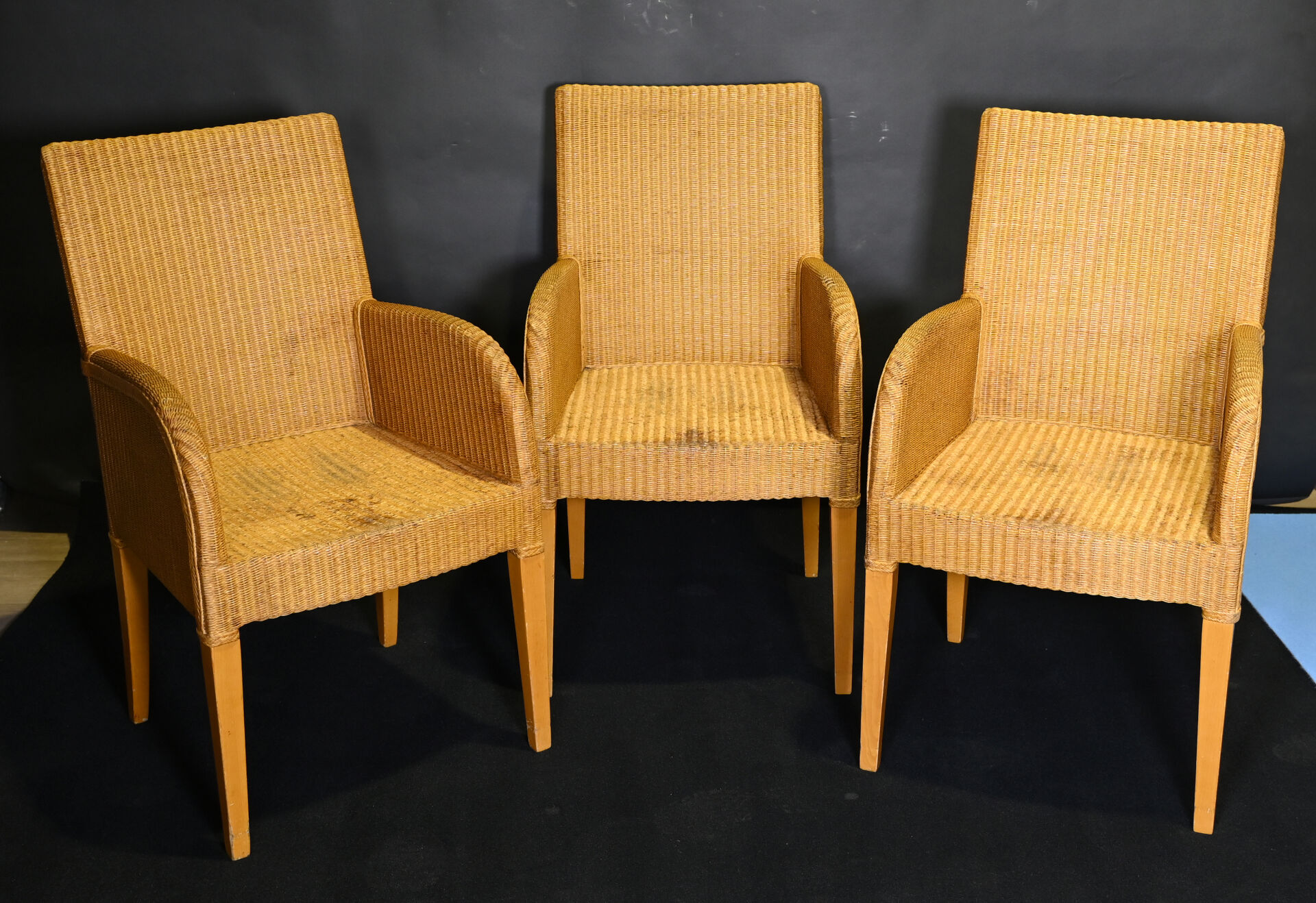 VINCENT SHEPPARD. Suite de 3 fauteuils en rotin (quelques mouillures et manques. Etiquettes. Datés 2009. Haut. : 94 cm