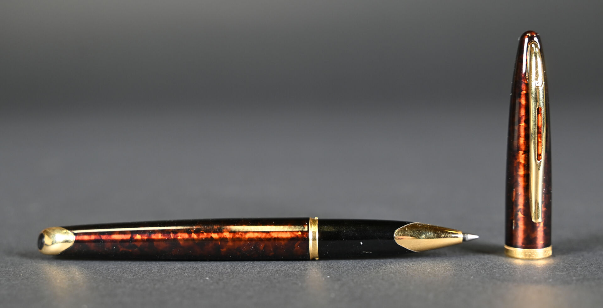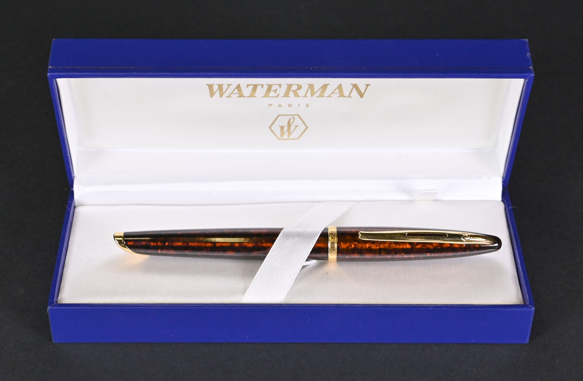 WATERMAN. 1 stylo bille en résine façon écaille brune. Coffret.