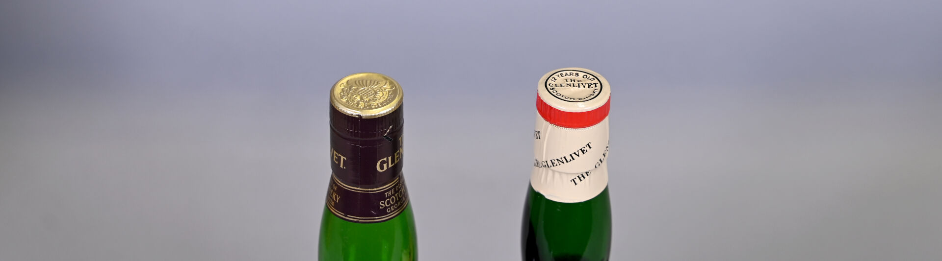 1 bouteille, Whisky (Ecosse), The Glenlivet, 12 ans, Unblended all malt. En étui d’origine (légèrement sale et abimé). Niveau légèrement bas.
