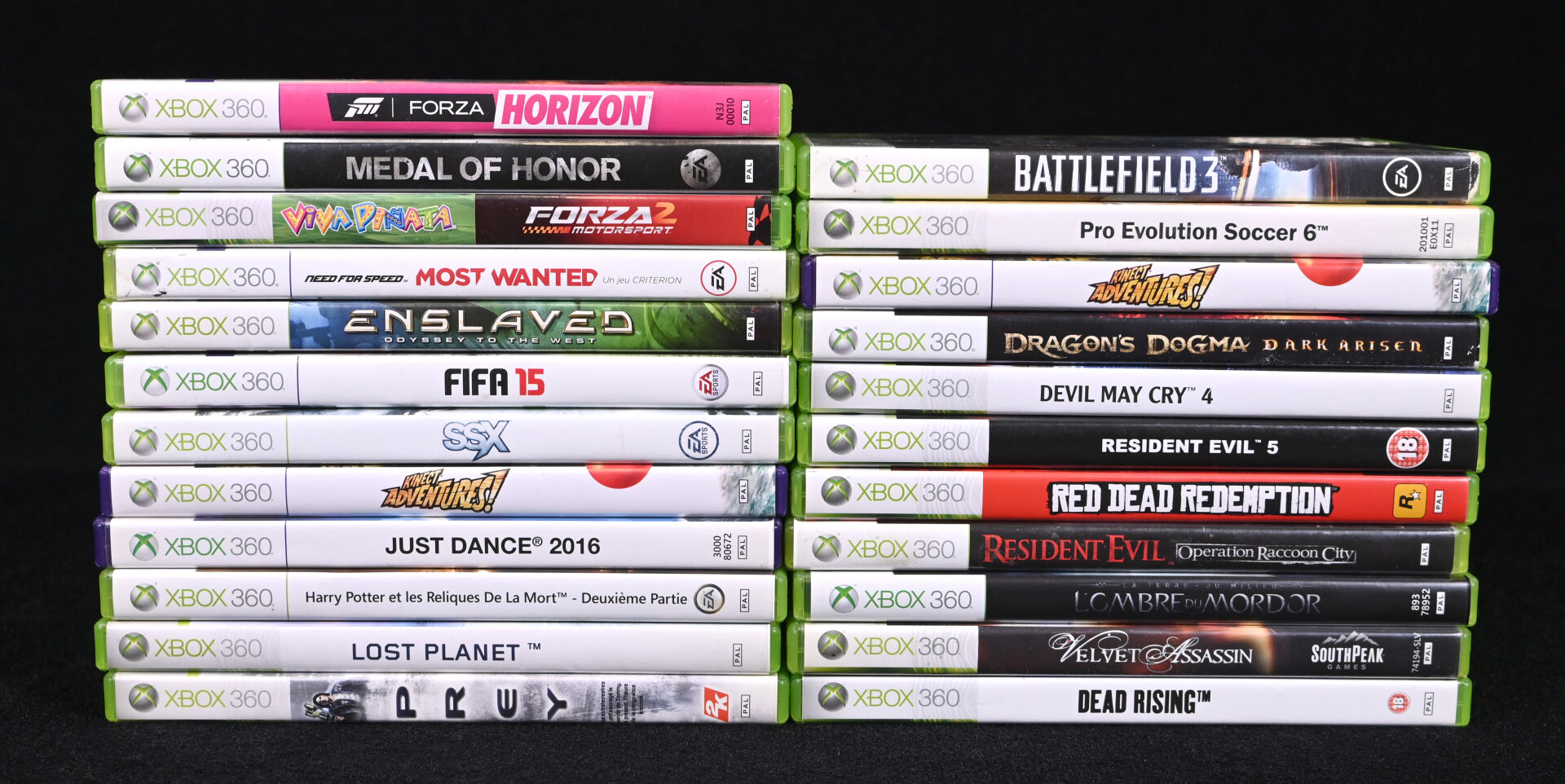 XBOX 360. Ensemble de 23 jeux dont RED DEAD REDEMPTION, MEDAL OF HONOR, DEAD RISING, LOST PLANET, DRAGON’S DOGMA, SSX, RESIDENT EVIL OPERATION RACCOON CITY et divers (usures d’usage).