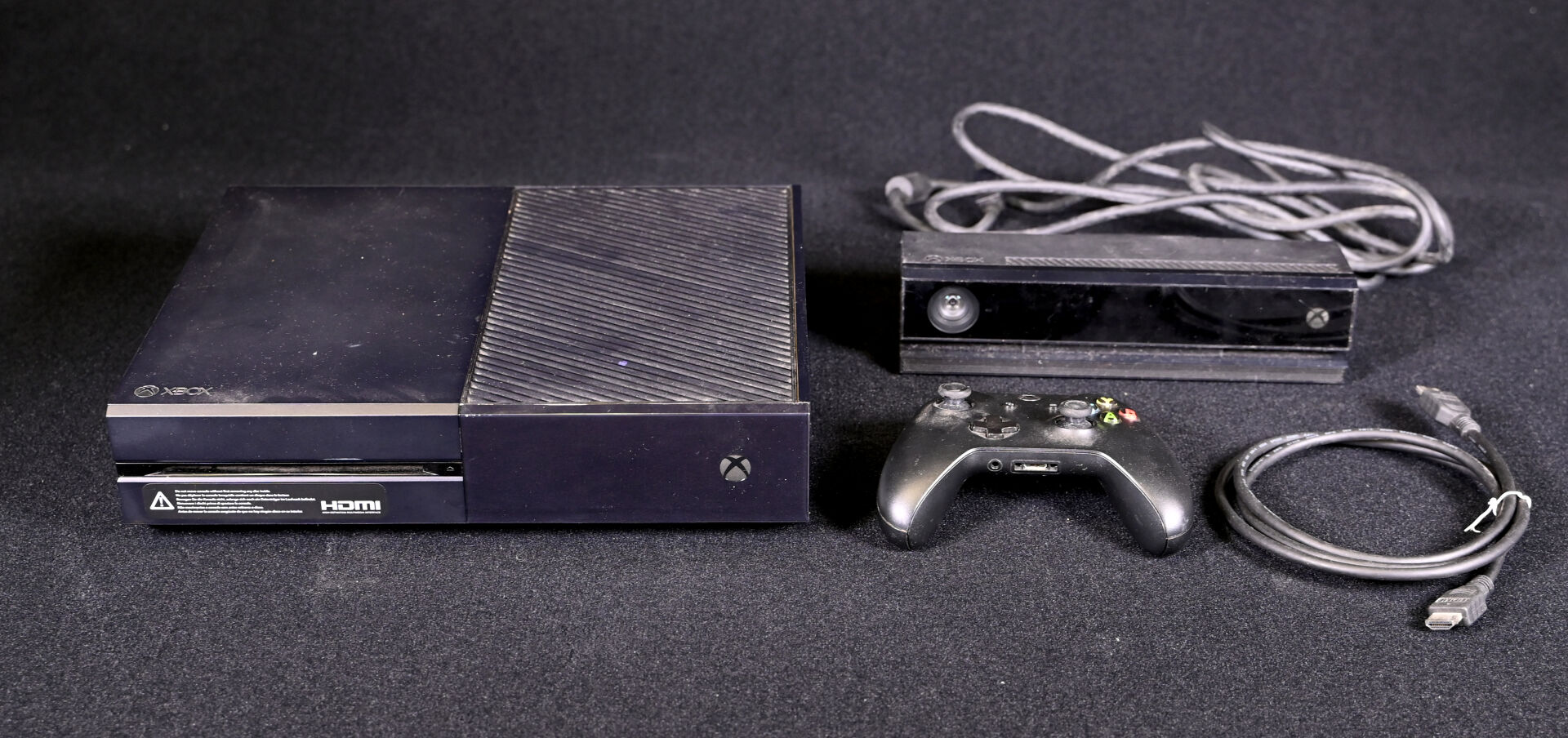 XBOX ONE. Une console, une manette, une Kinect et câble. Avec boîte (usures d’usage).